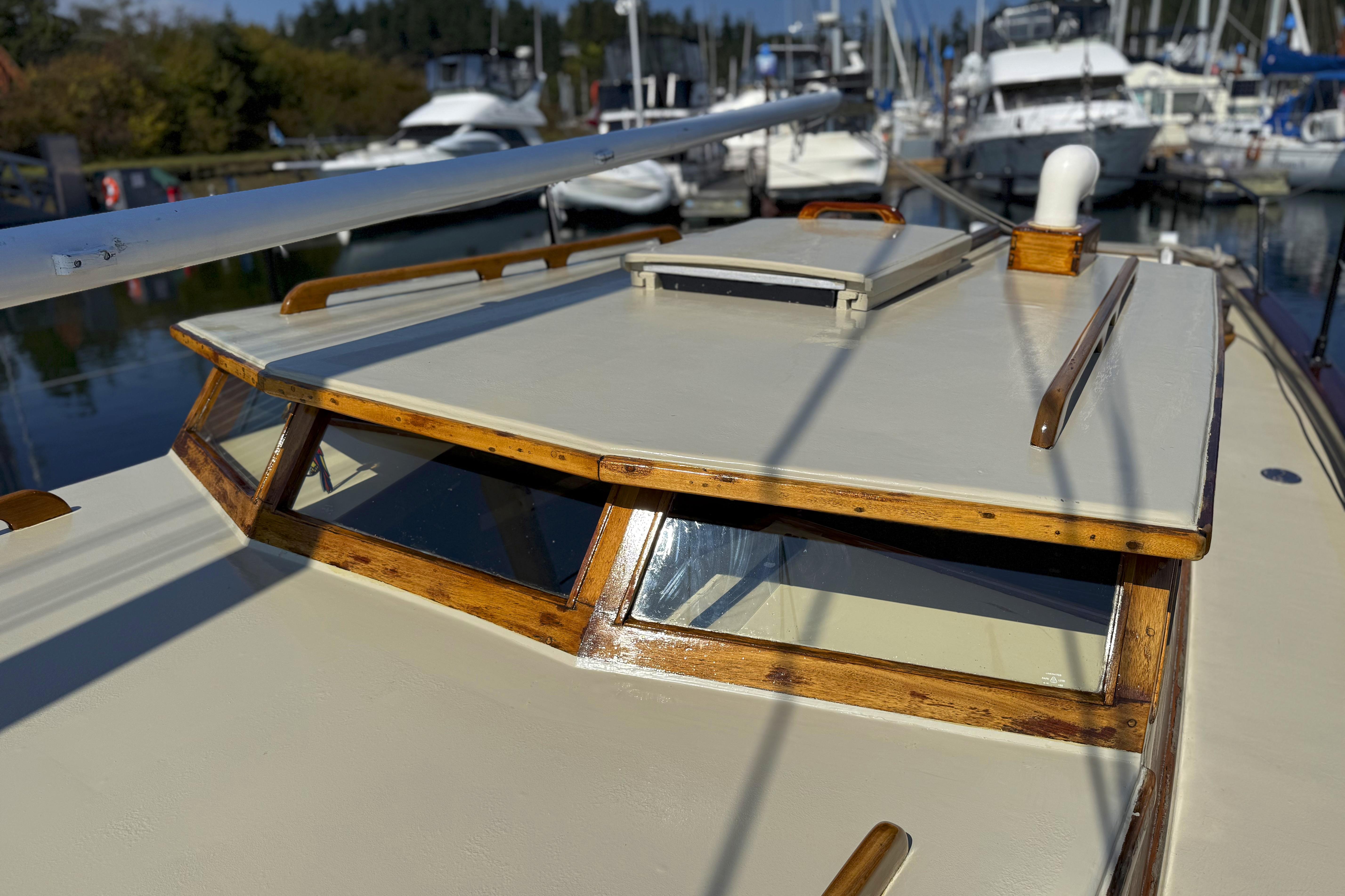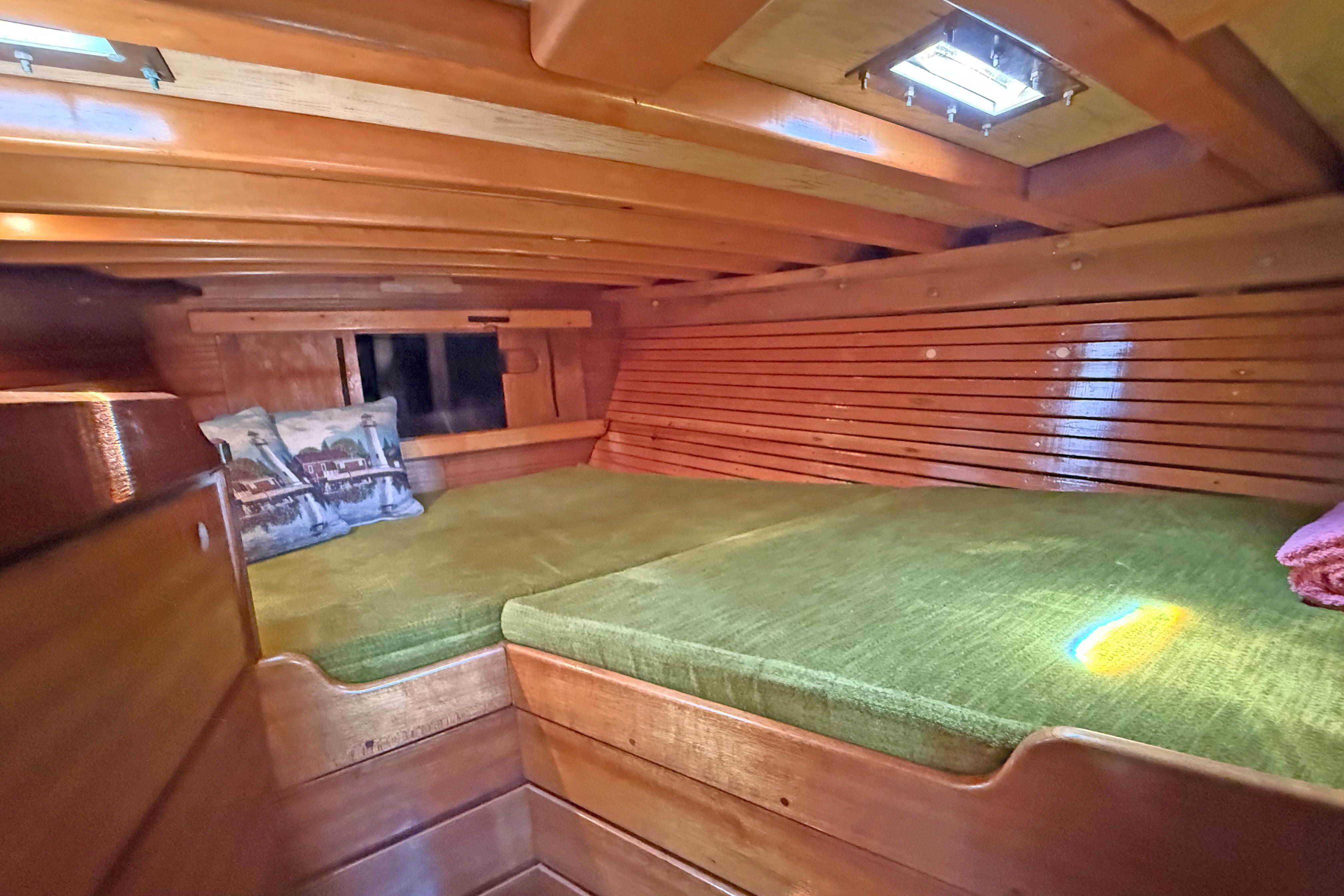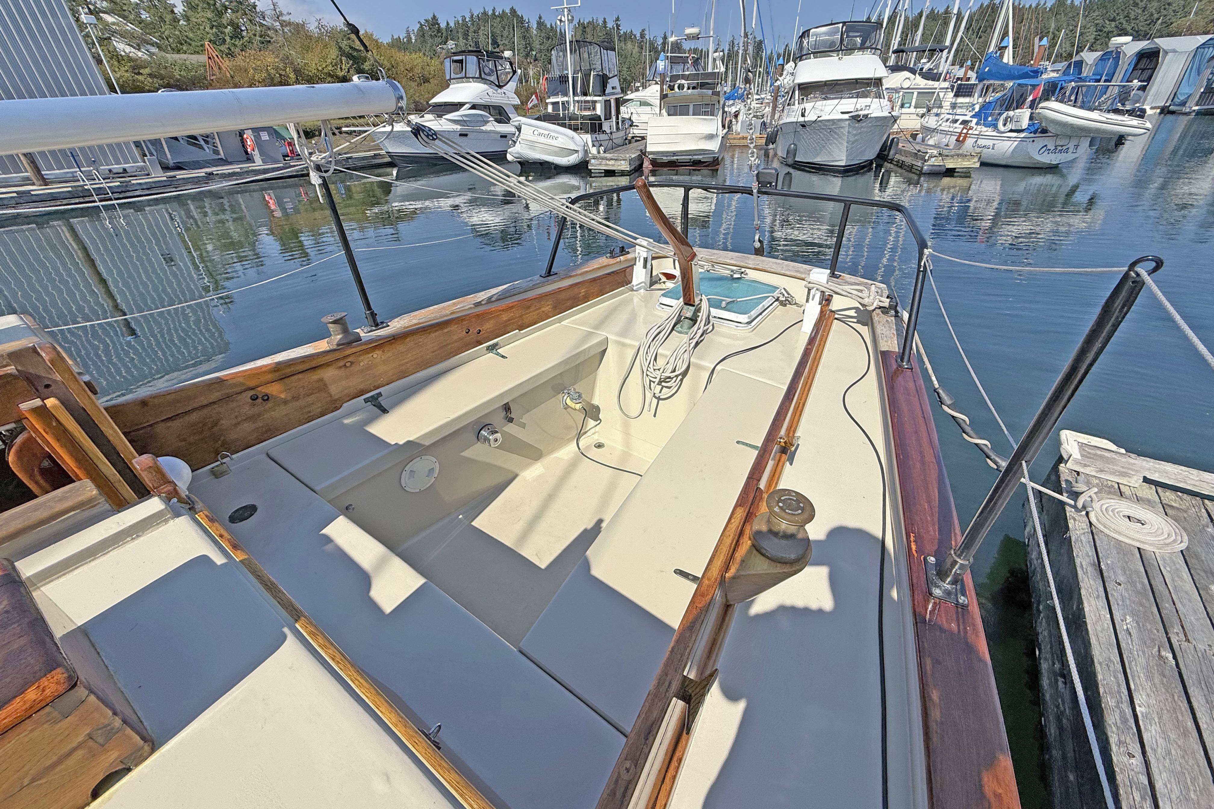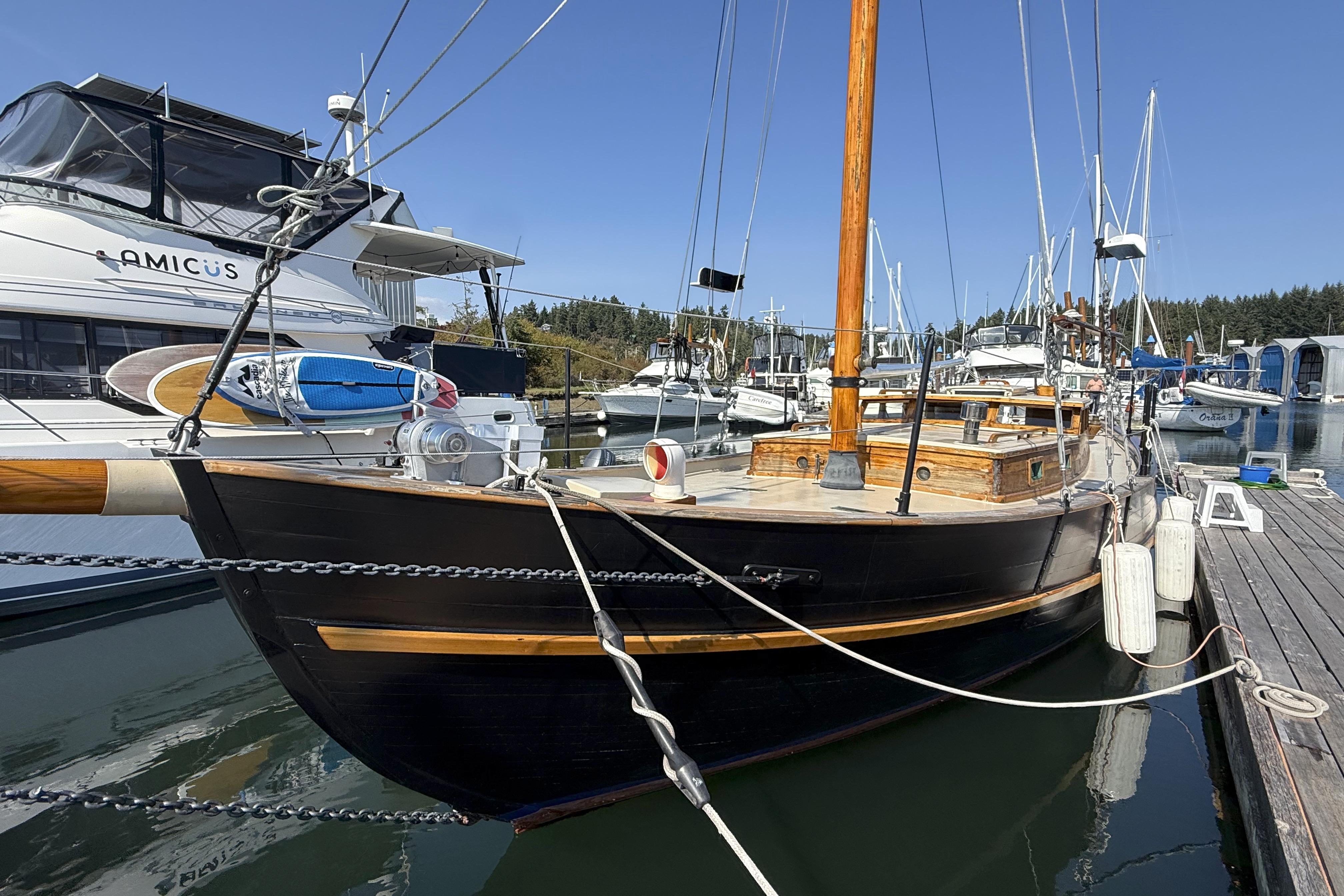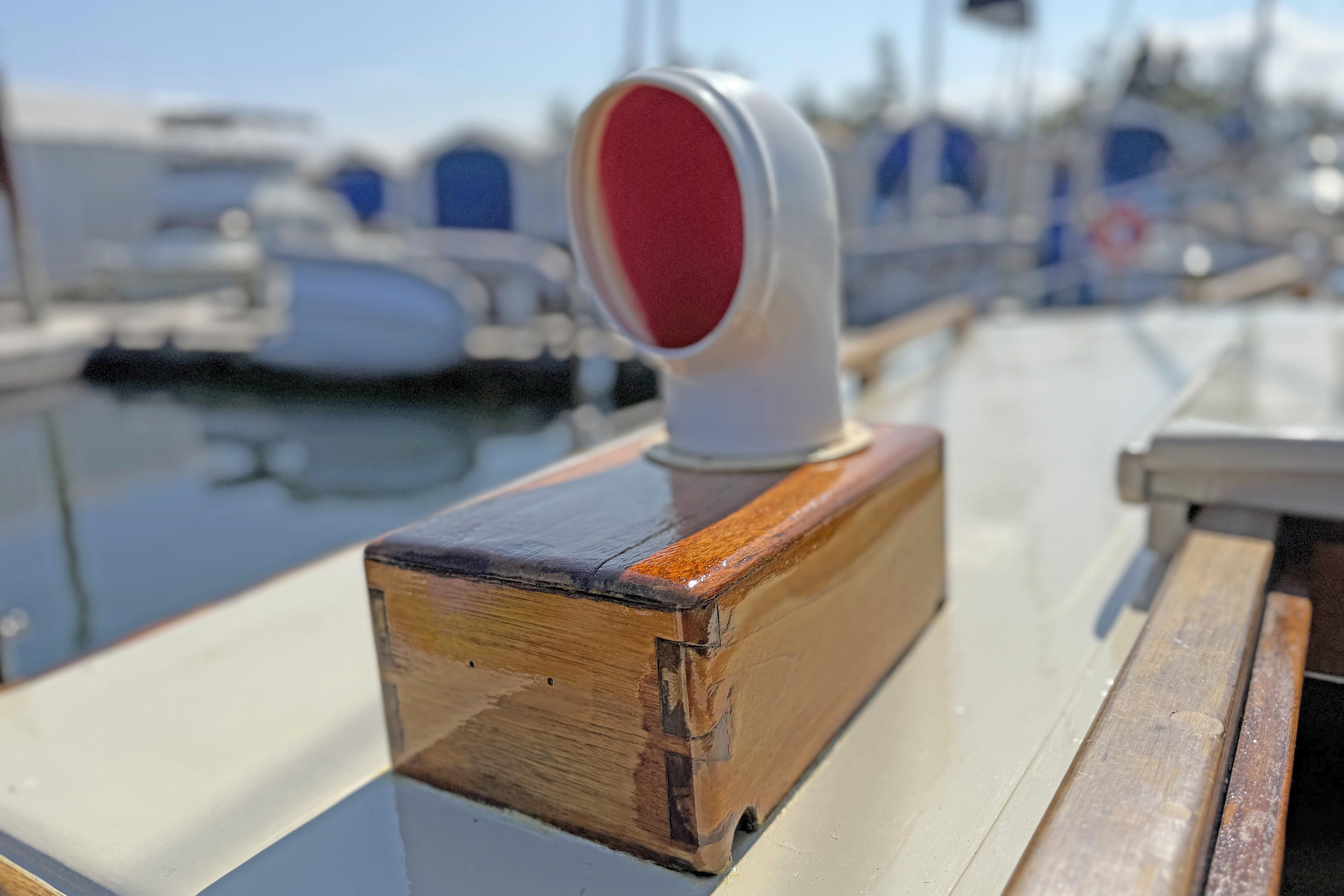 Mast: Varnished Douglas Fir.  Varnished 2025. Boom: Douglas Fir Barlow winches at the mast and cockpit comings. Standing rigging replaced 2021/2022 Anchor: 60 lb plow plus spare 40 lb Danforth Anchor Chain – 7/16” 250 ft plus 100’ 1” rode Windlass – Lofrans Tigres 12 Volt windlass with drum and gypsy. Updated Massive fir Sampson Post aft of the windlass Custom high stanchions for extra safety with dynmea lifelines.