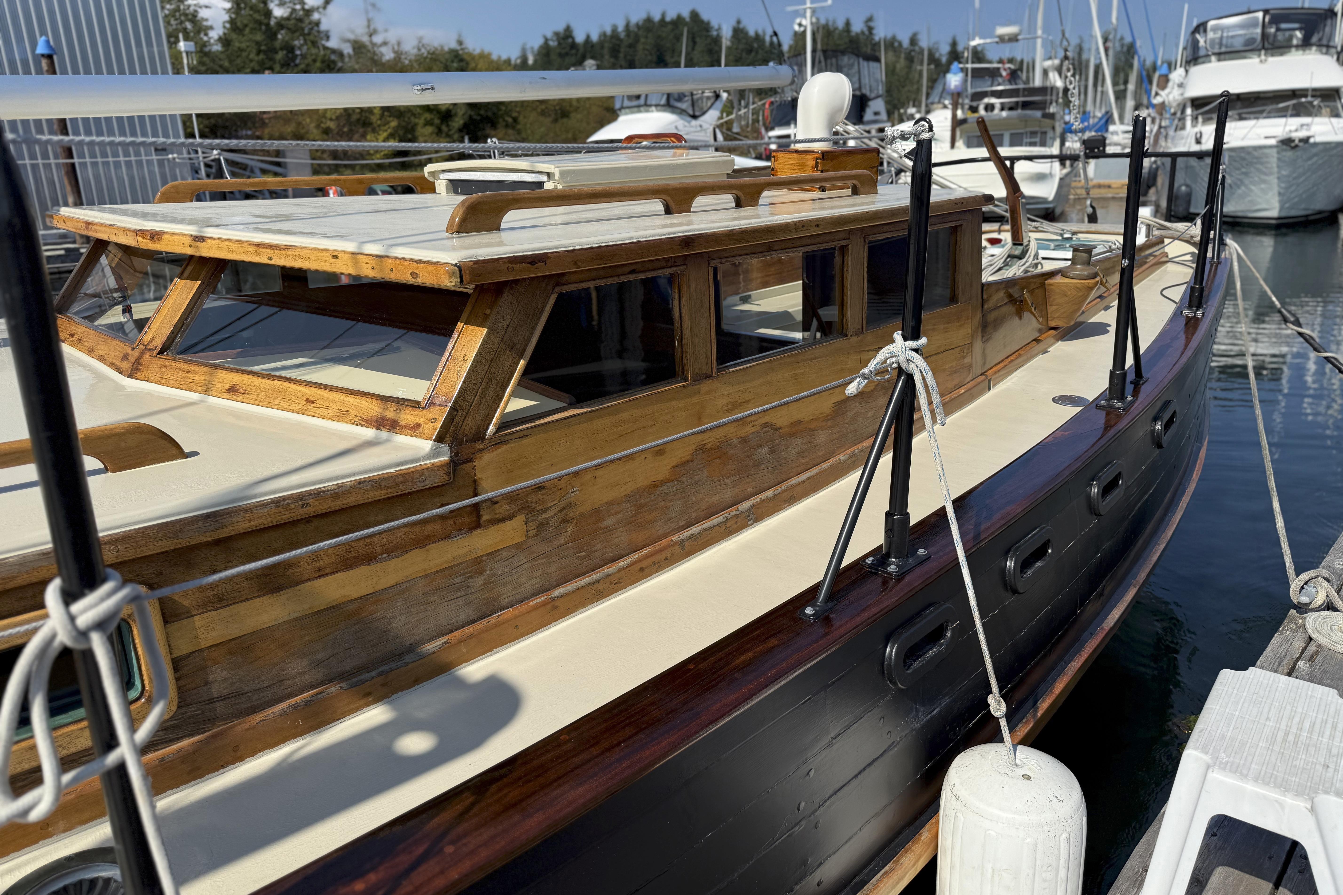 Quo Vadis II was built as a west coast troller for rugged offshore fishing but was not finished.  She was lovingly rebuilt in 1985 for the current owners as a yacht with new decks, beams, cabin and transom.  Her interior is both beautiful and functional with varnished mahogany cabinetry and cabin soles.   Since then, the owners have cruised her extensively as far afield as Mexico and Hawaii.