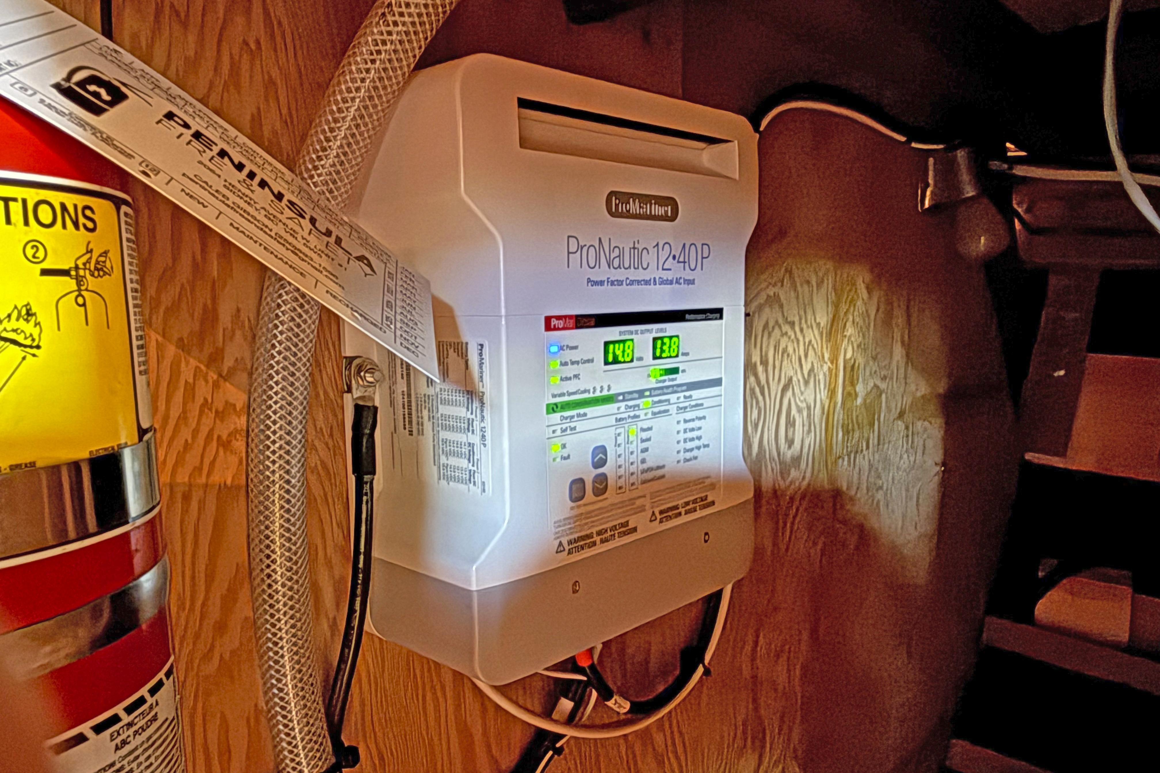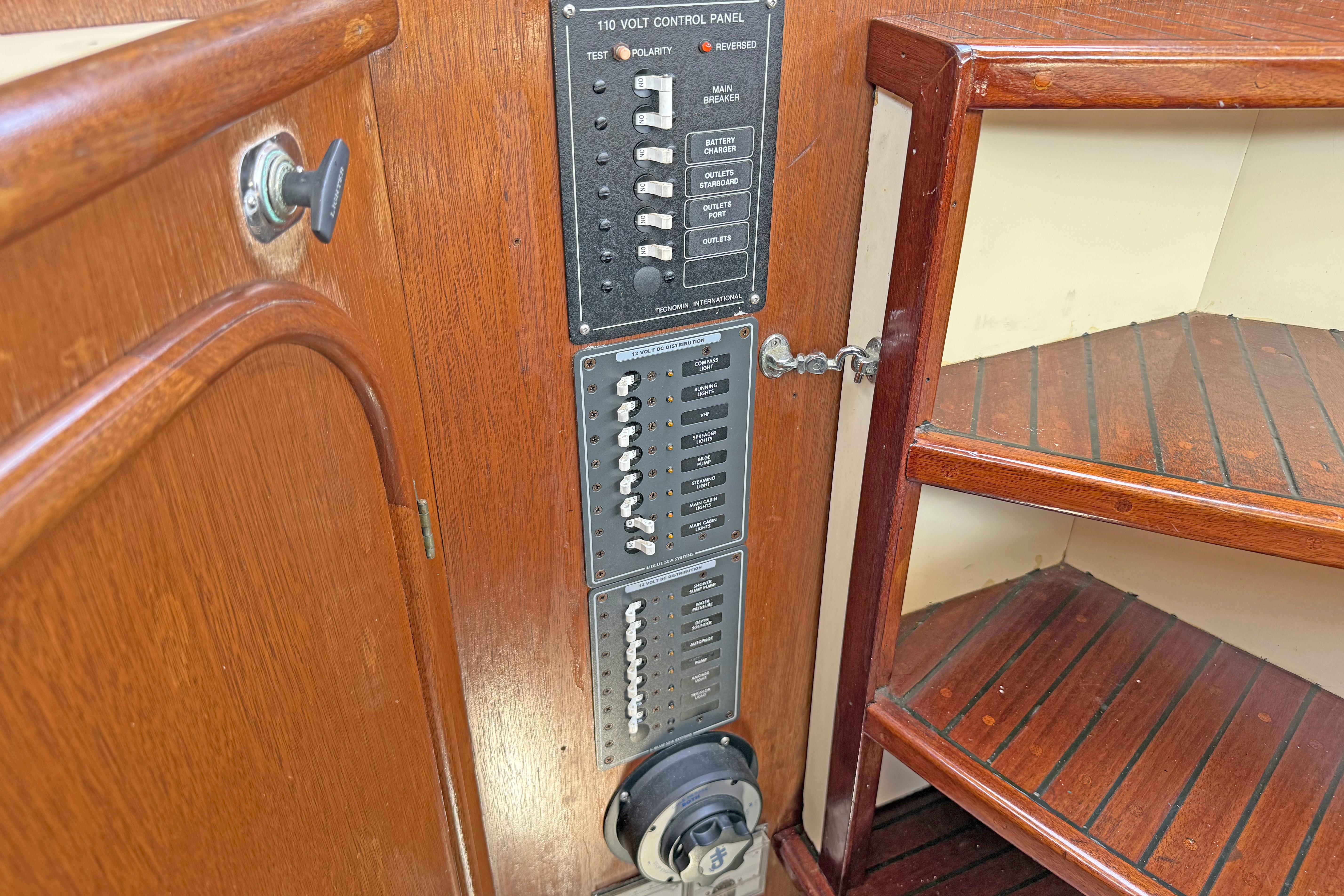 120V shore power system Charger: ProMariner 40 amp – global charger/ Separate house and start bank batteries – 4x GL16 for the house bank and Group 24 for the engine start. Electrical redone by Victoria Marine in 2014