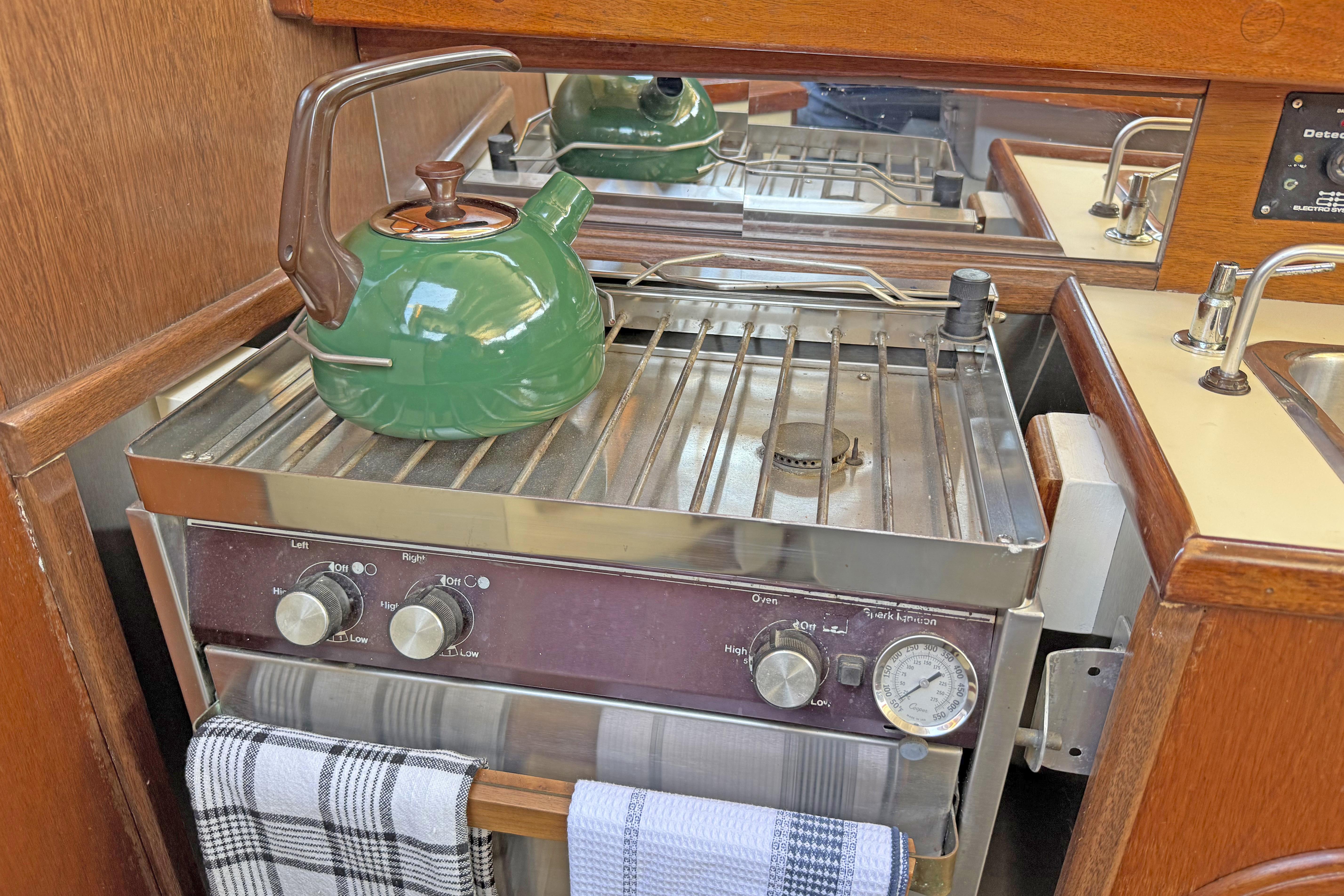Force 10 LPG stove and oven In-Built galley Ice Box Galley table can be moved to the cockpit.