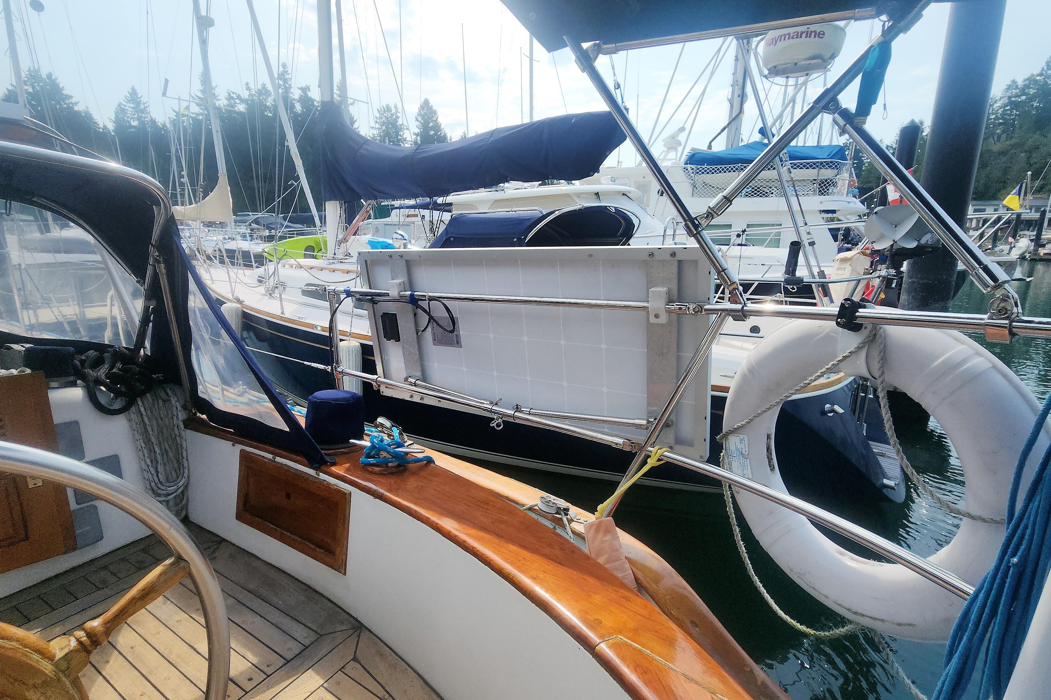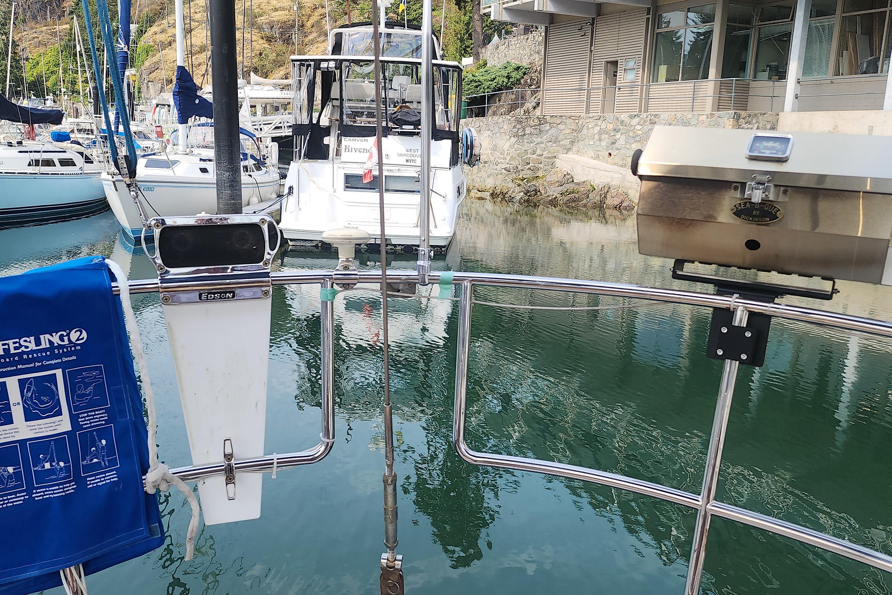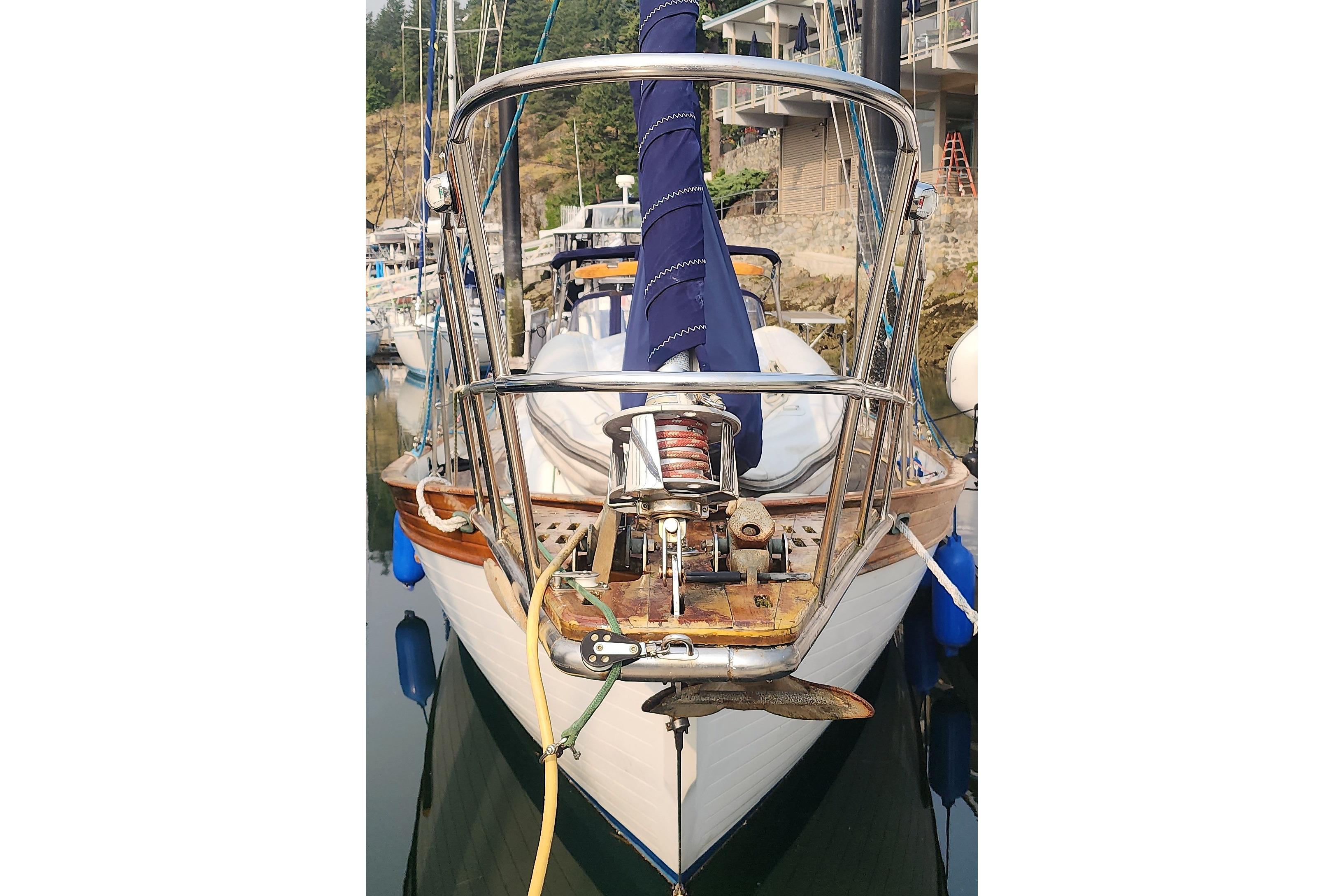 12V Lofrans Tigre 1200W Windlass with wired up and down control 44lb Bruce anchor with 250’ G4 chain Flojet 12V Wash down on foredeck for cleaning Fibreglass propane tank Webasto Hydronic heating throughout boat Forespar Outboard motor hoist Kenwood and Eclipse stereo with speakers CCG safety package Portable boarding ladder fire extinguishers Dock lines and fenders Bottom paint November 2023 Zincs 2025Click on the large picture below to view fullscreen.