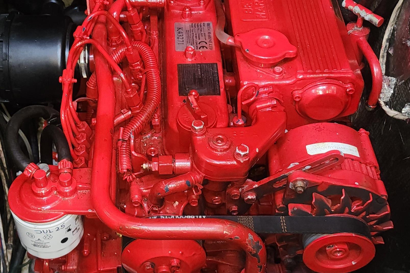 Upgraded 2021 Beta B35 HP Fresh water cooled With new engine panel Twin Disc TMC-60 marine gear Insulated engine compartment with excellent access Under 145 hours 60 Gallons of fuel Single level shifter Pedestal with tach, fuel gauge and EVC panel 3 blade 16x12 propeller 1.25” Stainless steel shaftElectrical