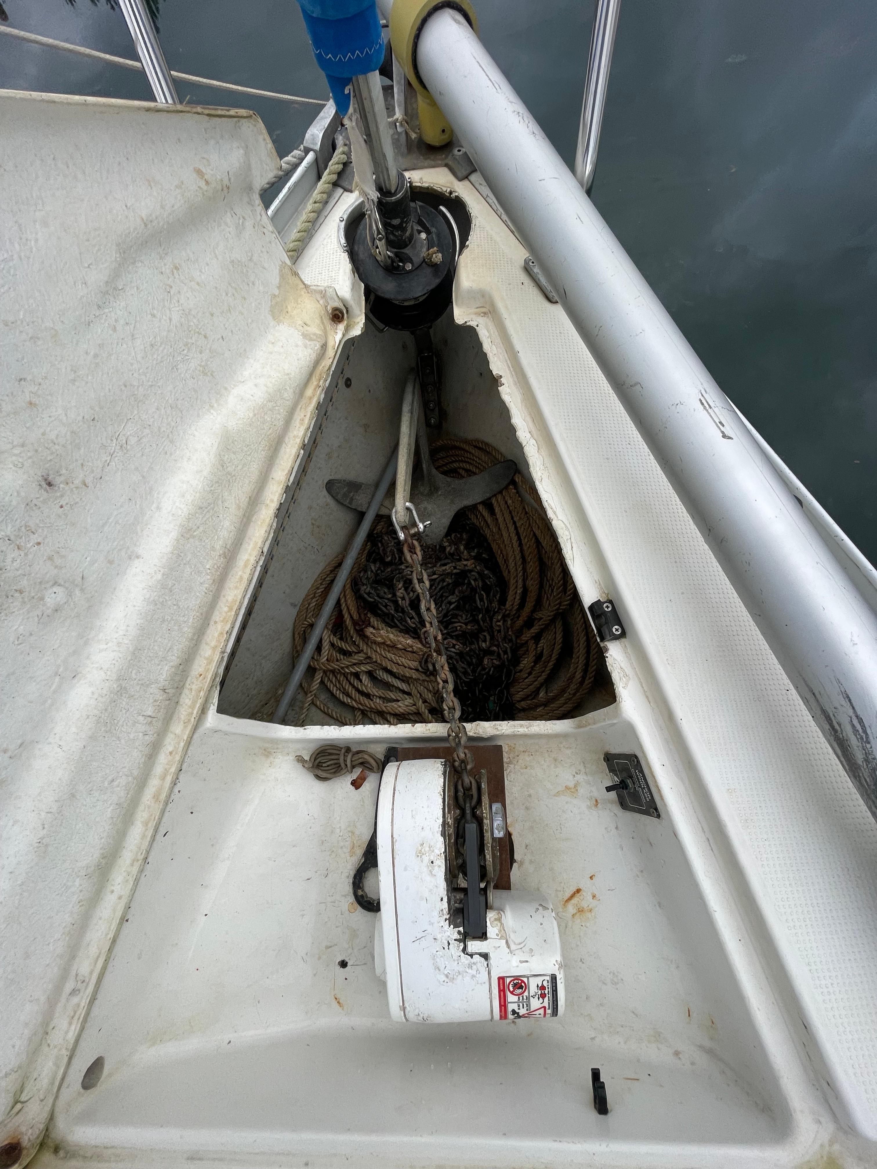 - Anchor: 10Kg Bruce, 100ft chain, 250ft rode