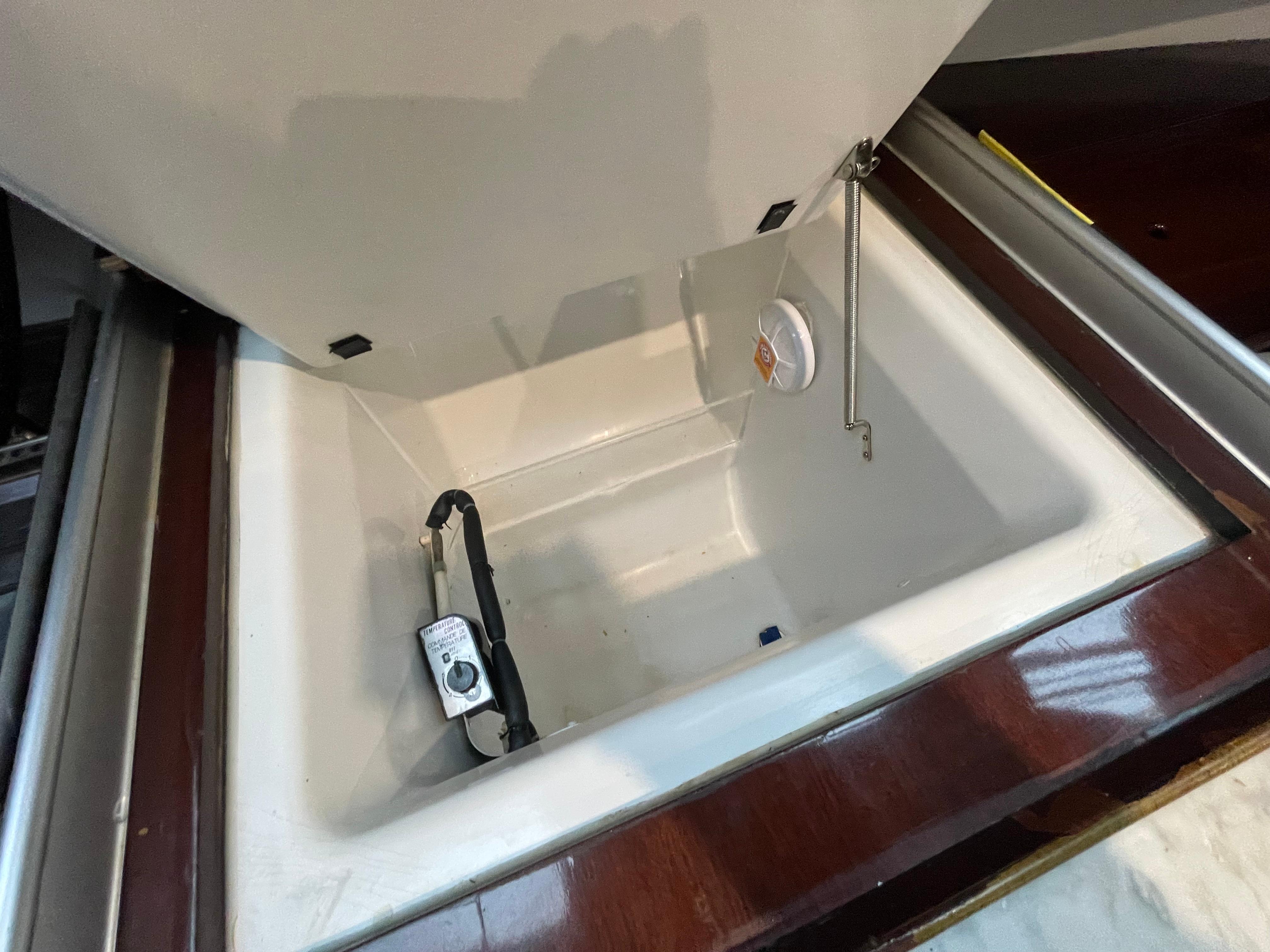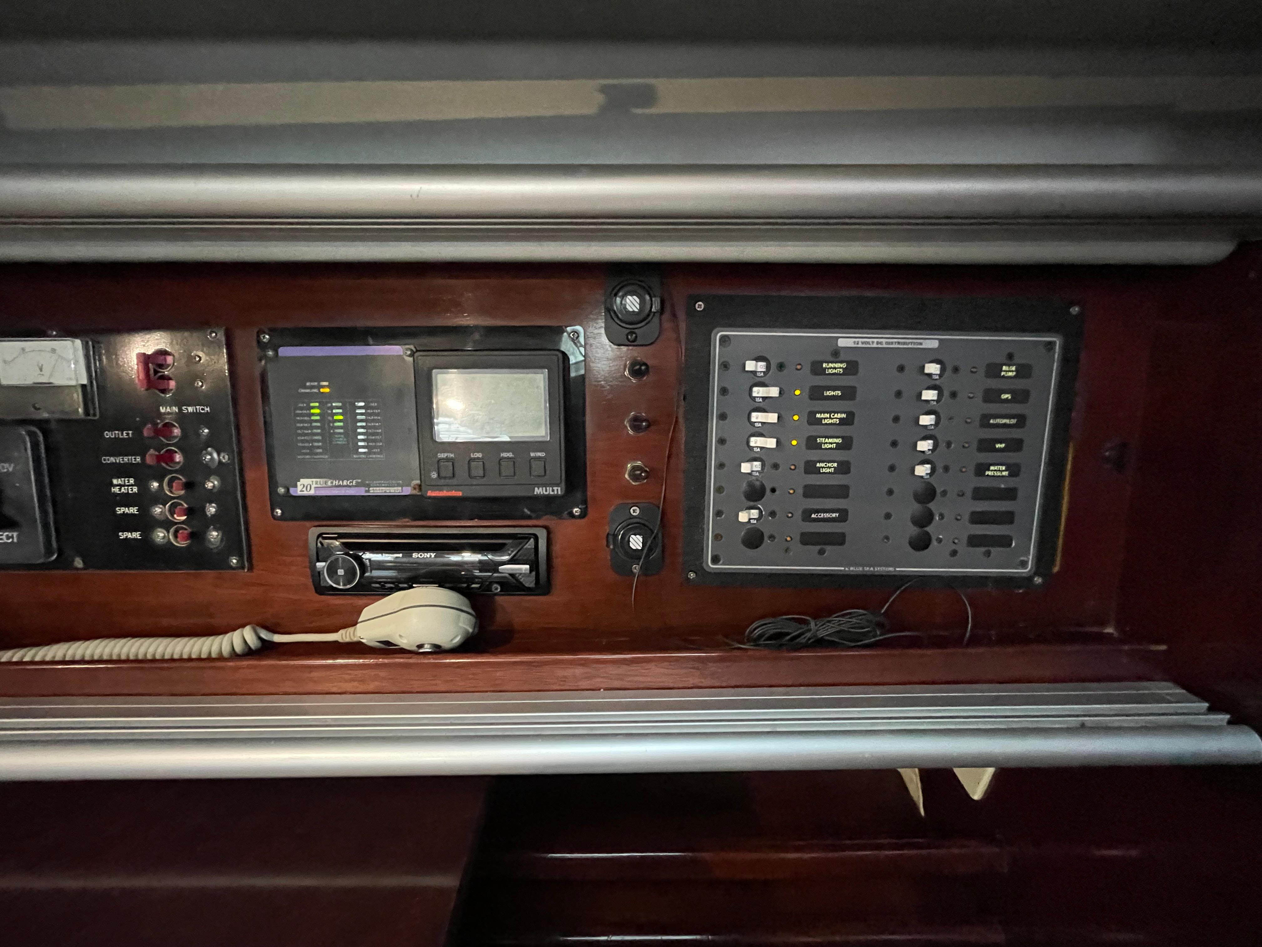 - Propane system: Sealed locker with solenoid, separate lines running to stove and propane heater, solenoid switch on breaker panel, spare tank
