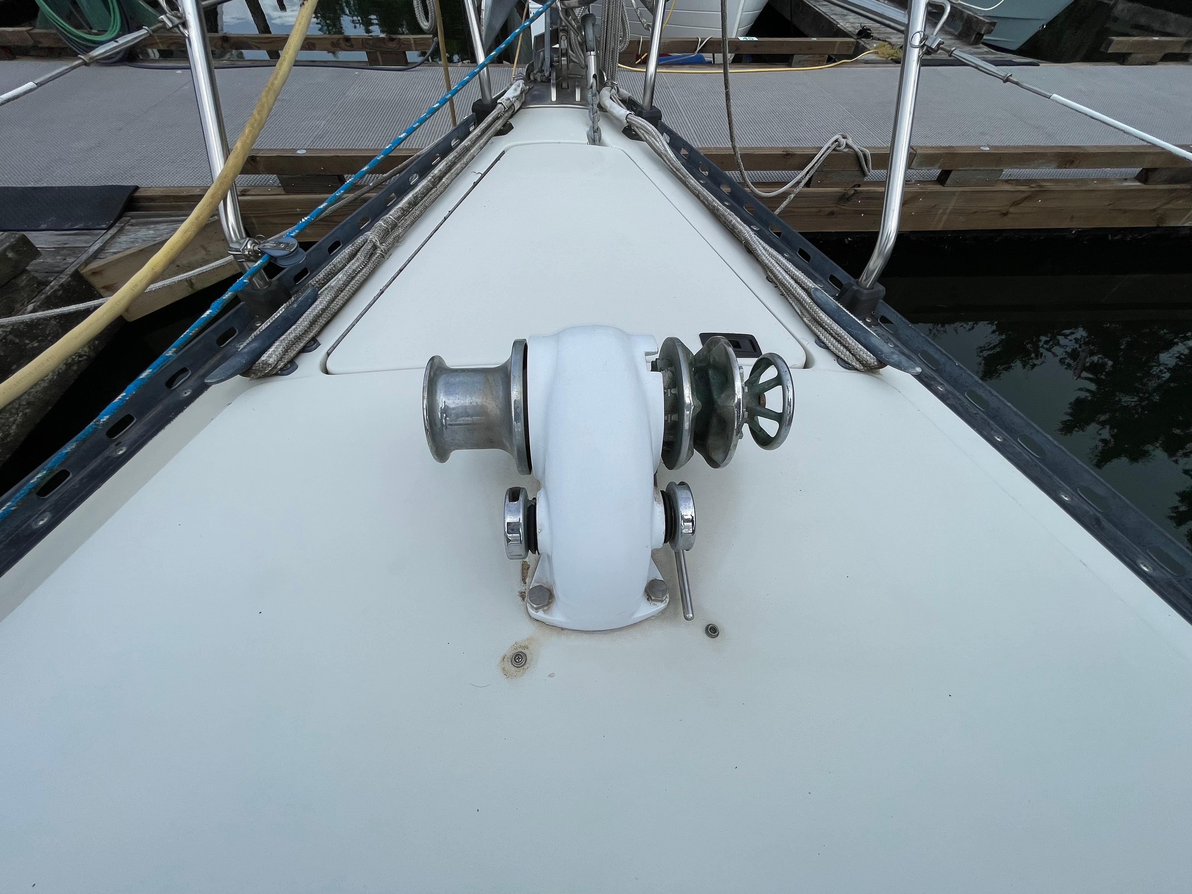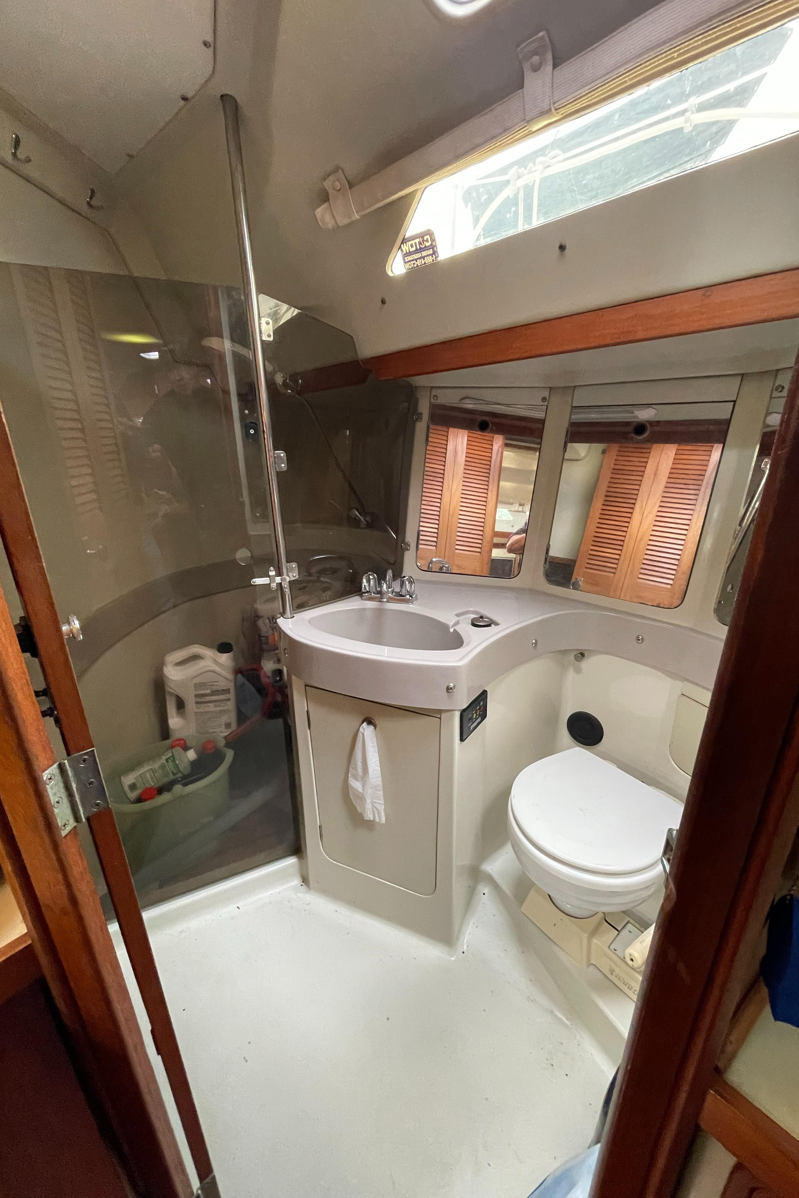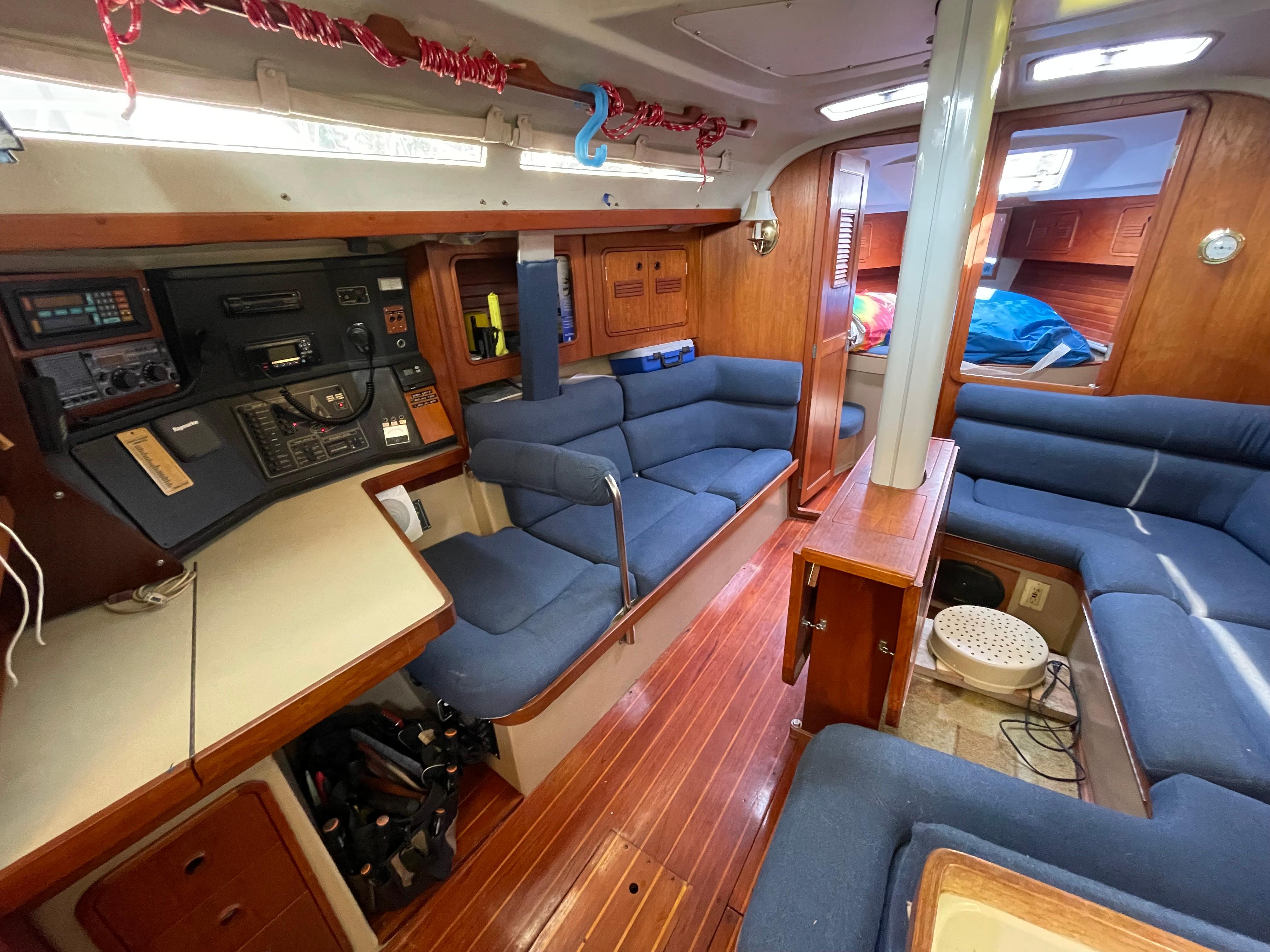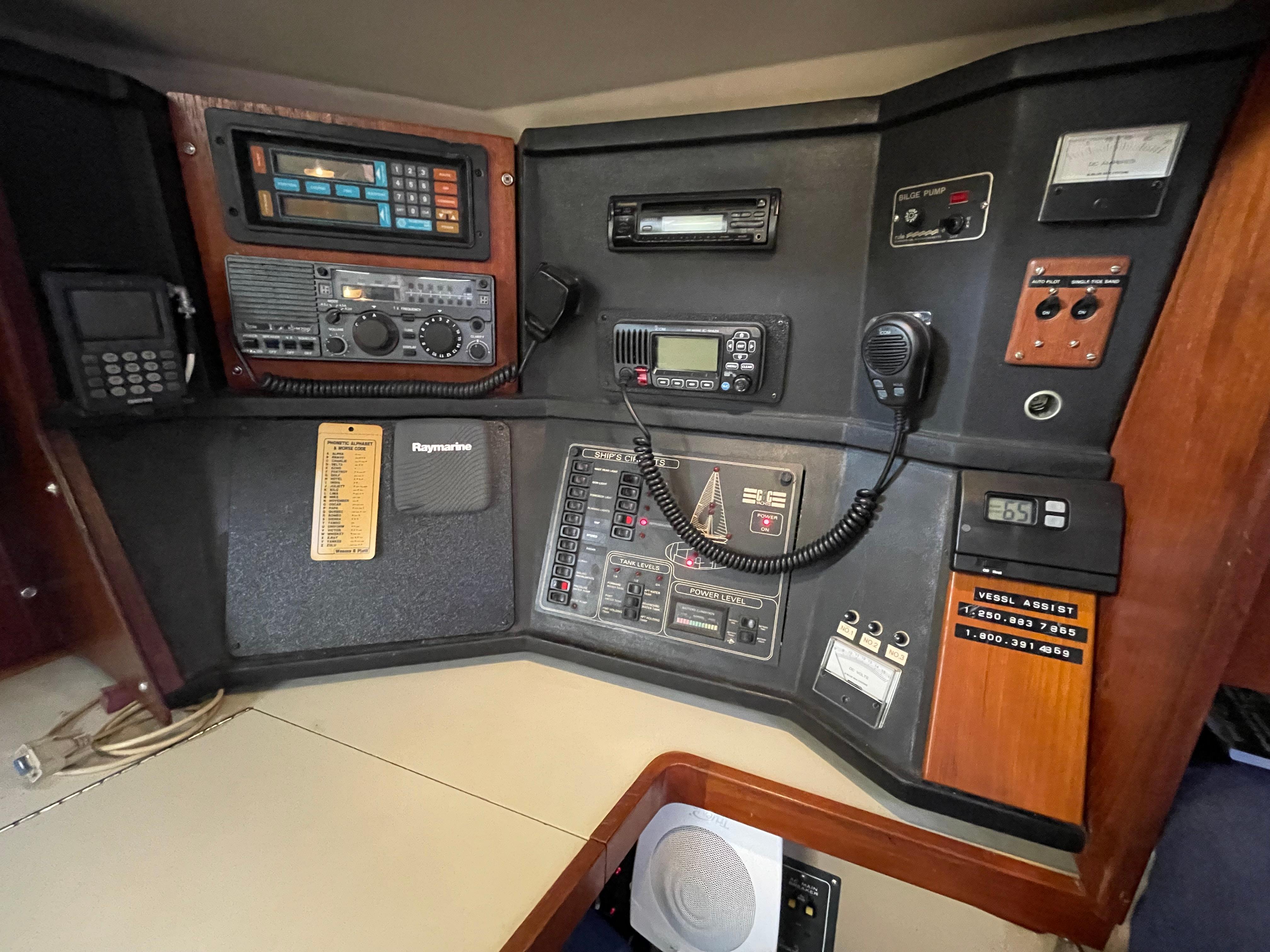 Sailing is made easy, with a standard battened mainsail with lazy jacks, furling genoa and all lines leading aft to the cockpit for safe sail trim. Her Universal M35 diesel runs like a top and features a 3 blade MaxProp. There is also a fuel polishing system installed.