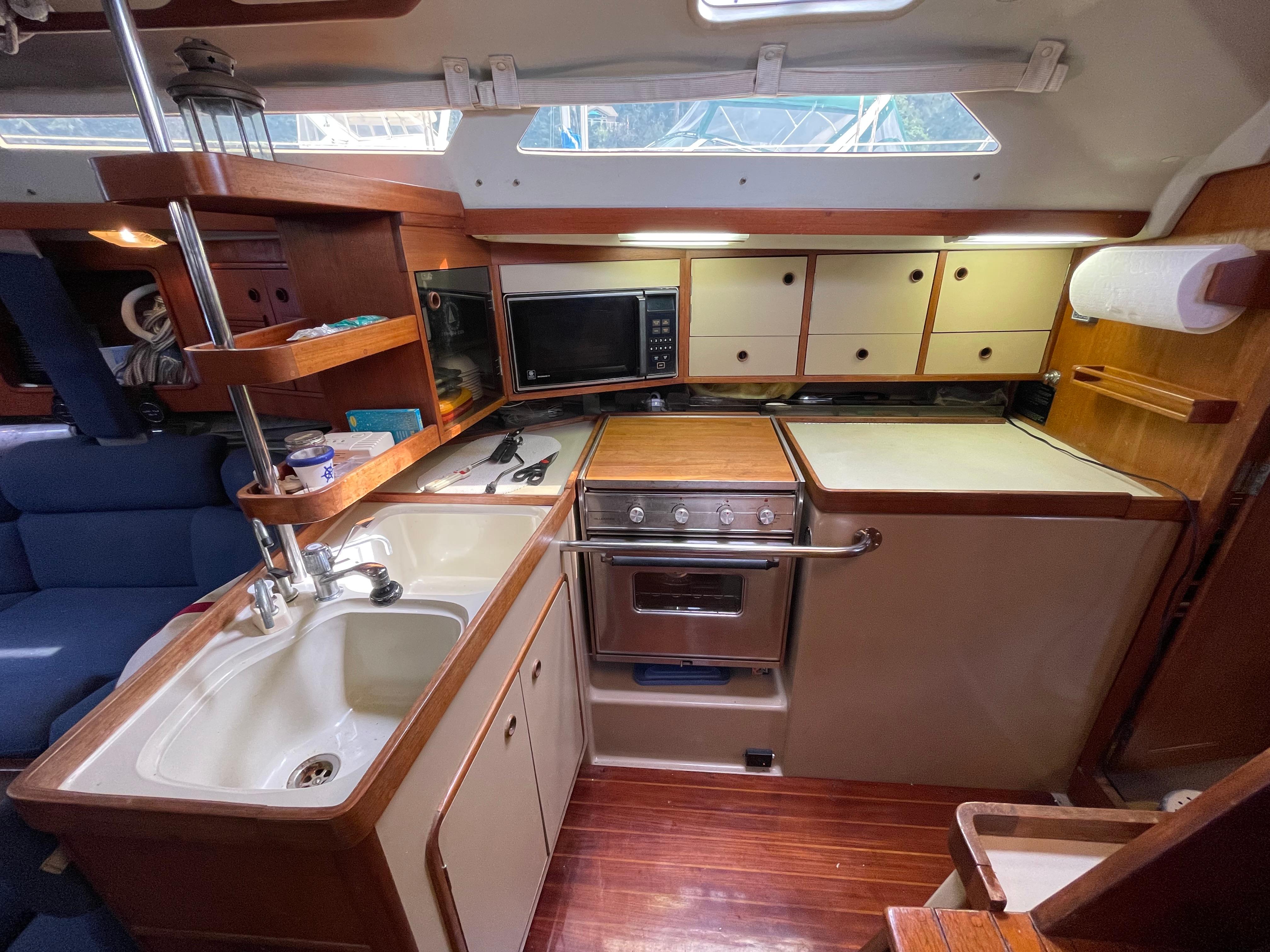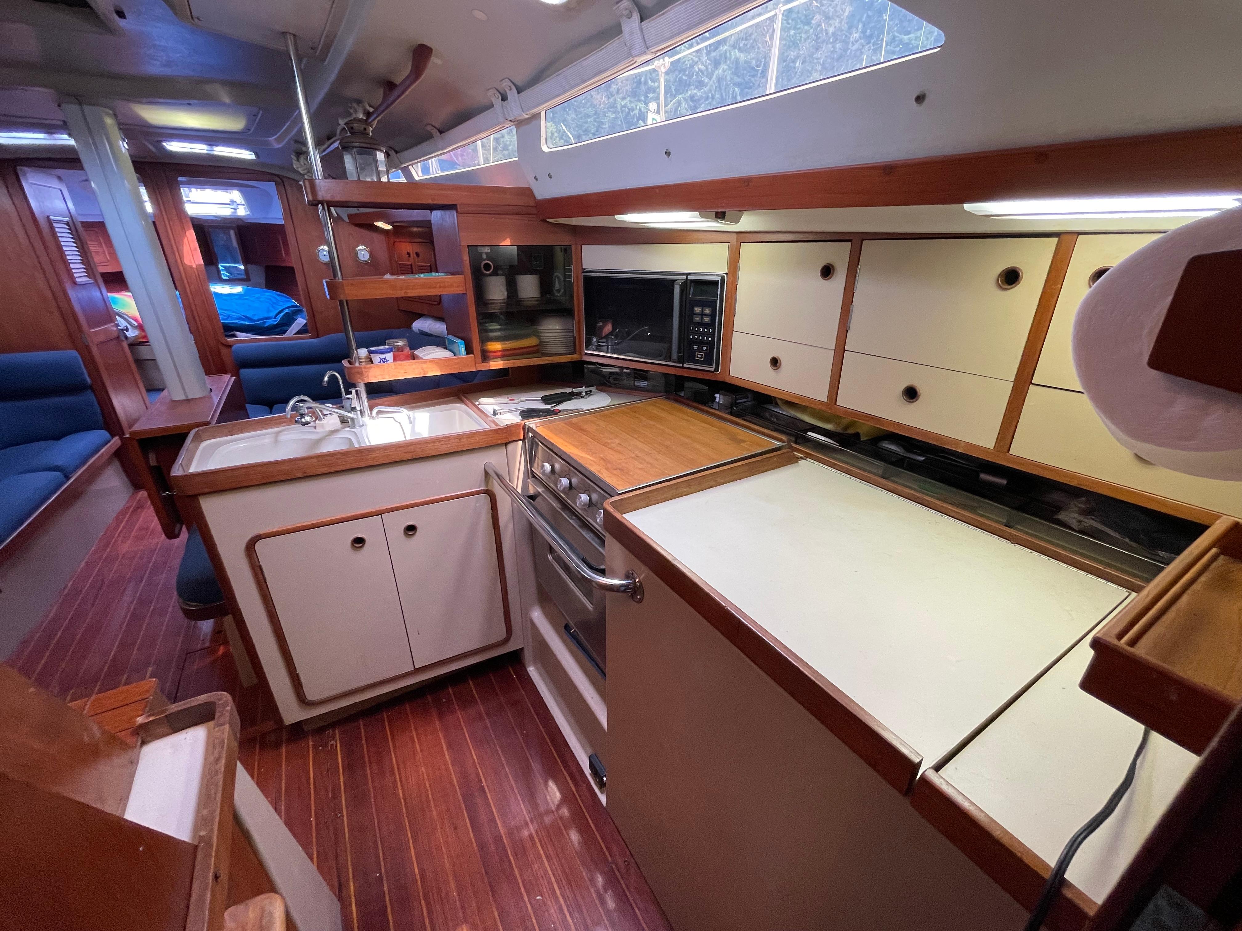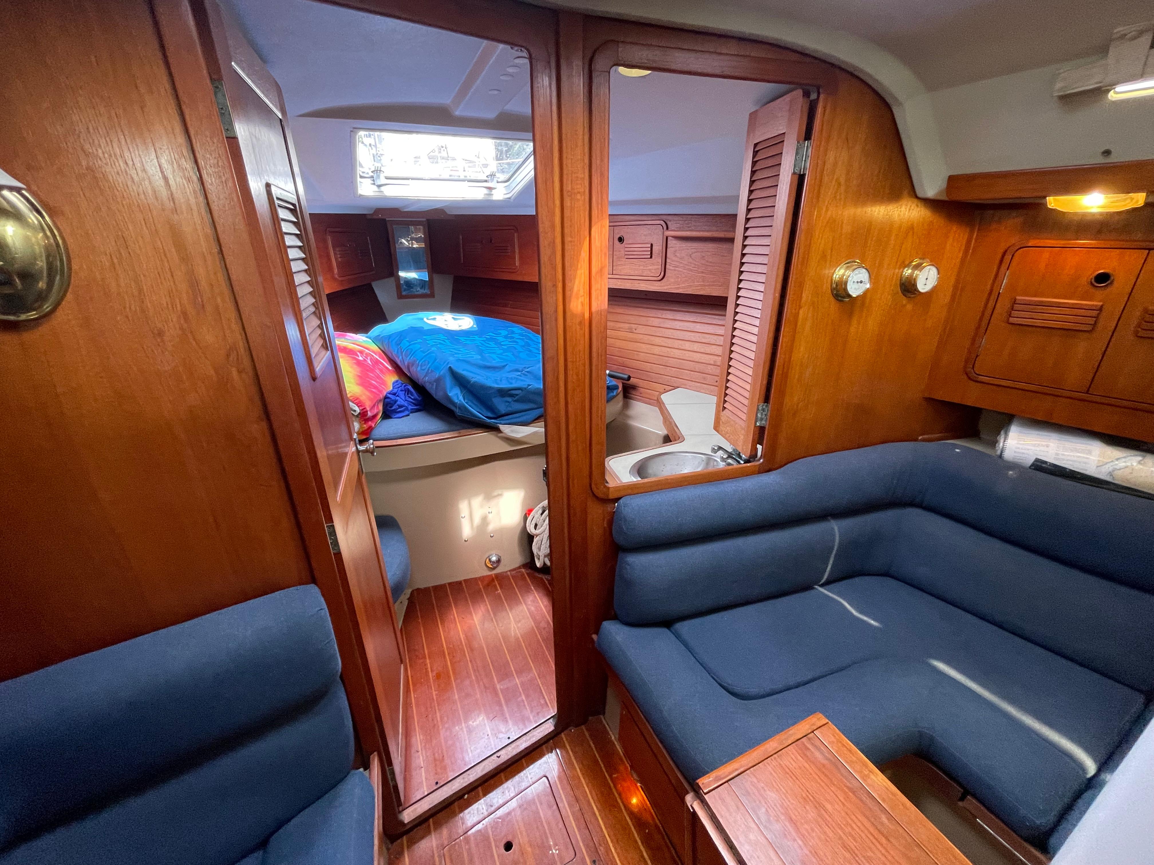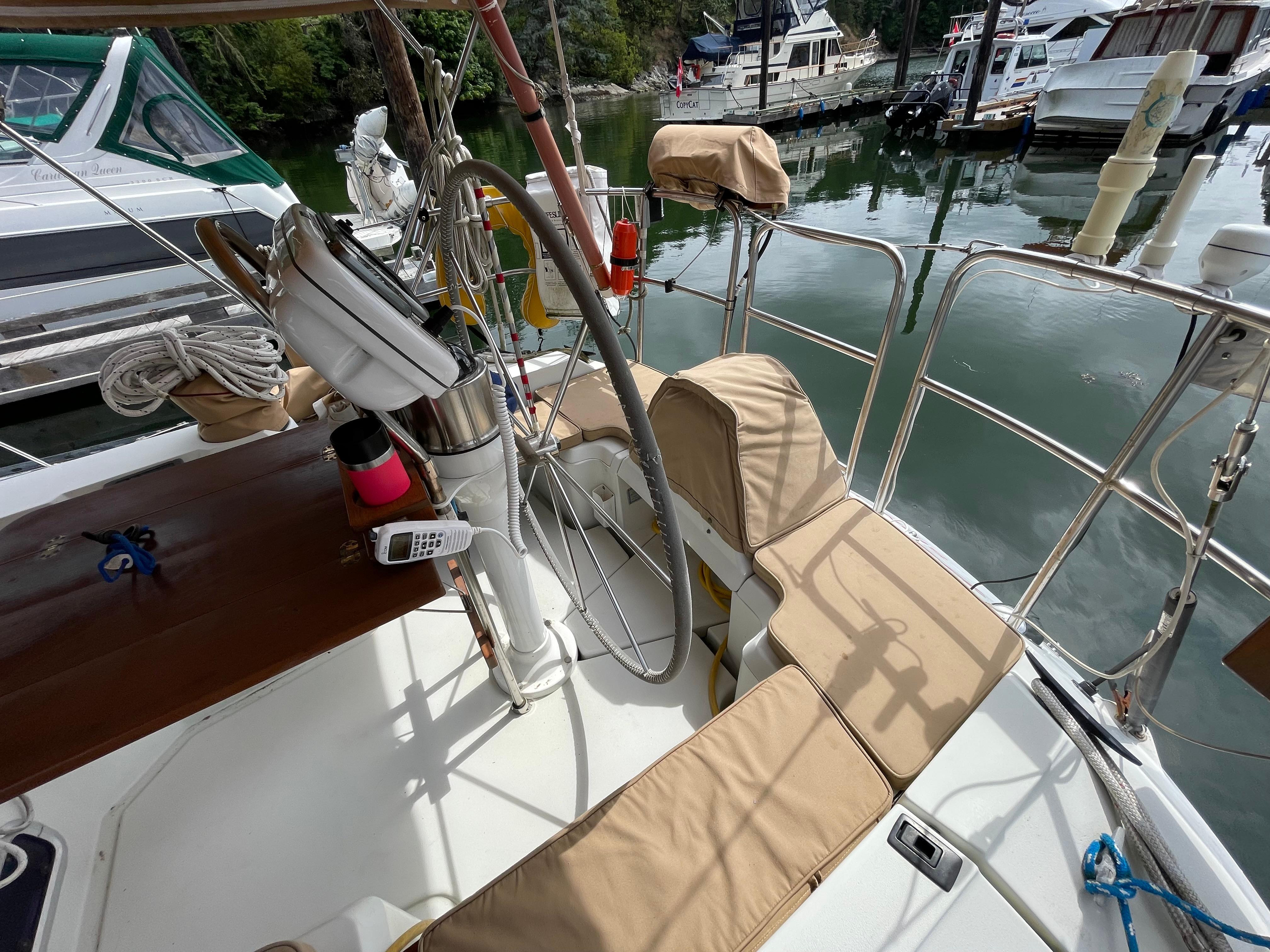 Sailing is made easy, with a standard battened mainsail with lazy jacks, furling genoa and all lines leading aft to the cockpit for safe sail trim. Her Universal M35 diesel runs like a top and features a 3 blade MaxProp. There is also a fuel polishing system installed.