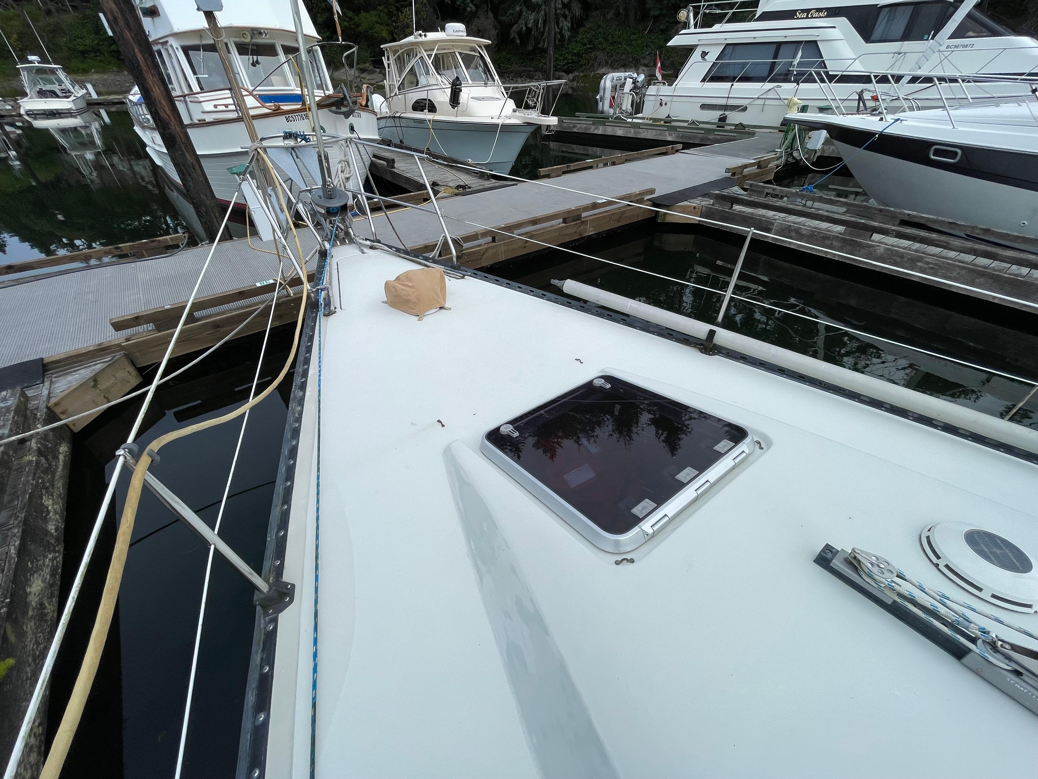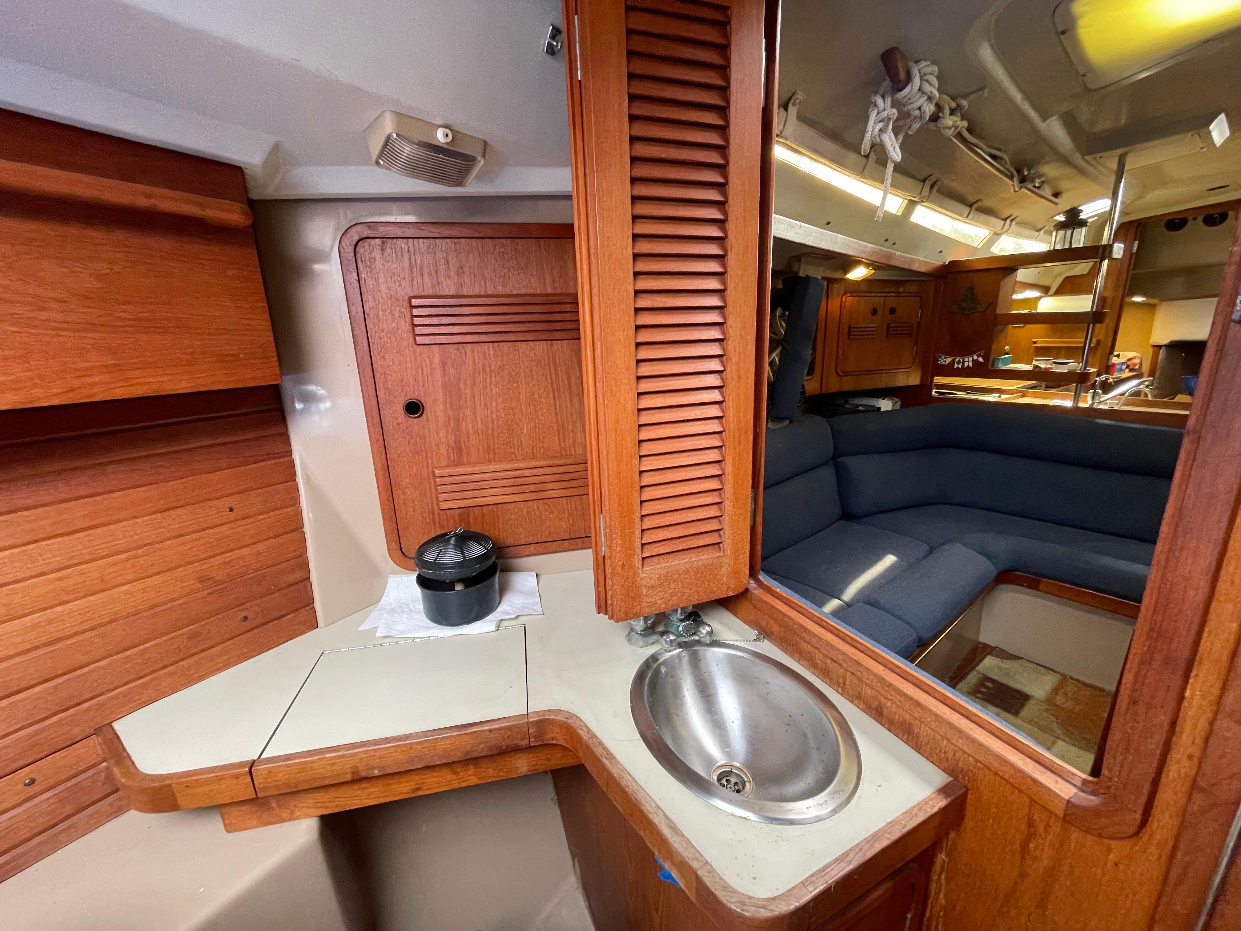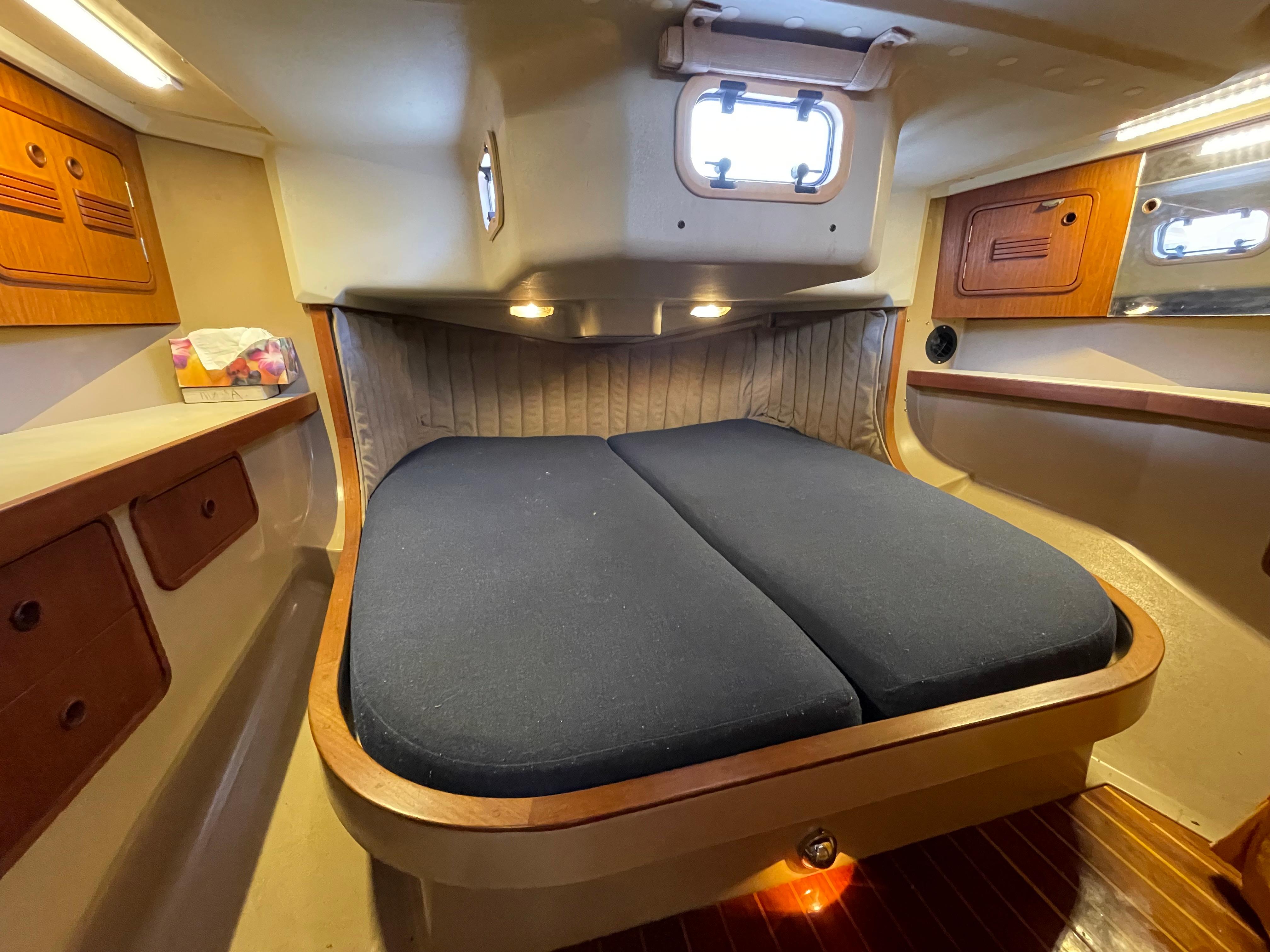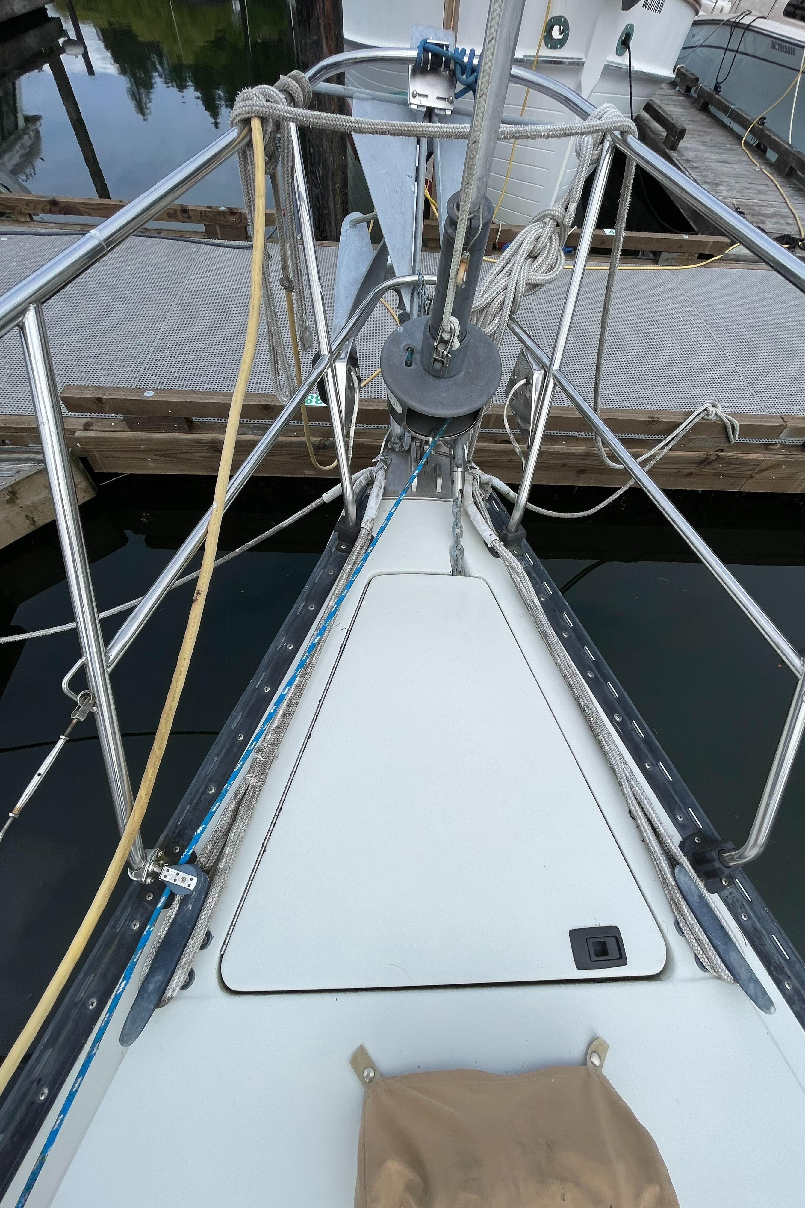 Sailing is made easy, with a standard battened mainsail with lazy jacks, furling genoa and all lines leading aft to the cockpit for safe sail trim. Her Universal M35 diesel runs like a top and features a 3 blade MaxProp. There is also a fuel polishing system installed.