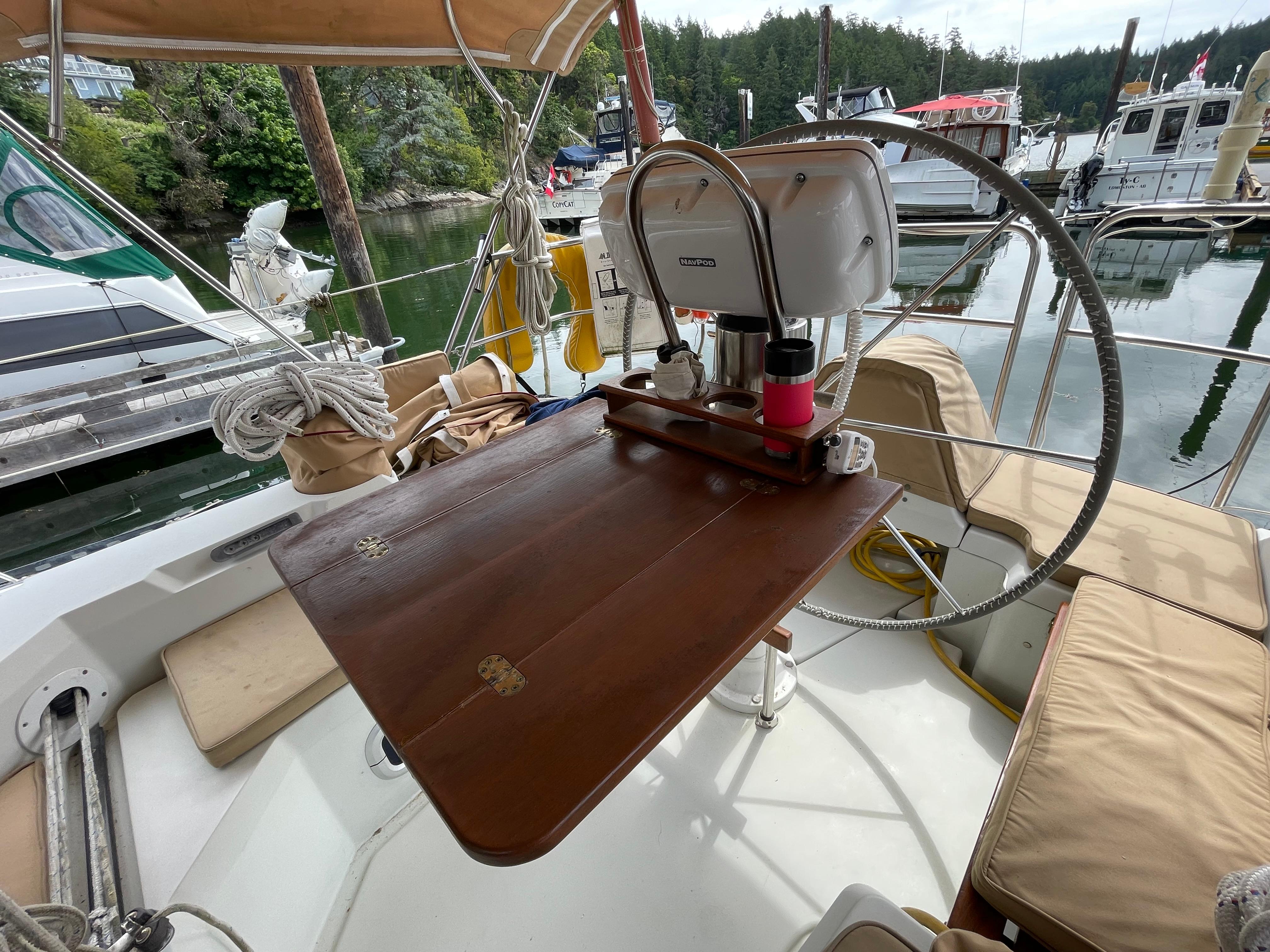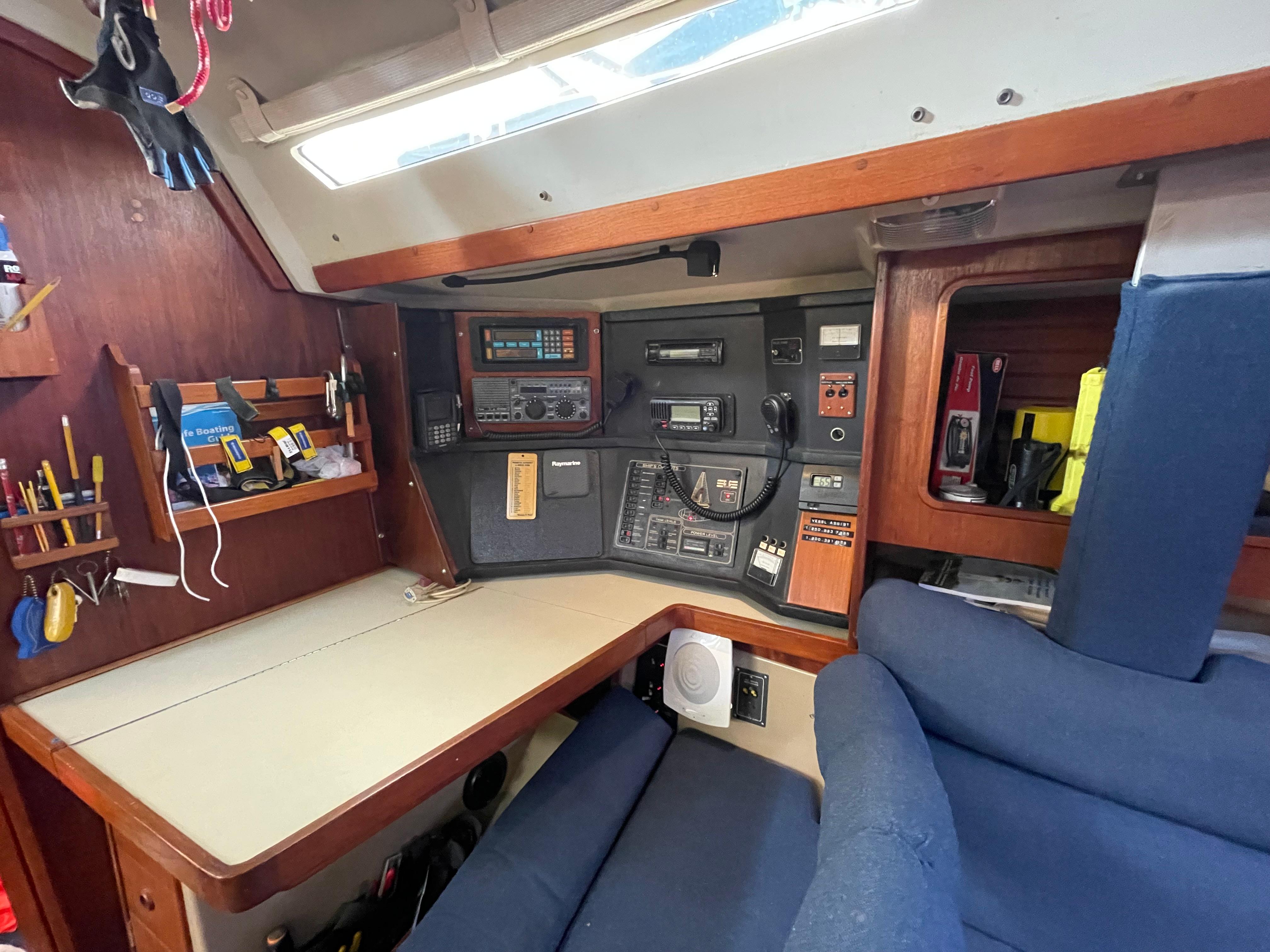 - Chart Table: aft facing full size table to port, all AC/DC panels, electronics and systems easily accessible