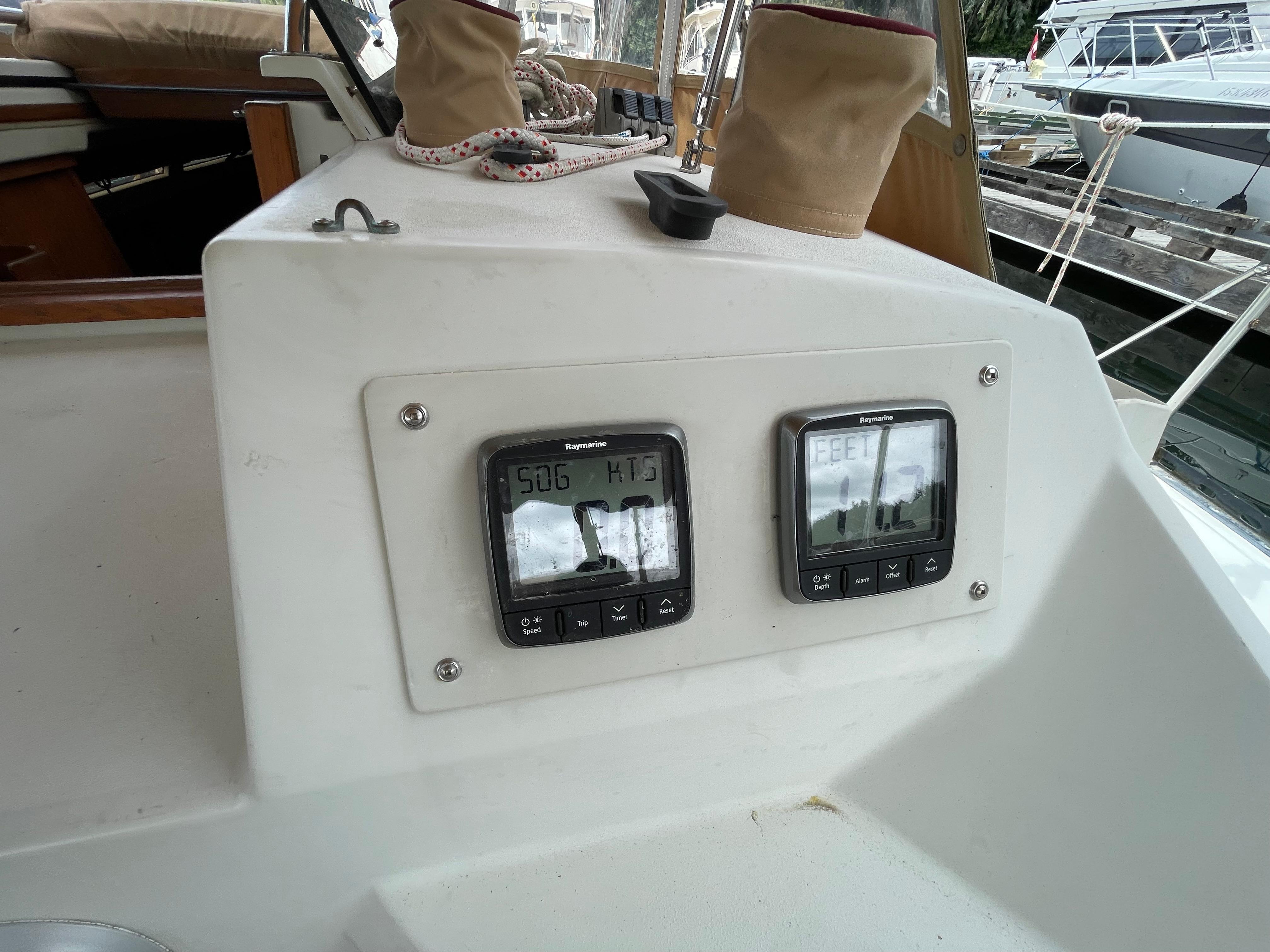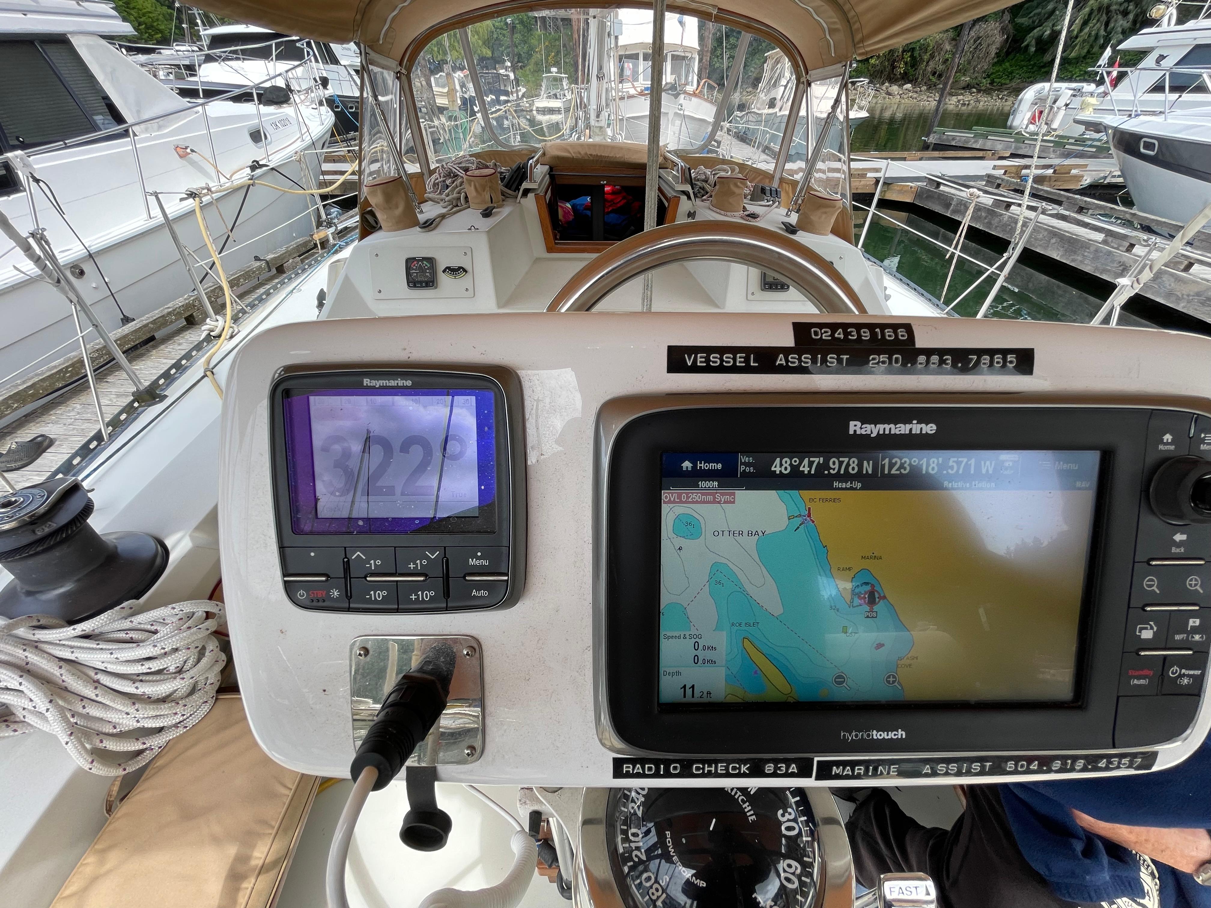 - Raymarine Chartplotter and autopilot mounted in Navpod, VHF mic