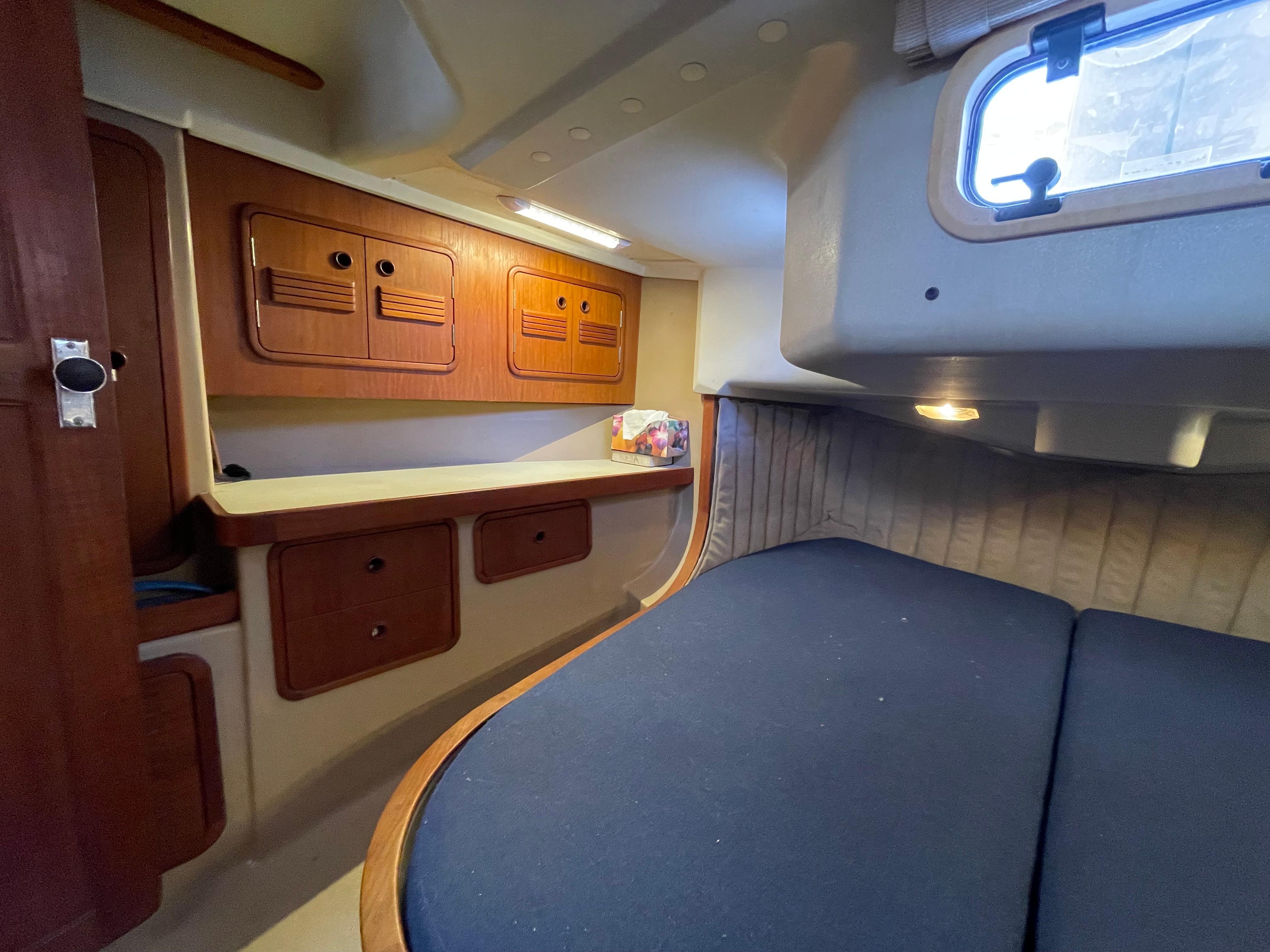 - Owners Cabin: Aft cabin, centerline walk around queen