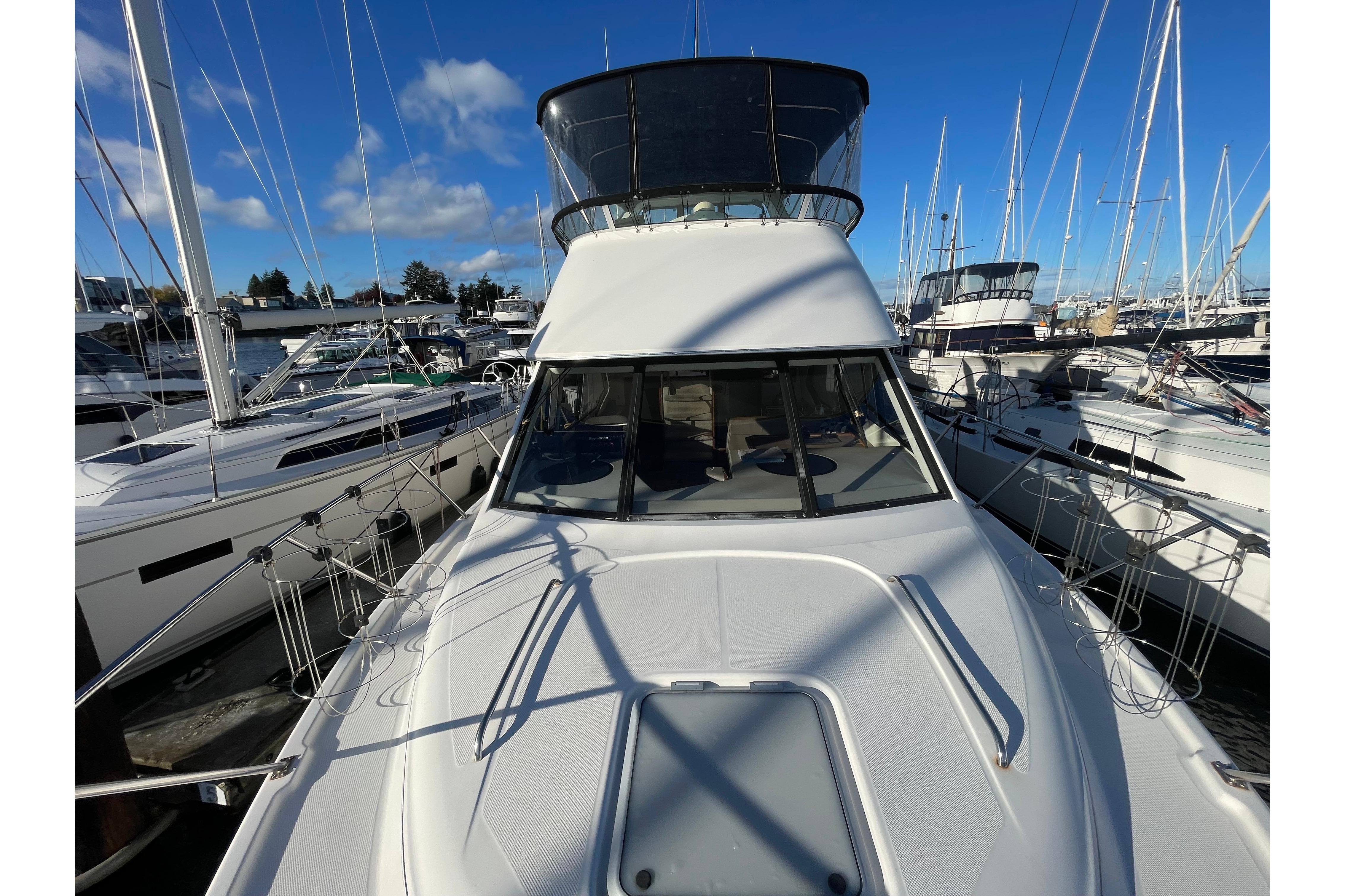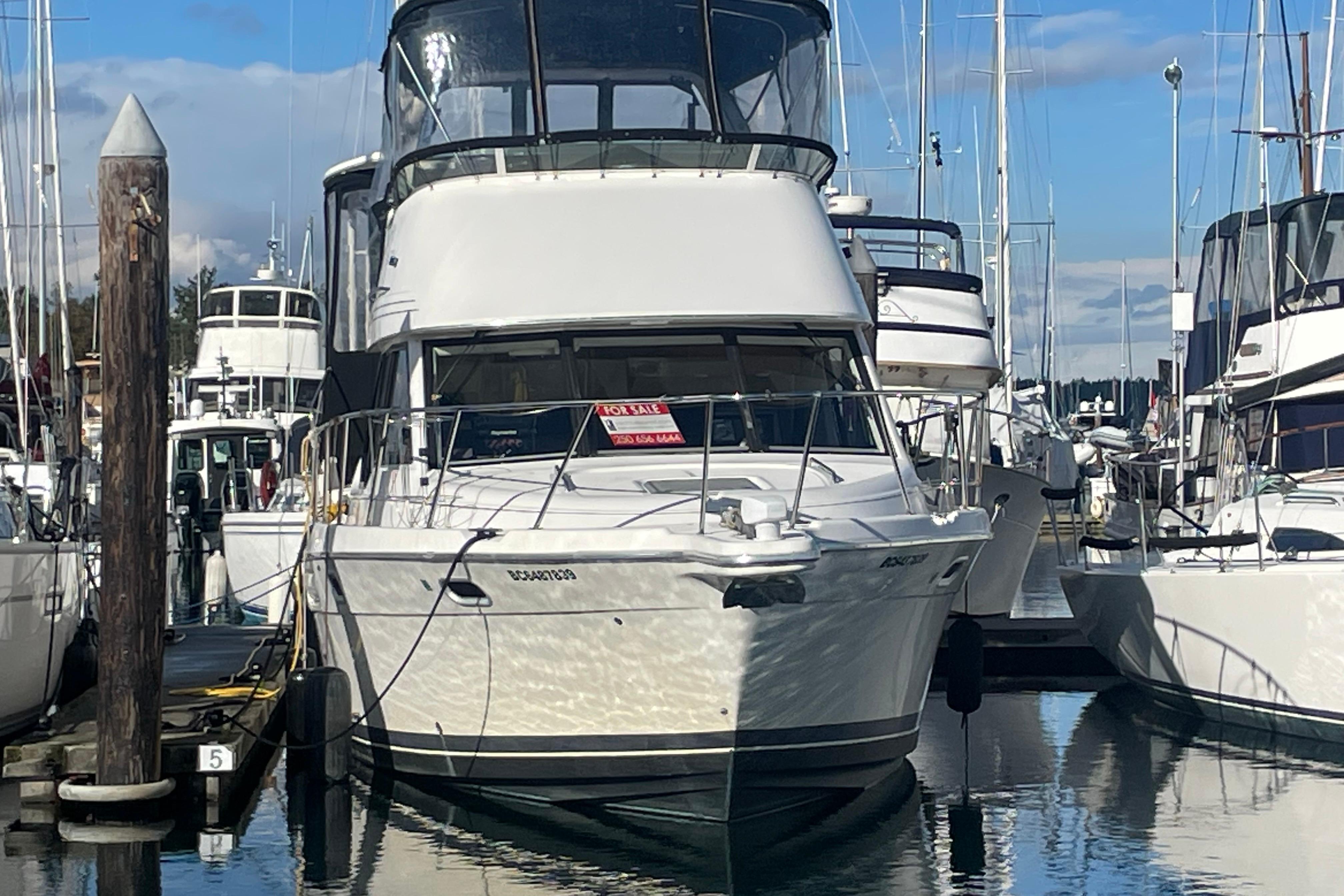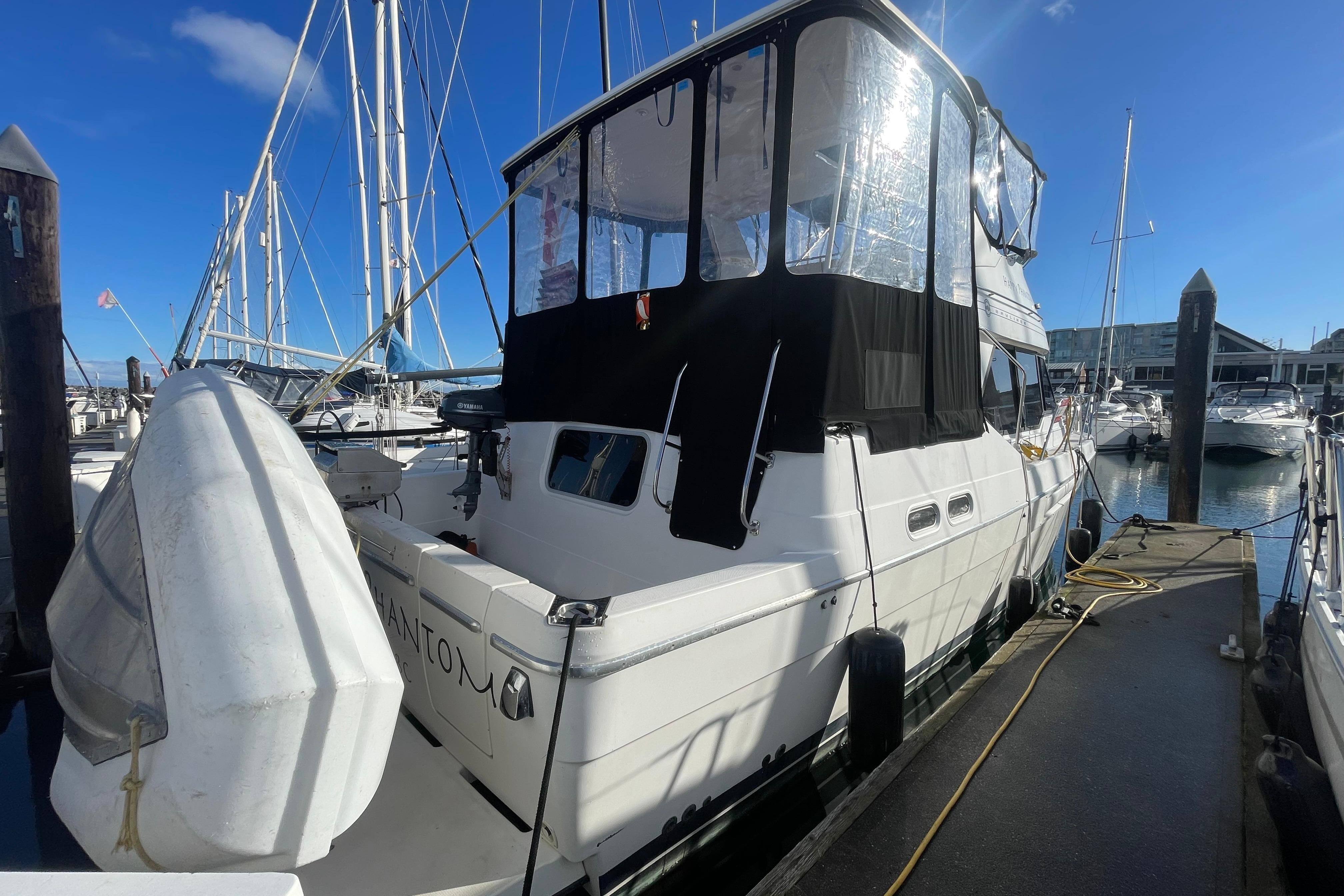 The Bayliner 4087 Aft Cabin is a fantastic family cruising motor yacht for the PNW. She has an extremely functional layout featuring 3 spacious cabins and 2 heads. The enclosed flybridge is a great area to relax in, under way or at anchor. The upper aft deck is also enclosed in canvas and increases your living area exponentially.