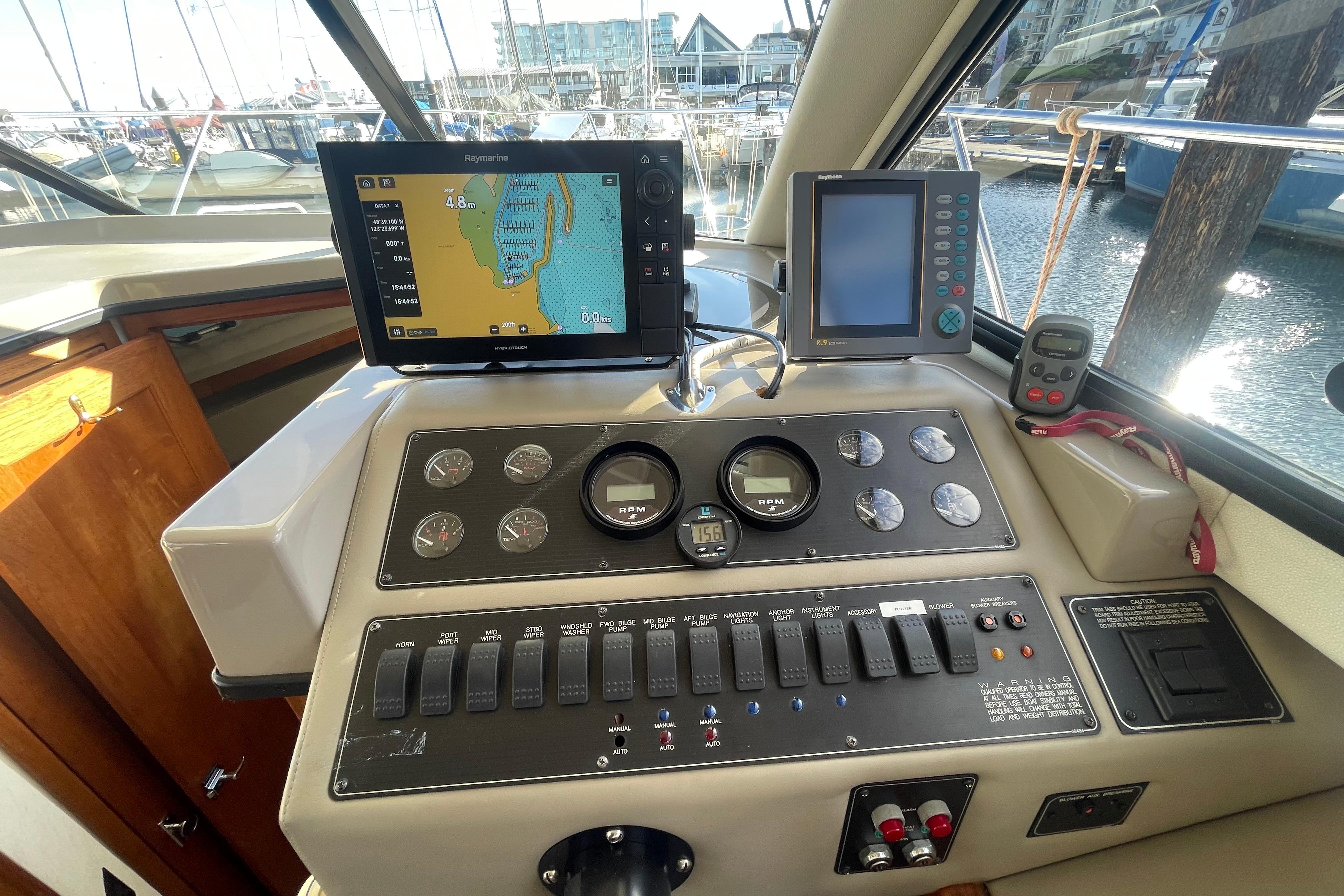 - Helm includes analogue gauges, new Raymarine chartplotter, VHF, Autopilot