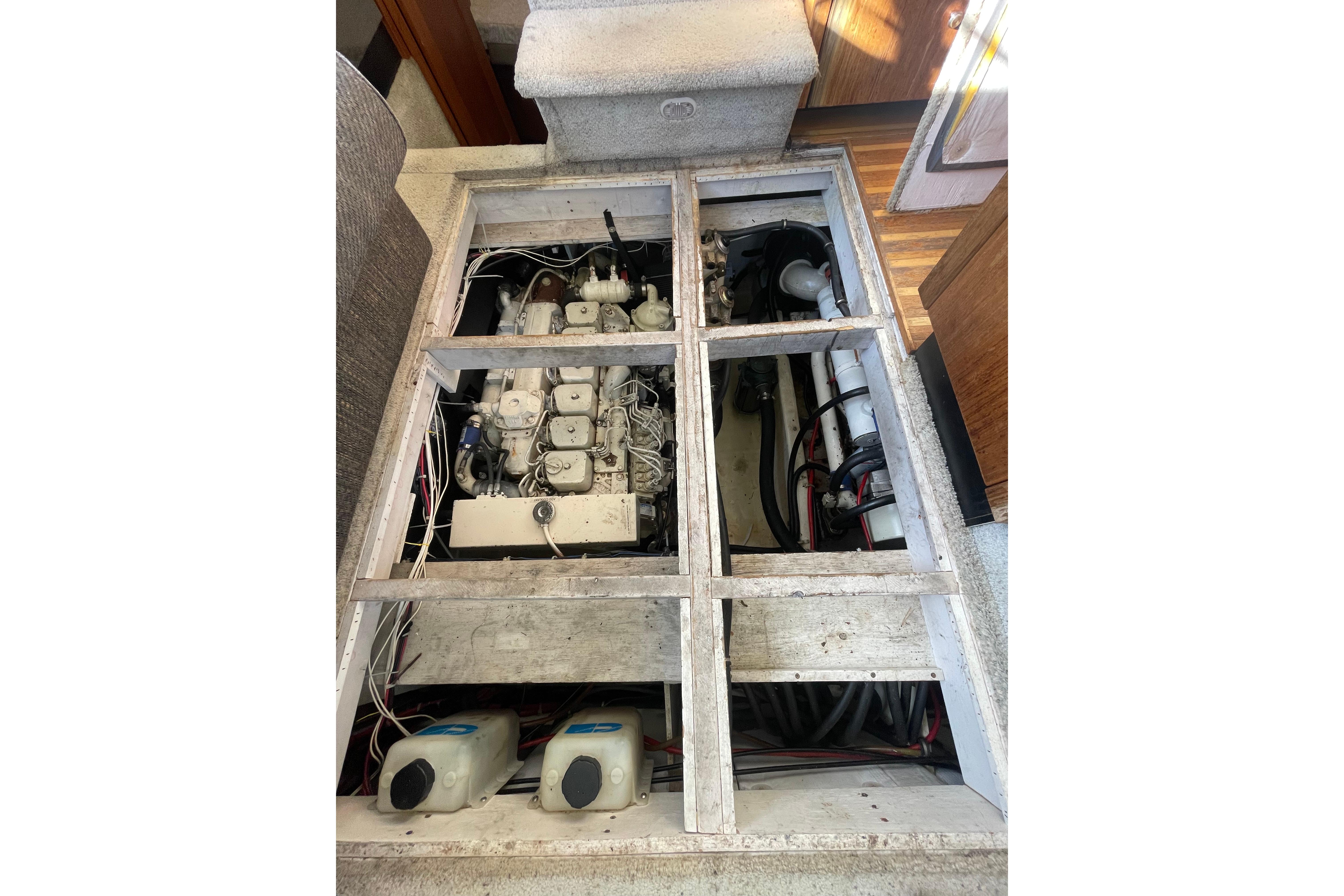 - Molded fiberglass stairs to flybridge and to lower cockpit