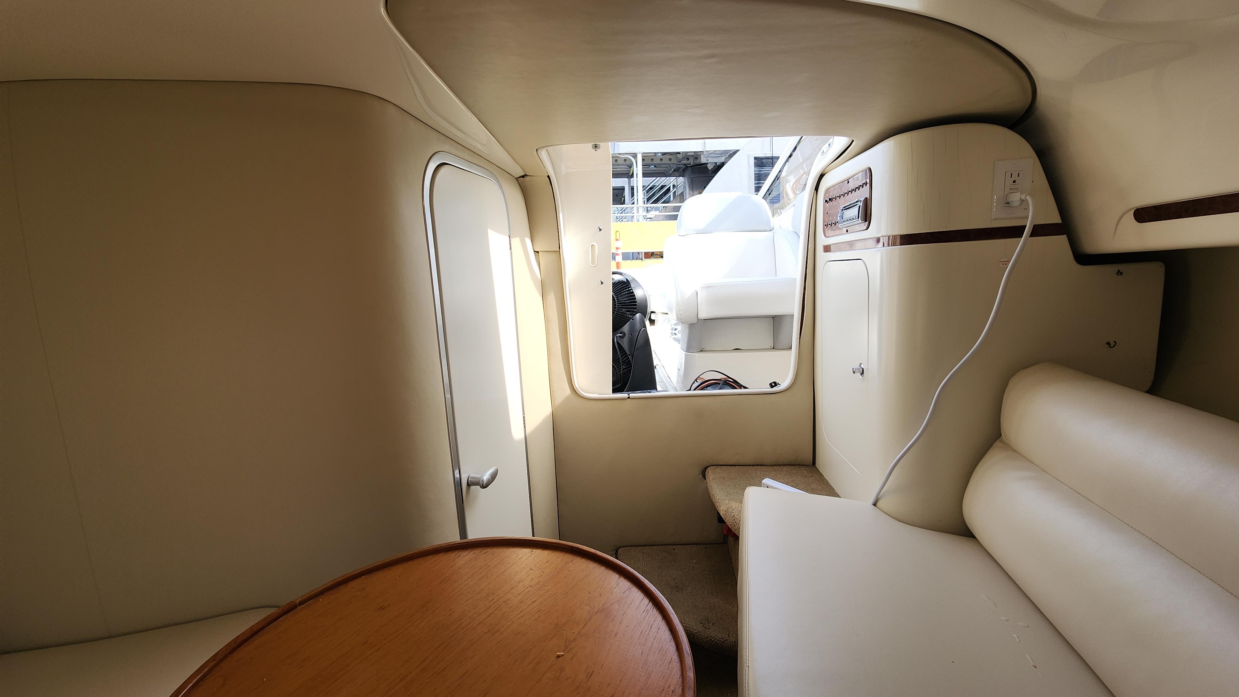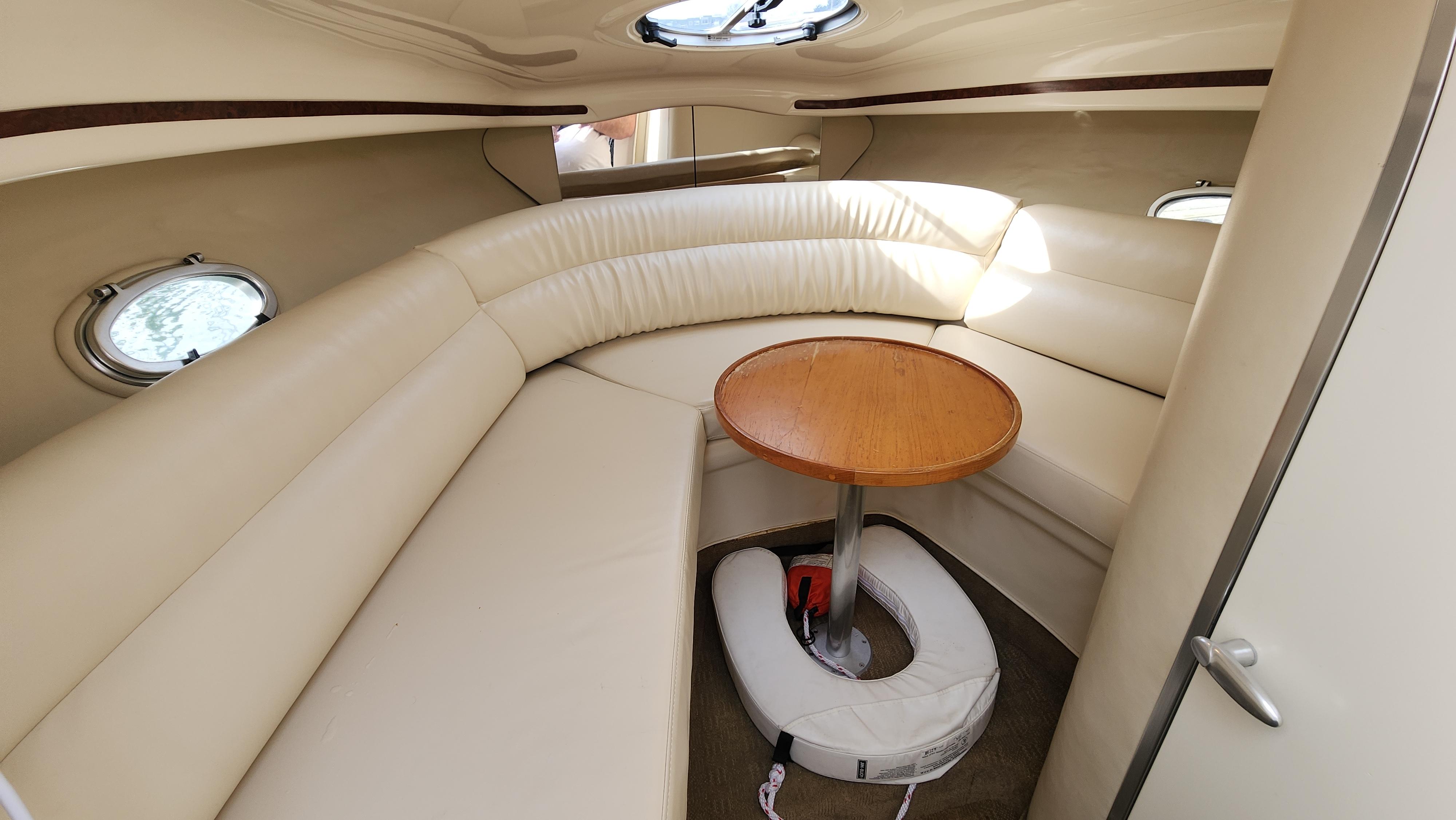Table can be removed from cockpit and pull out cushion makes aft seating a bed