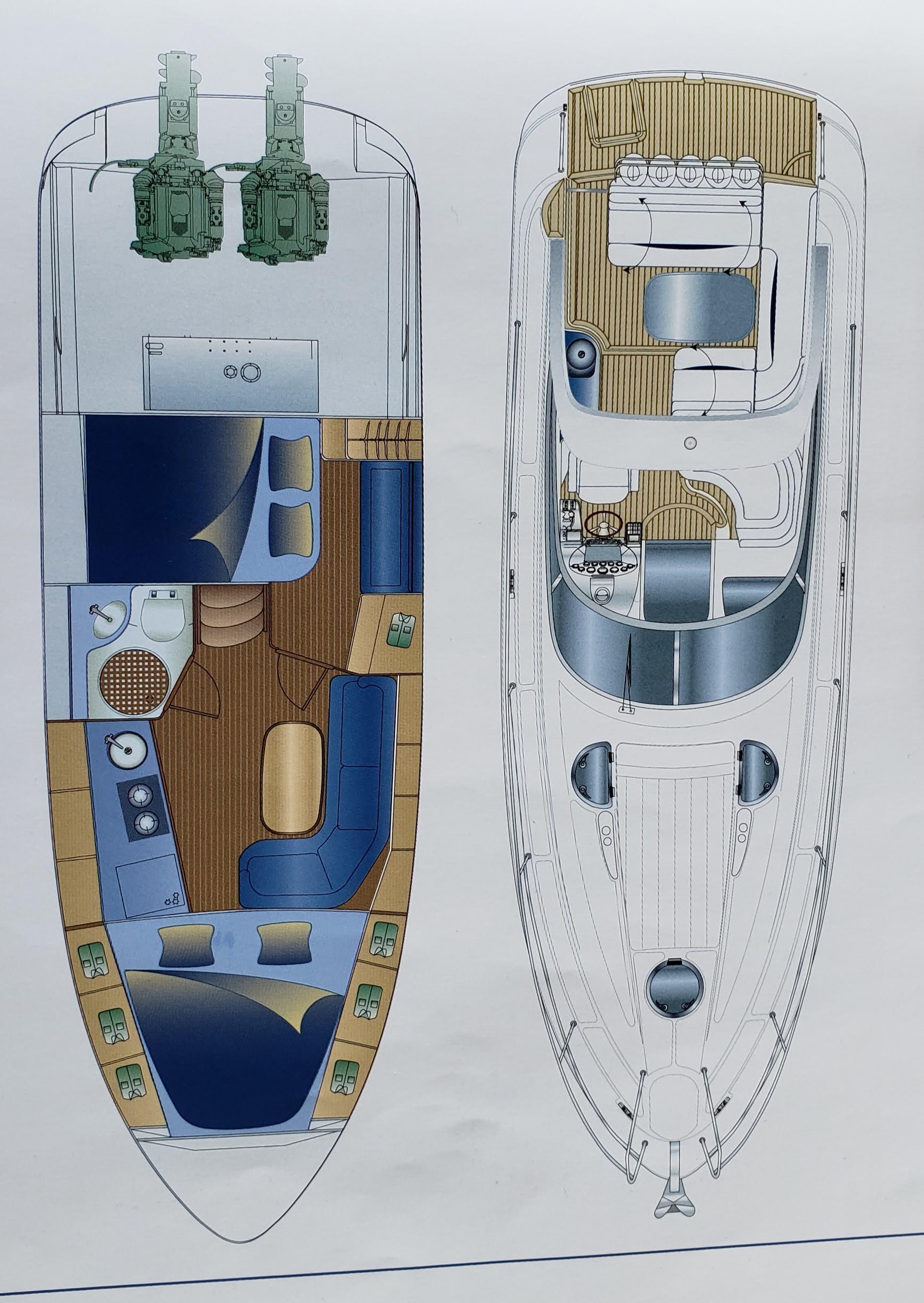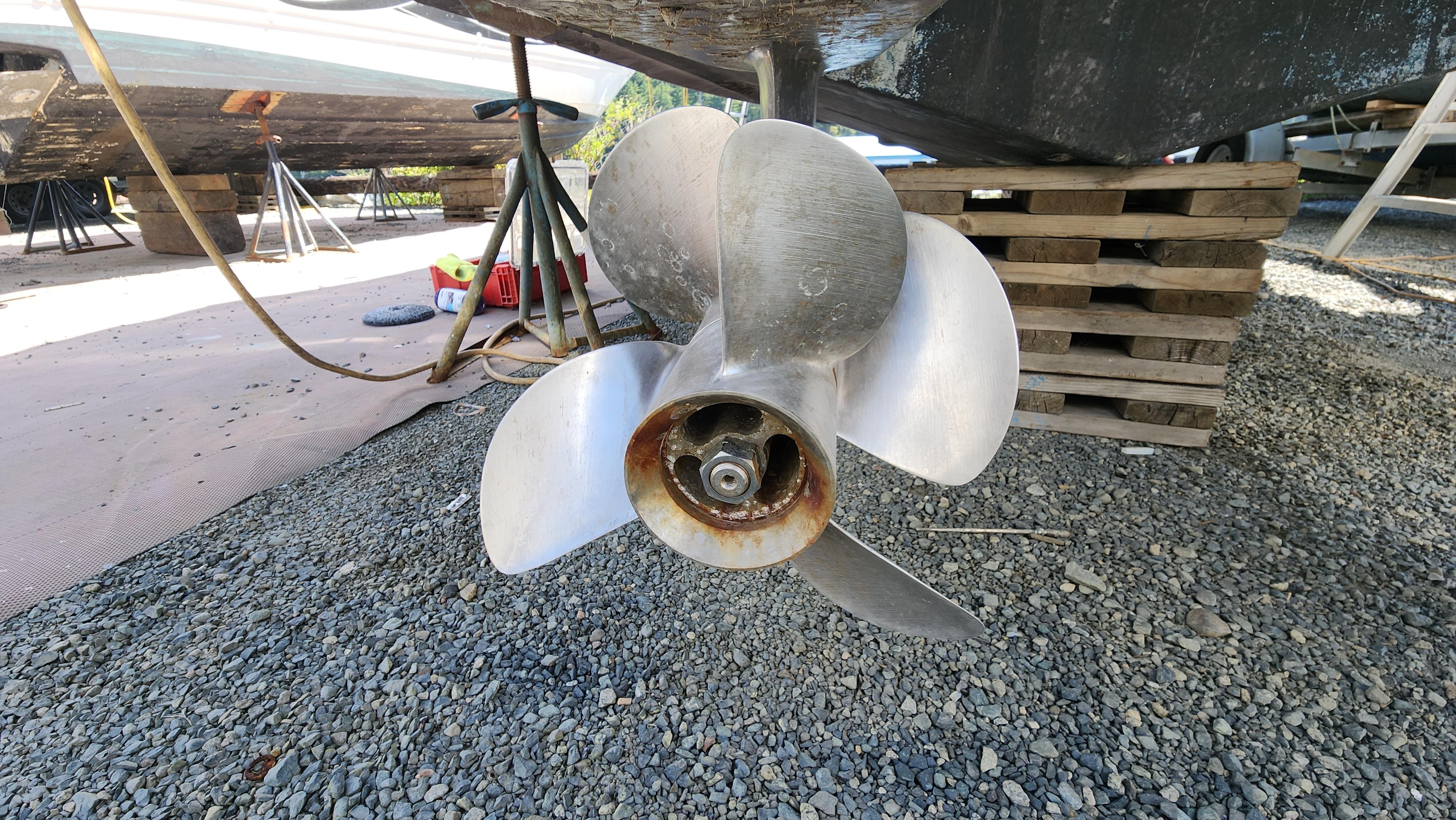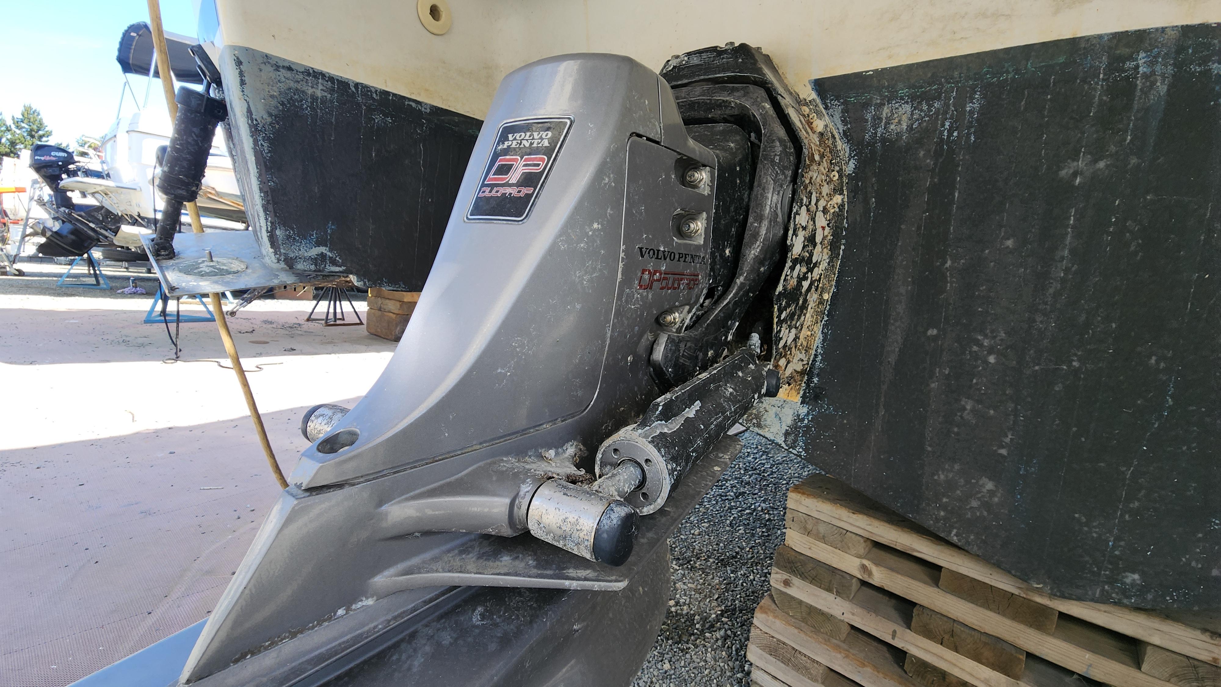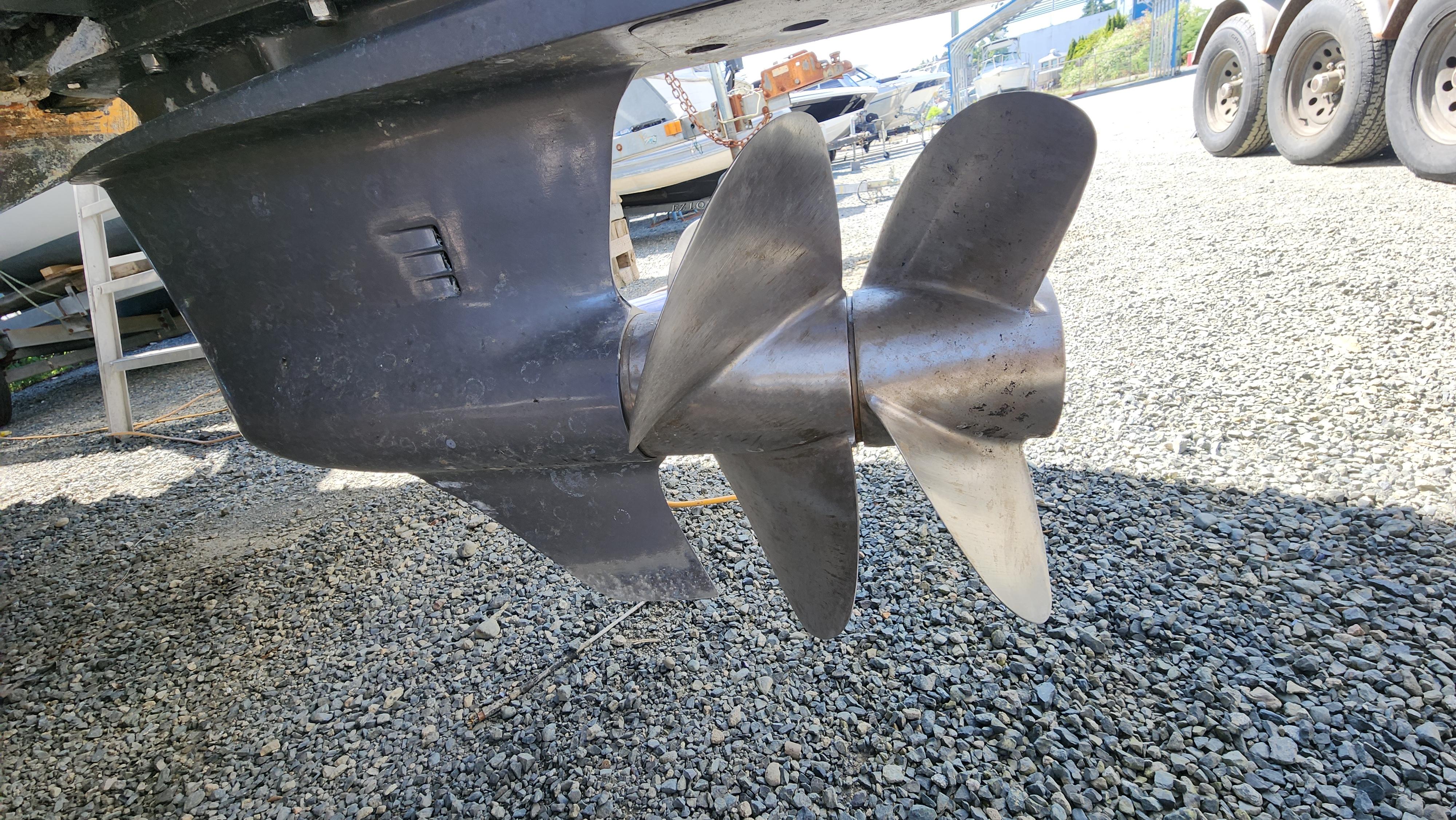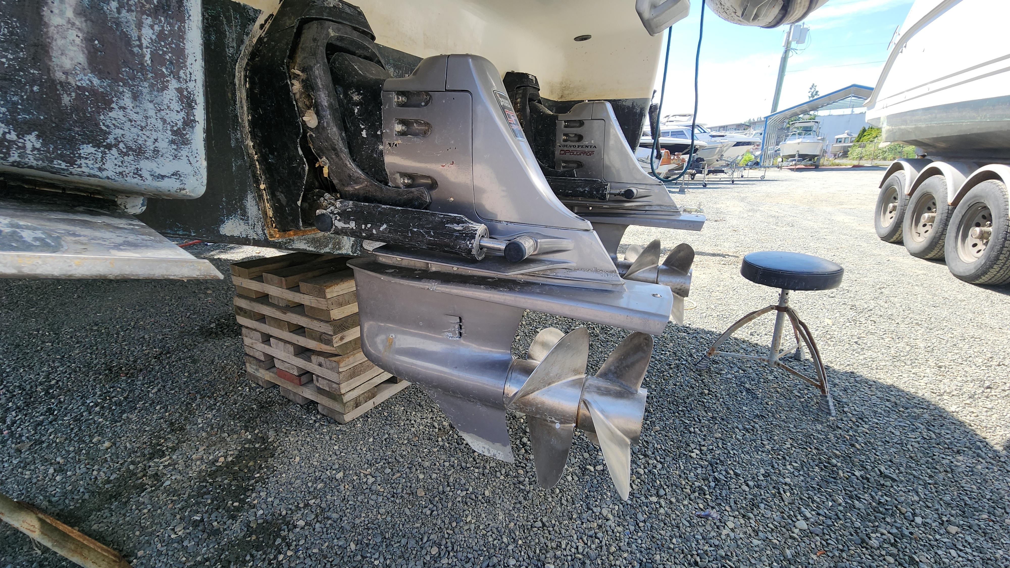 Propulsion is provided by the twin “Volvo Penta" duo-prop stern drives with 3-bladed S/S propellers. The outboard sides have the “Bennett” [10" x13"] hydraulic trim tabs.