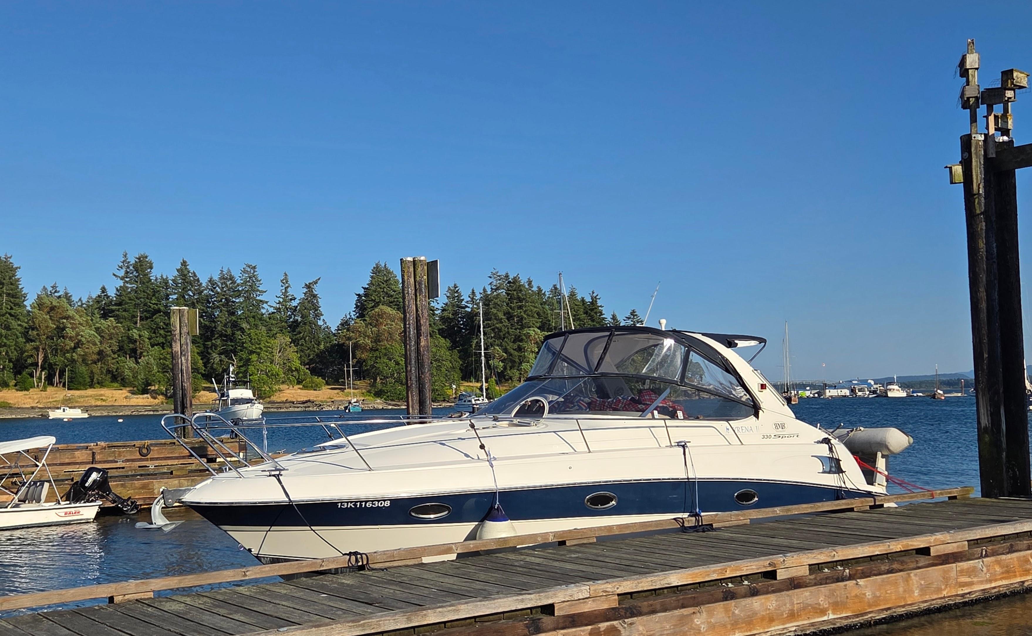 Powered by twin Volvo Penta 5.7 GSi and 2024 Volvo Penta DP outdrives you will have great performance from this family cruiser. Currently dry stored in Naniamo with possible assumable moorage you can explore the coast from a central location.
