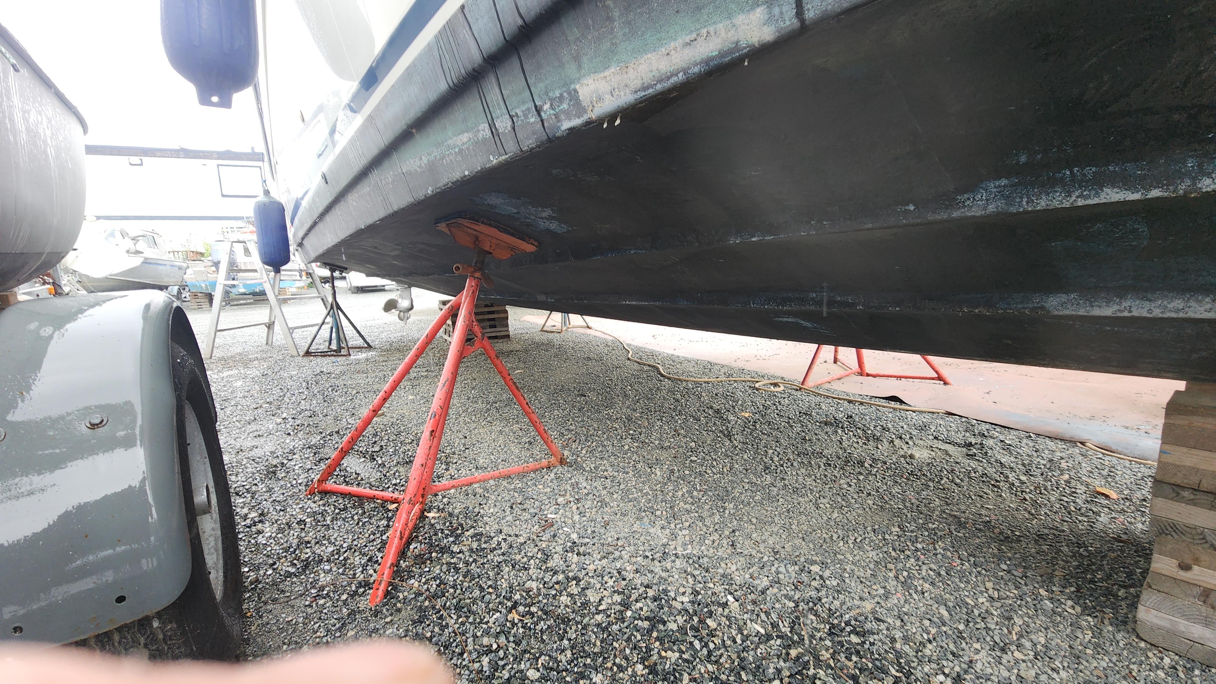 The bow is fitted with an external mounted bow thruster with the “Sideshift” 3-bladed propeller. A rubber guard is fitted on the stem above the thruster to protect the wiring leading it above the waterline. The helm has a jog stick to operate.