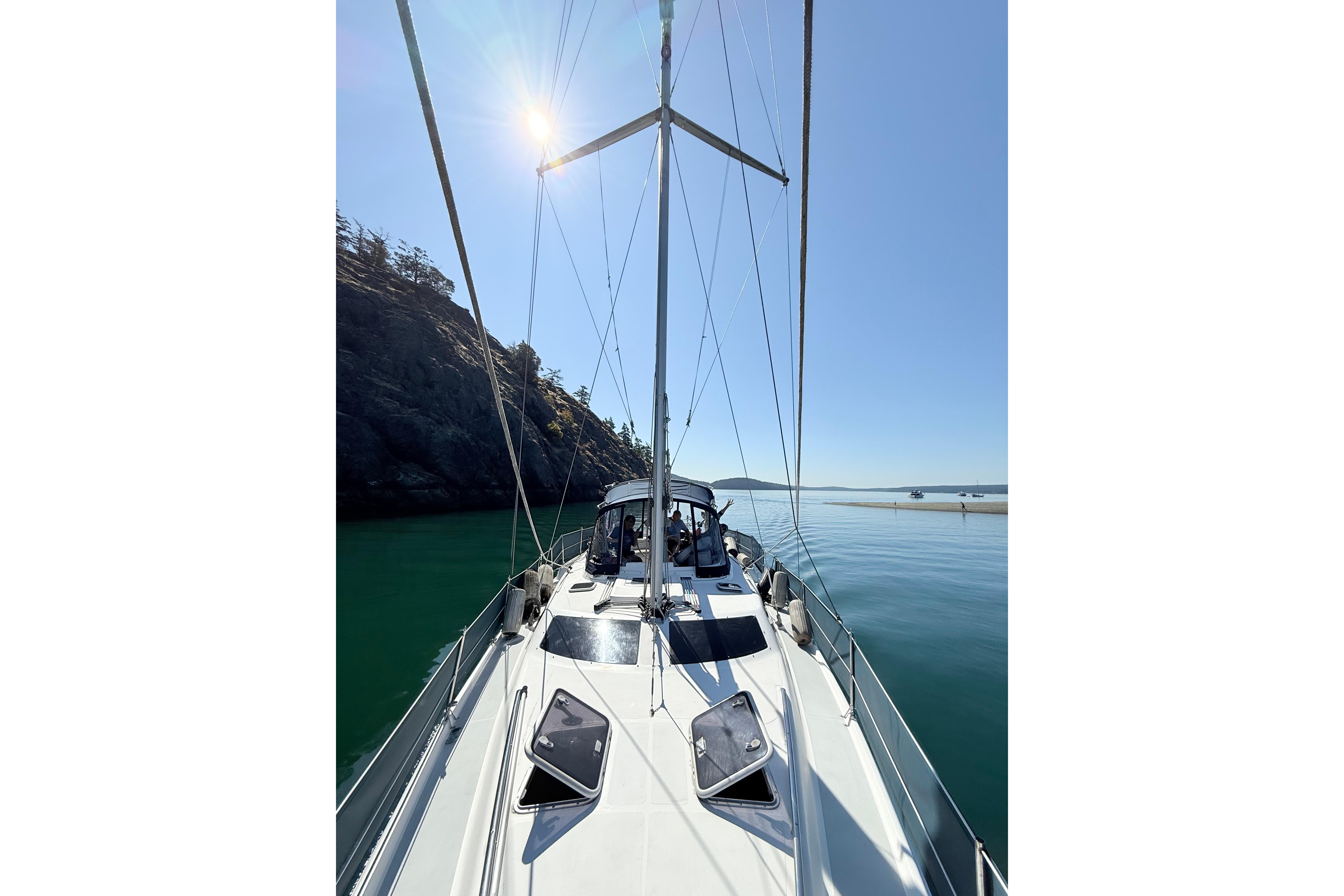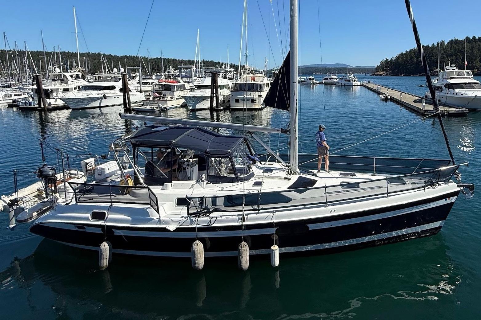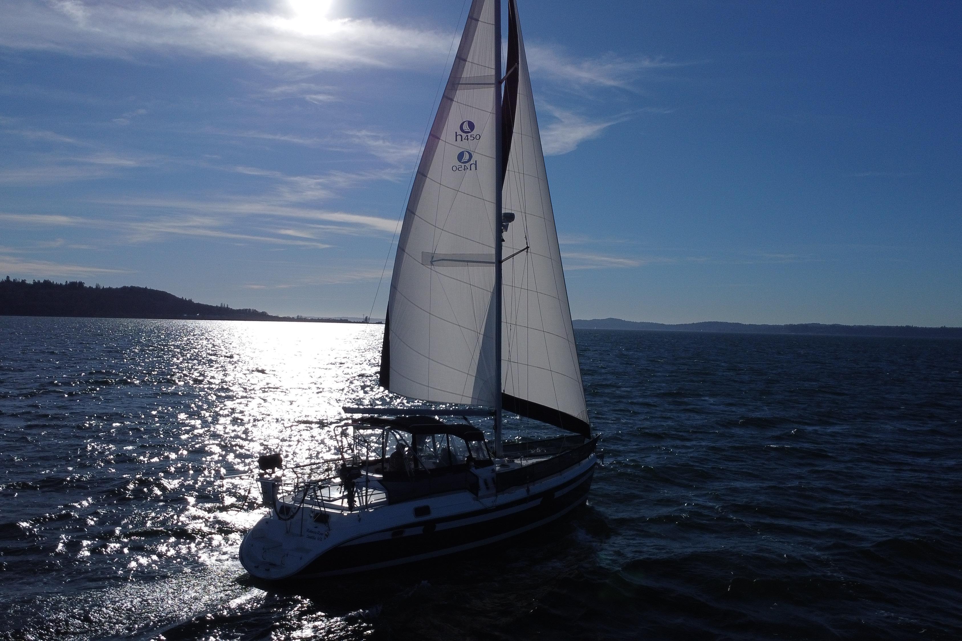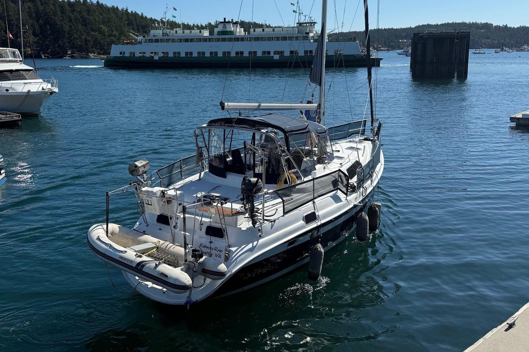 This Hunter 450 Passage Center Cockpit is truly a fantastic PNW cruising vessel. Rebecca Ryan has been loved by her current owners with regular maintenance and upgrades over the 14 years they have owned her. She features a lovely large owners cabin aft plus a spacious and comfortable Guest cabin forward. The salon and galley area are extremely spacious and inviting with an abundance of natural light filtering through the large skylights, ports and hull windows. She is well equipped with a full enclosure, reverse air/heat, generator, dinghy on davits, good electronics, 76hp Yanmar engine with a bow thruster.