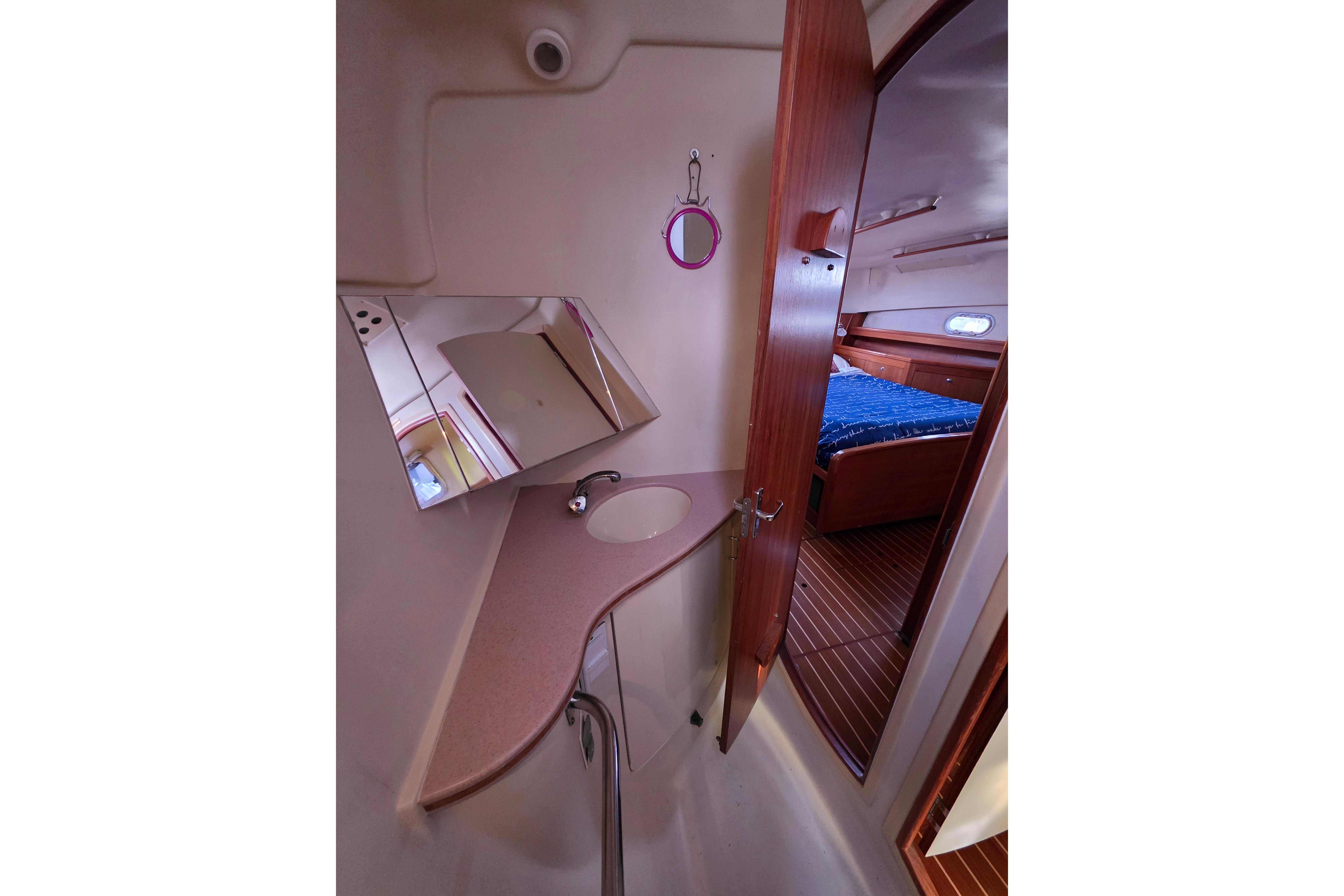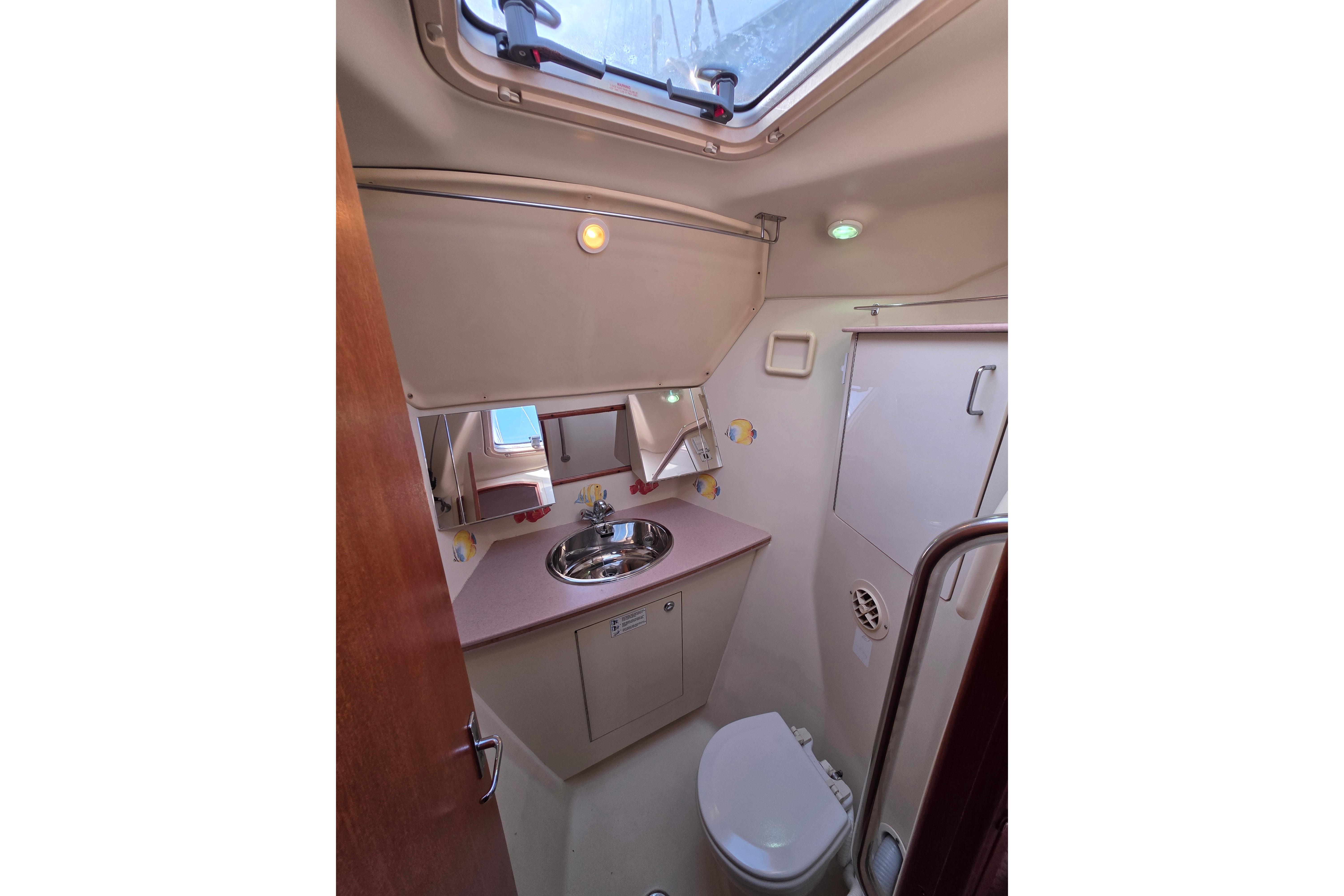 - Guest head: forward of the guest cabin in the forepeak