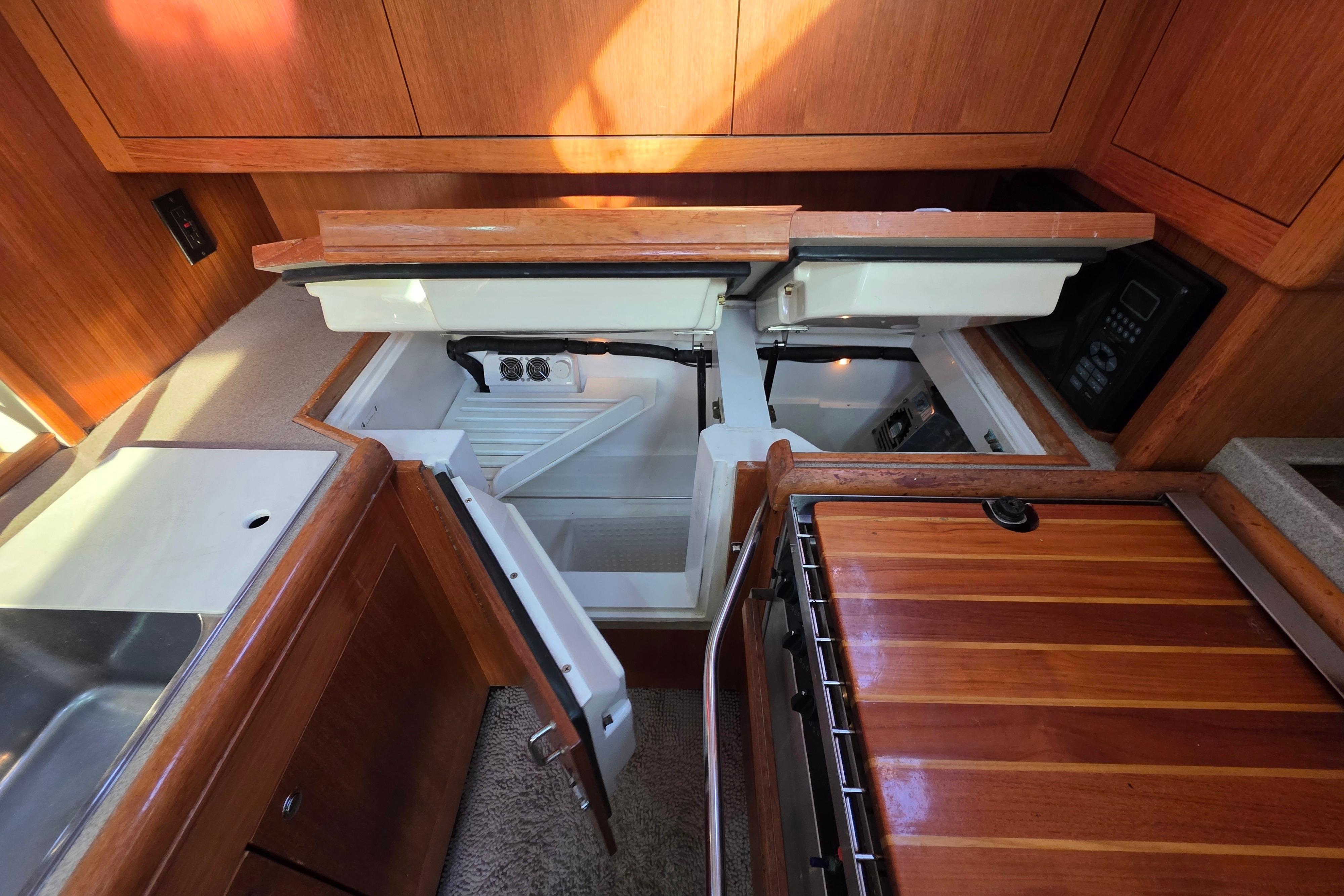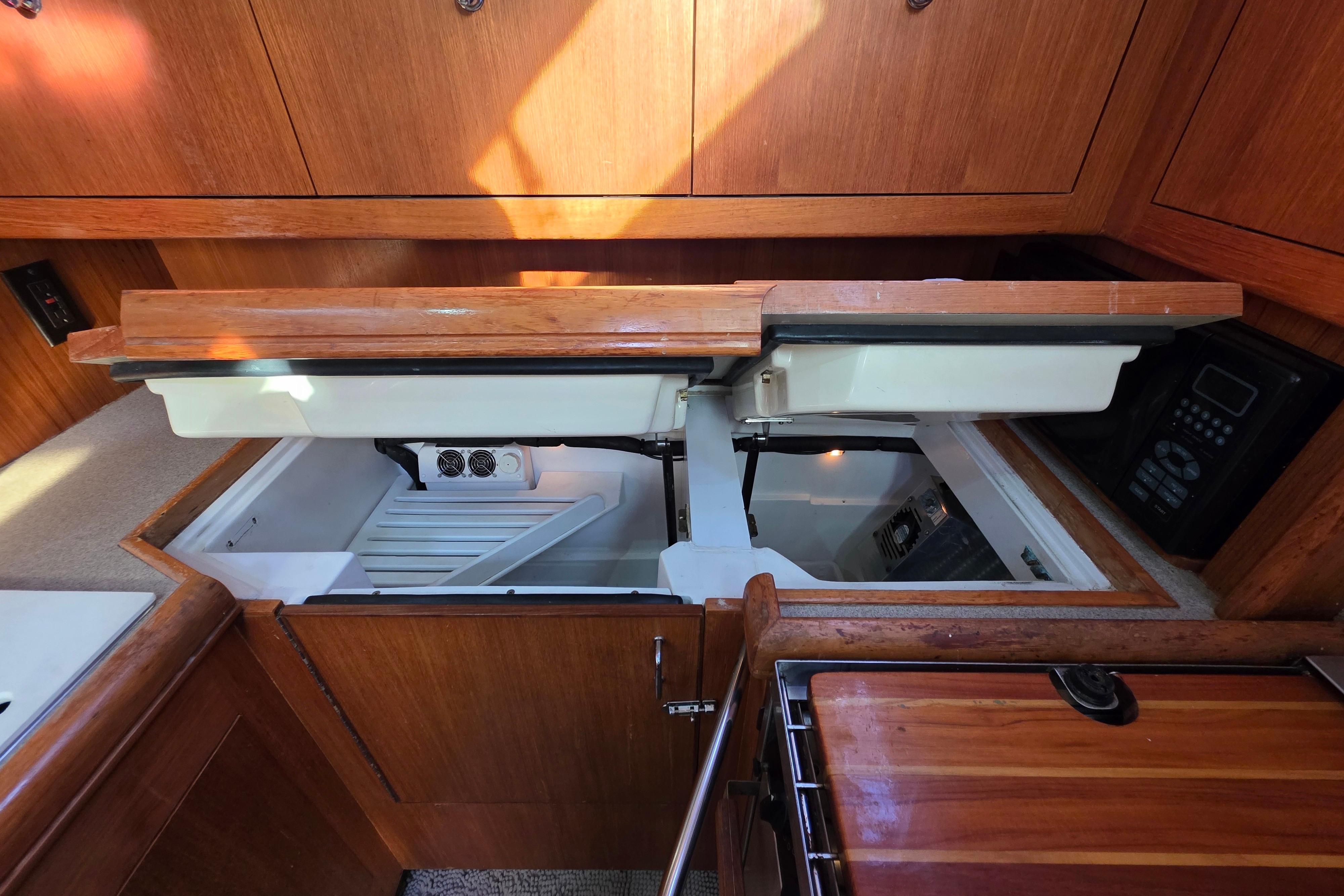 - Freezer: Aft counter features a top loading freezer