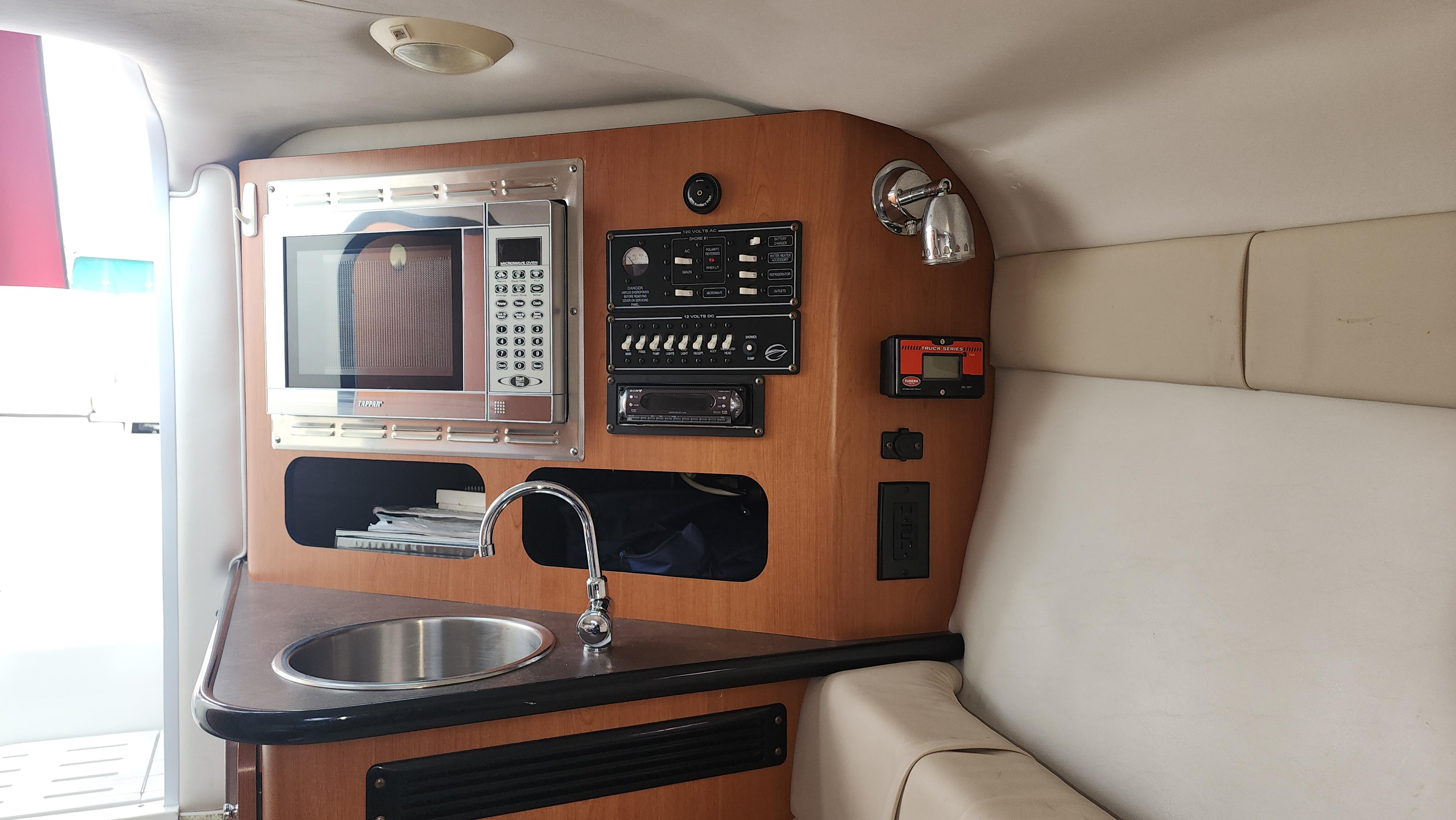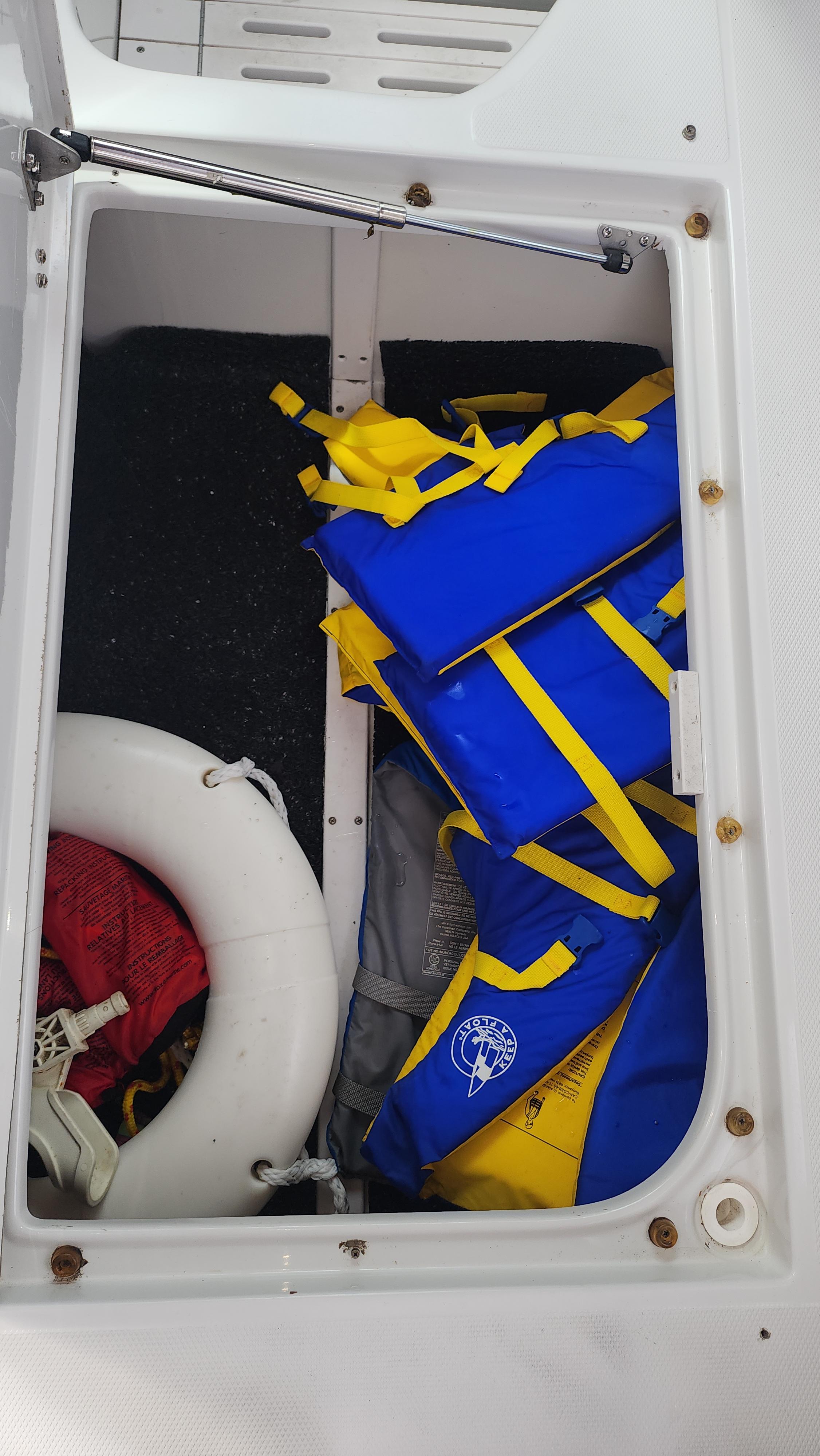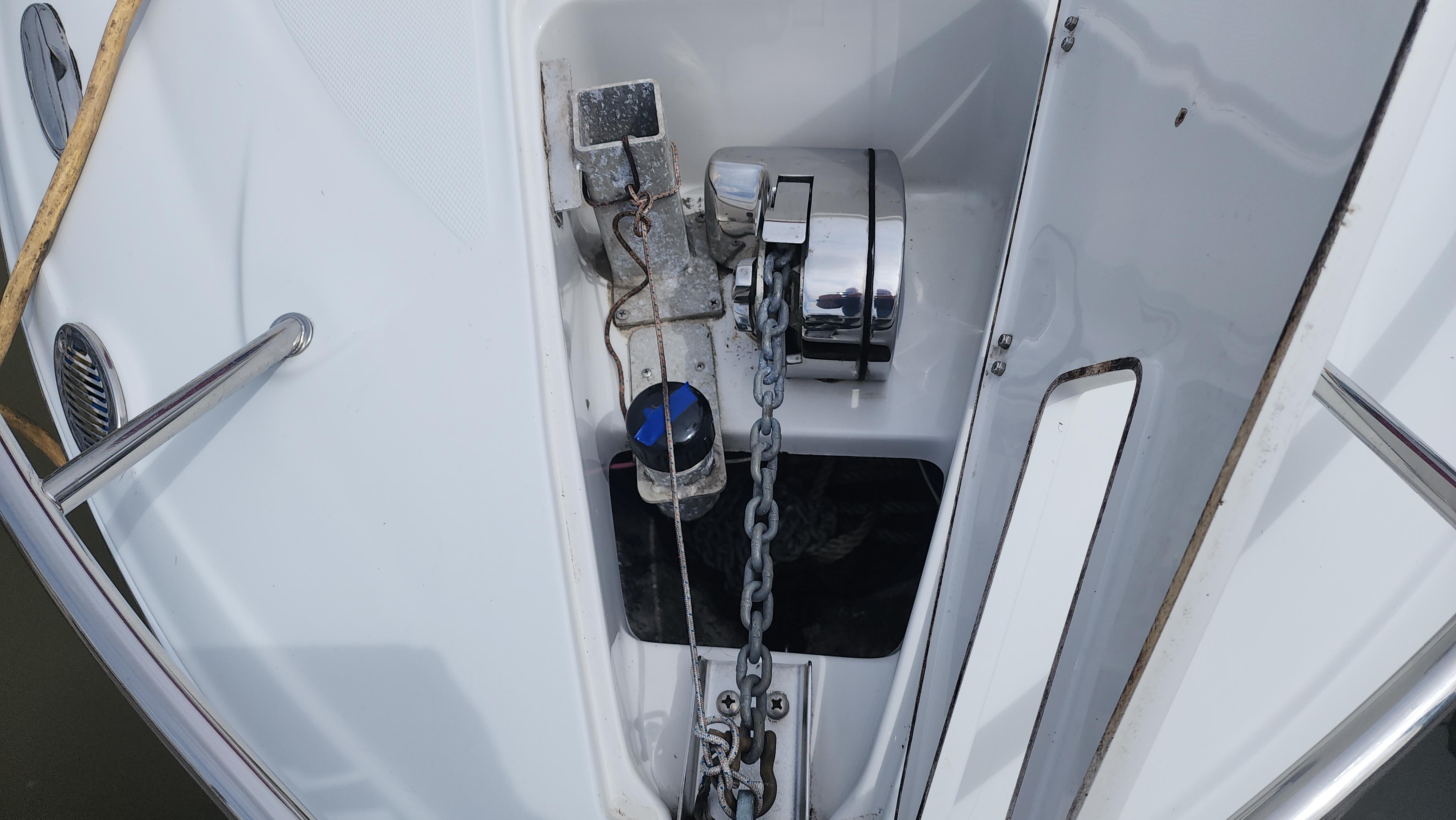 Electric windlass, enclosed head, microwave, ram controlled steering for outboard bracket (no outboard)