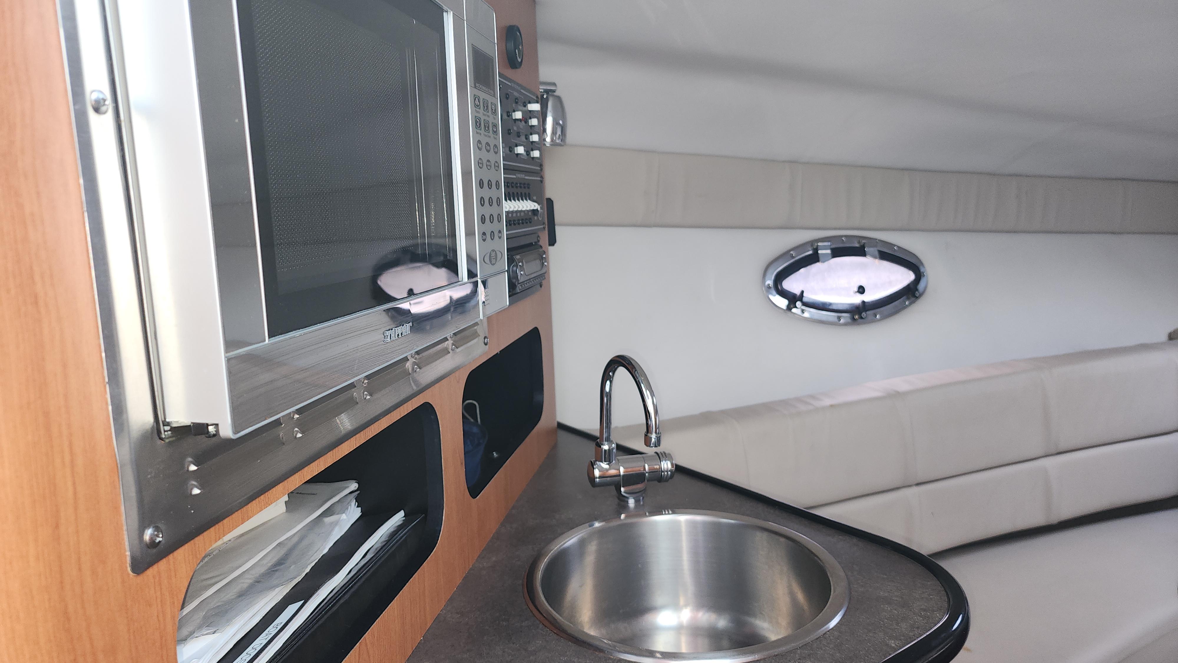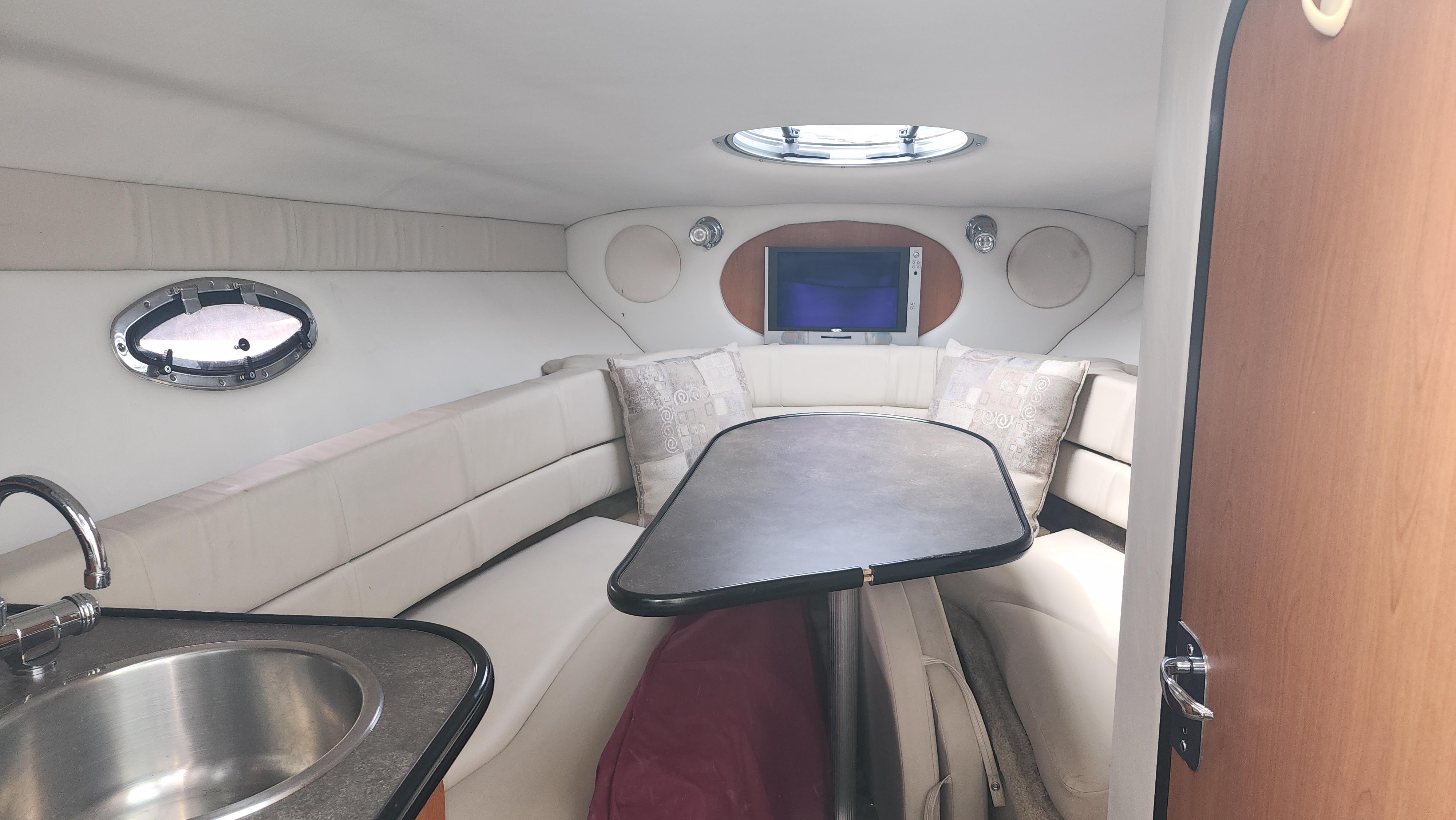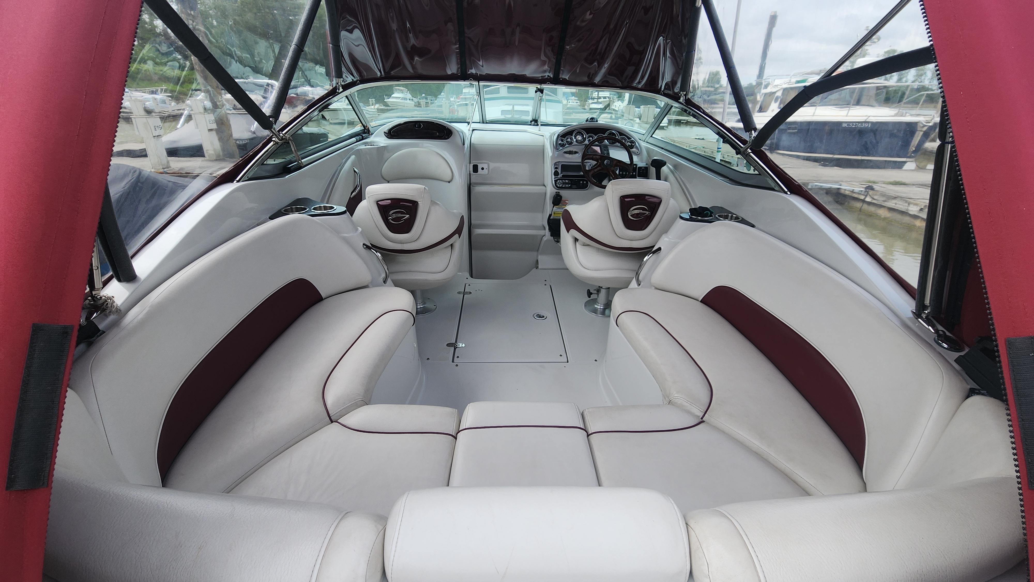 Electric windlass, enclosed head, microwave, ram controlled steering for outboard bracket (no outboard)