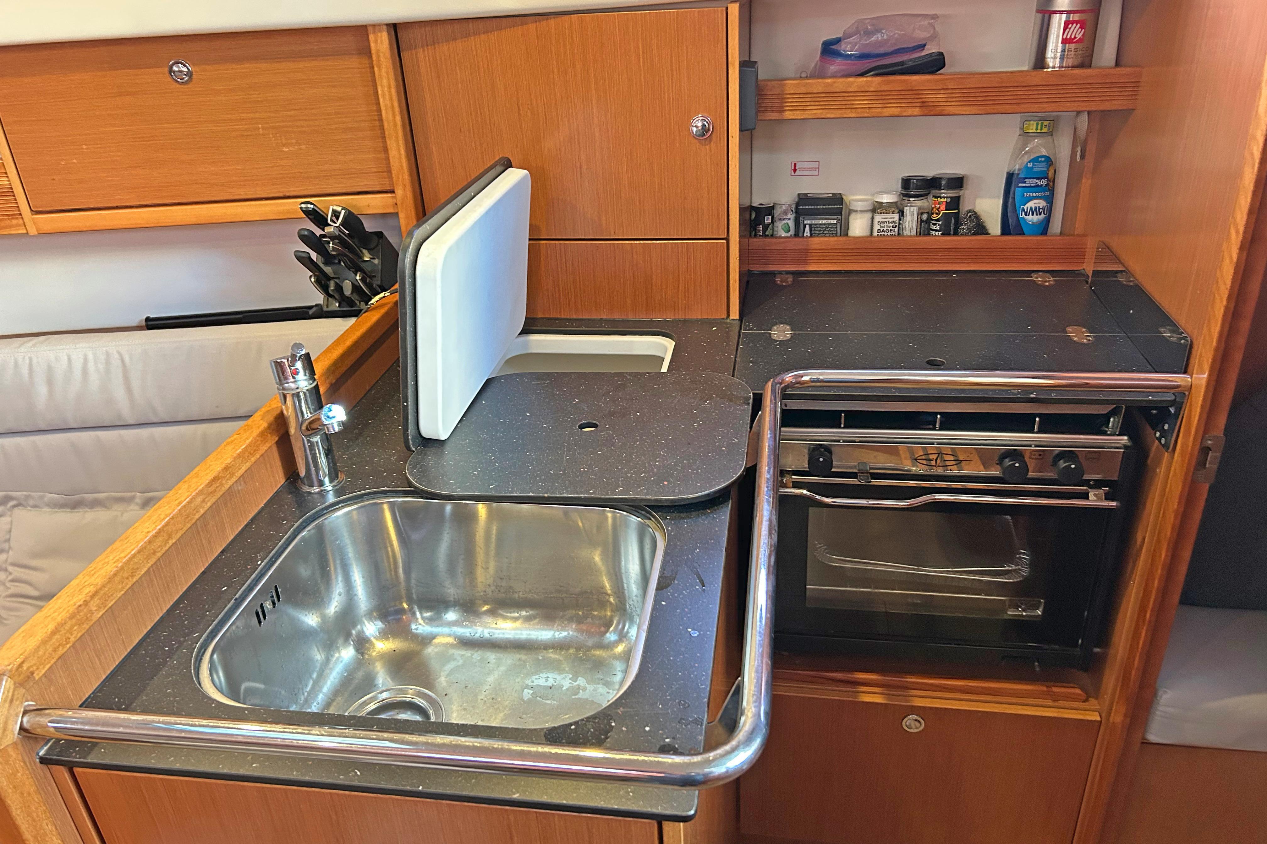 Comfortable and function galley near the companionway stairs. LPG Stove and Oven 2x Stainless steel sinks Pressurized water system with ot and cold water RefrigeratorMECHANICAL