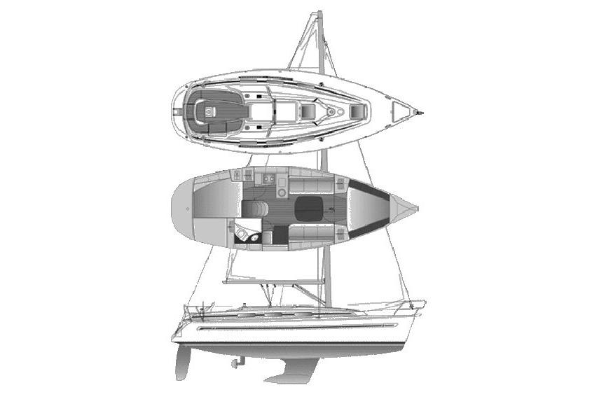 The Bavaria 32 always seems bigger than its 32’ with a comfortable well thought-out interior and large cockpit. The fold down transom provides more relaxation real estate and easy swimming and boarding.