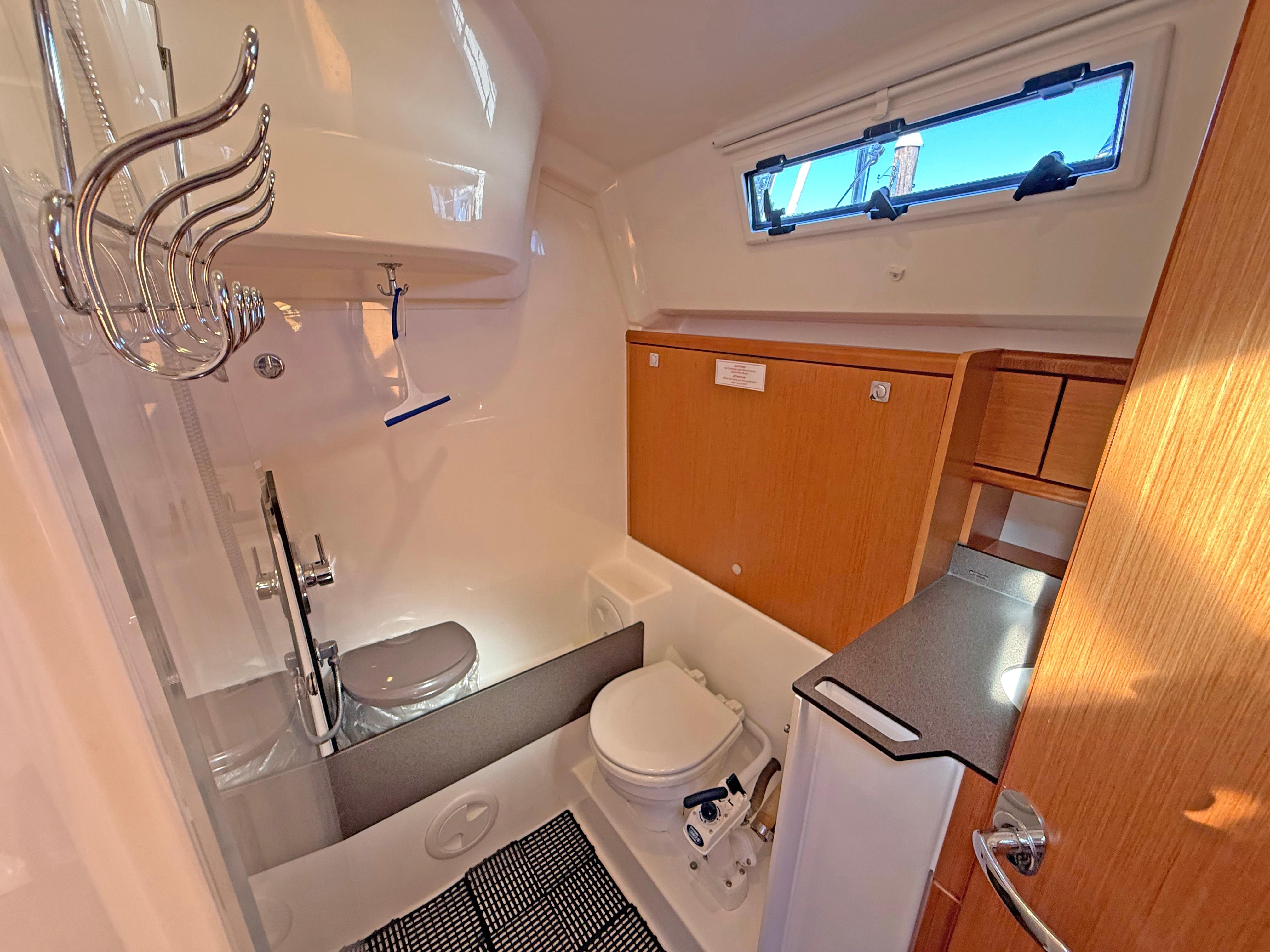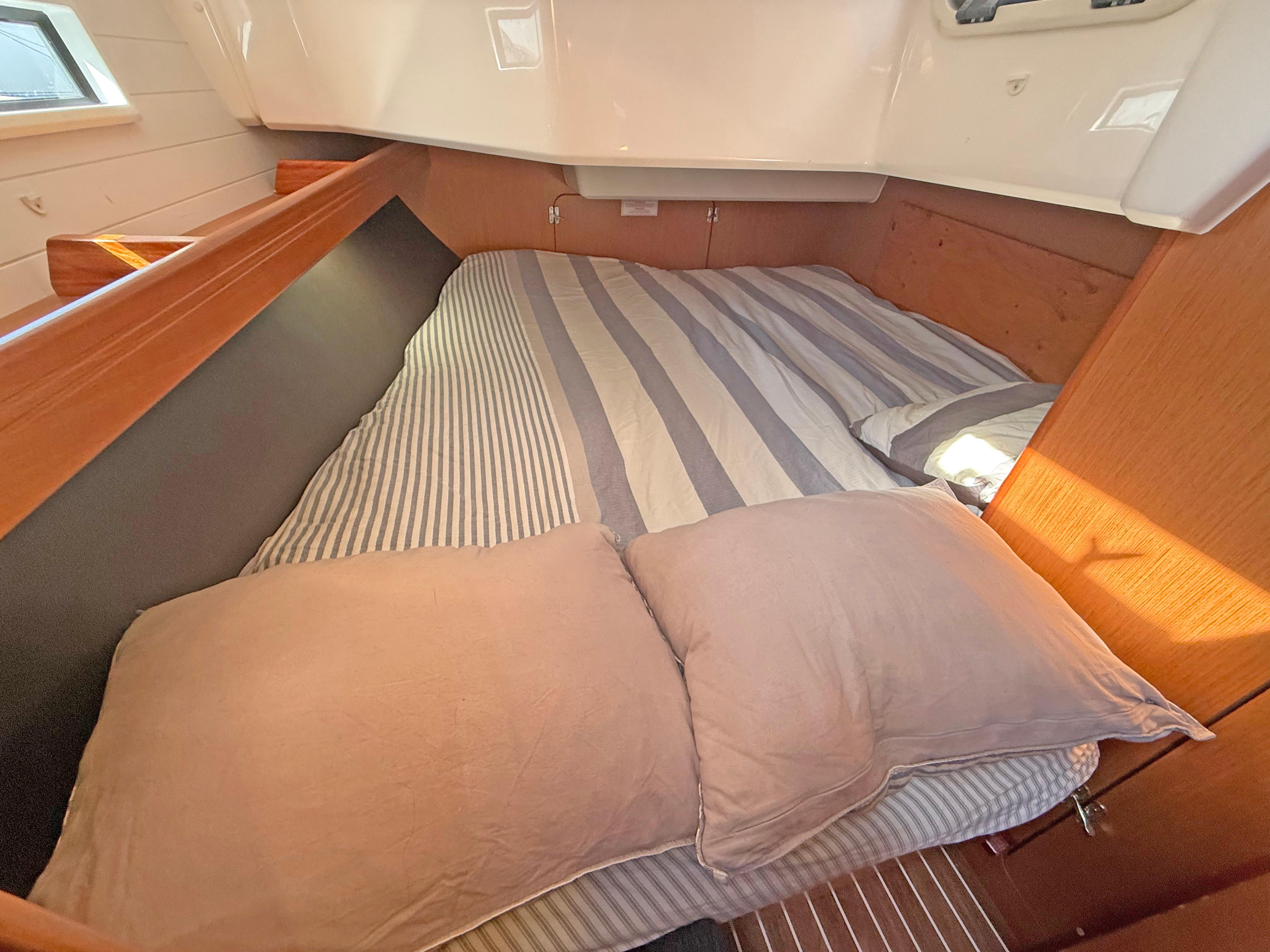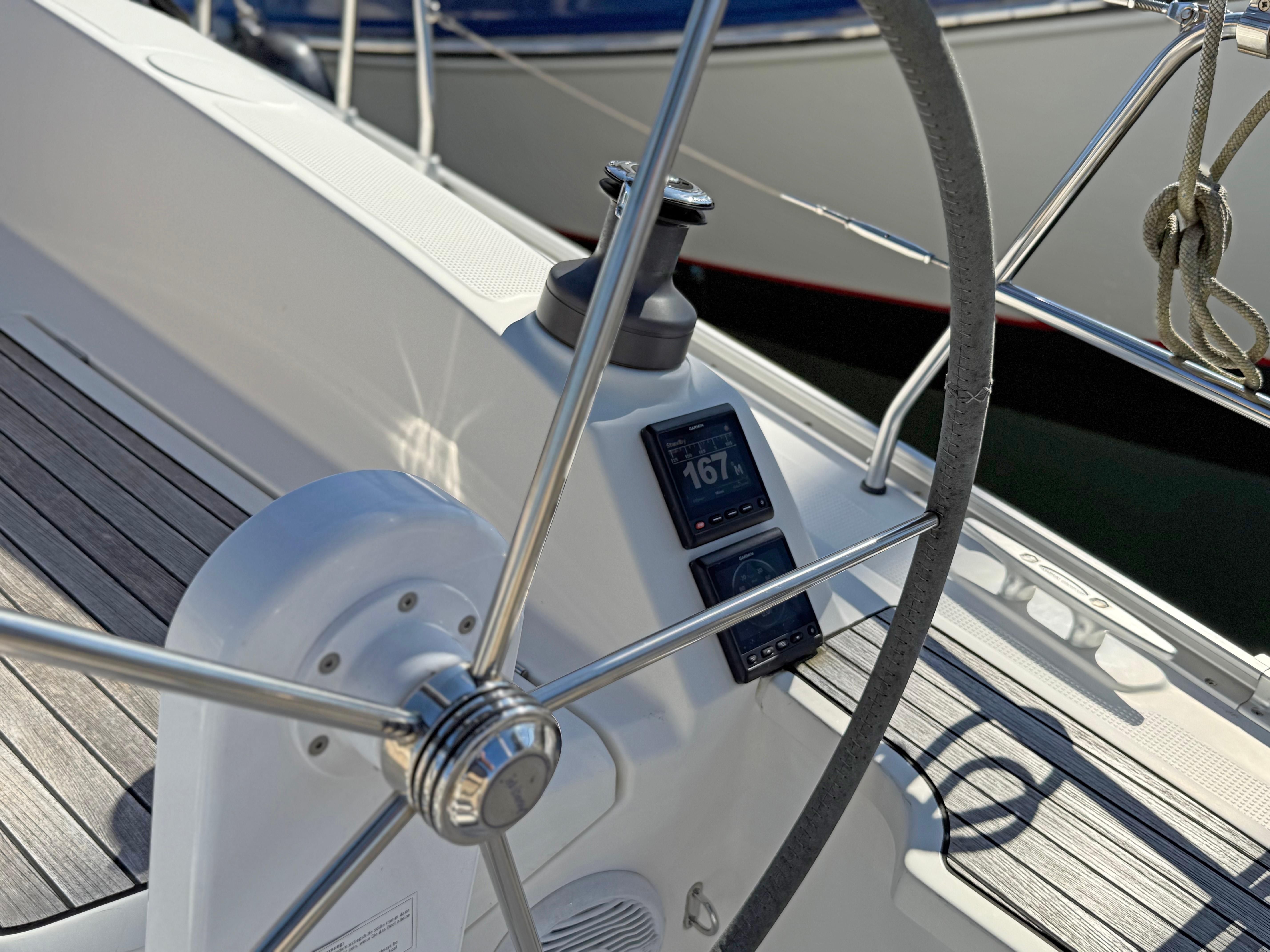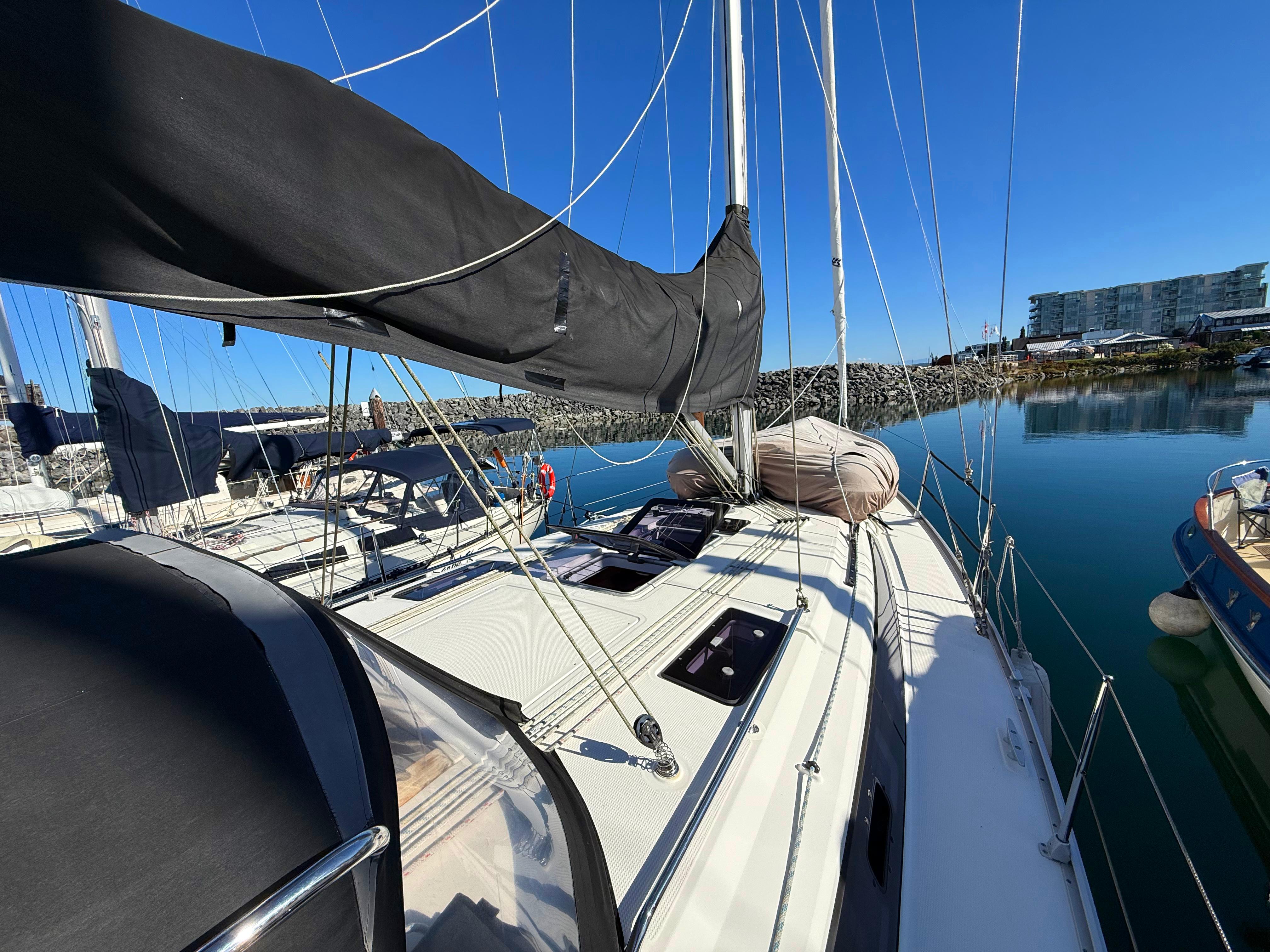 Full-battened mainsail with stack pack for ease of use and efficient performance Jib (new 2022/2023) on Furlex furler and with adjustable jib car leads. Anchor roller with integrated tack point for light air sails Quick electric windlass
