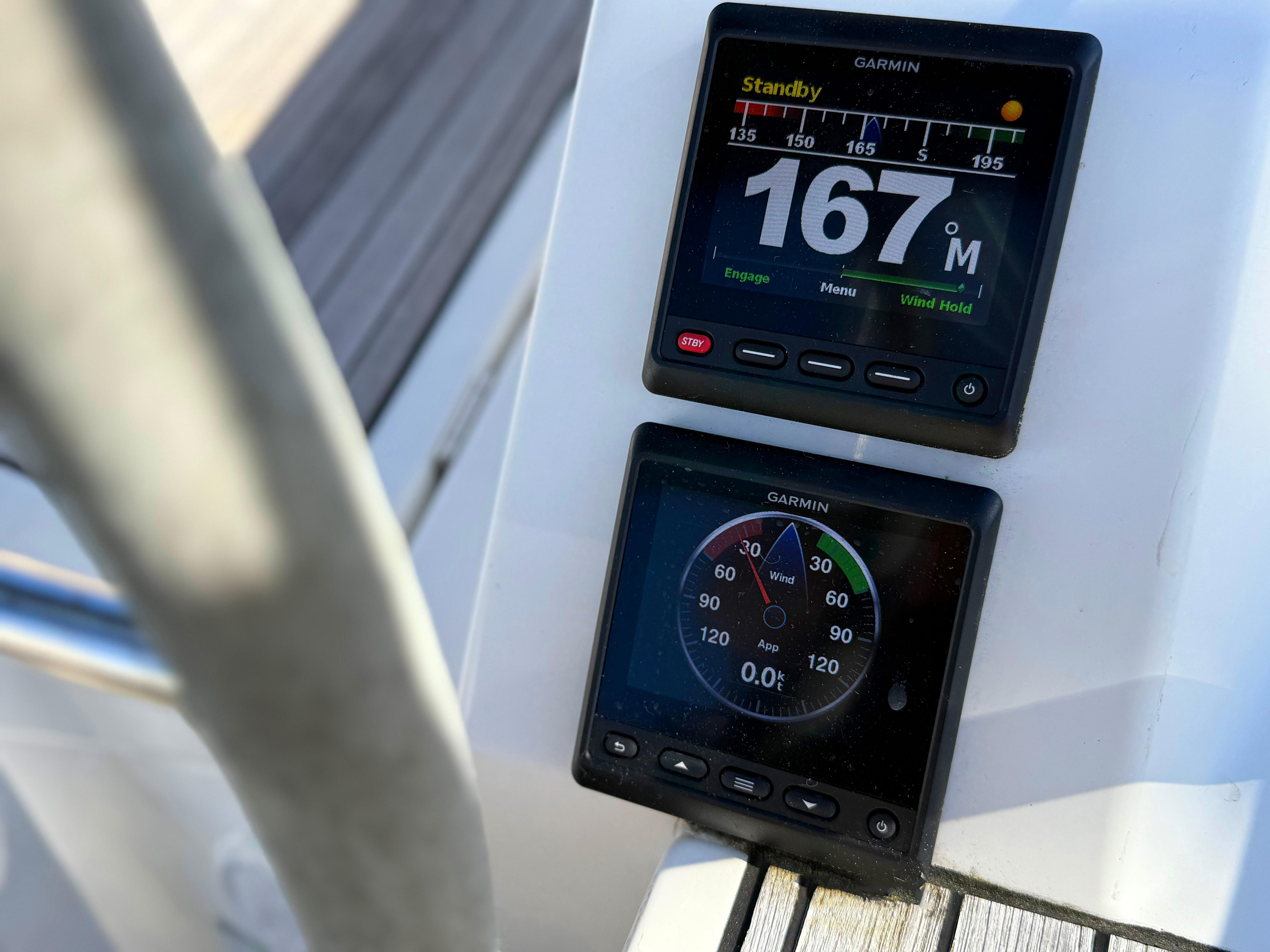 A complete suite of Garmin electronics Garmin GPSMap 820 chartplotter Garmin GMI 20 multifunction instruments x 2 – one per side Garmin GMP12 Autopilot and control panel Garmin GWS10 wind sensor Garmin VHF 300 AIS