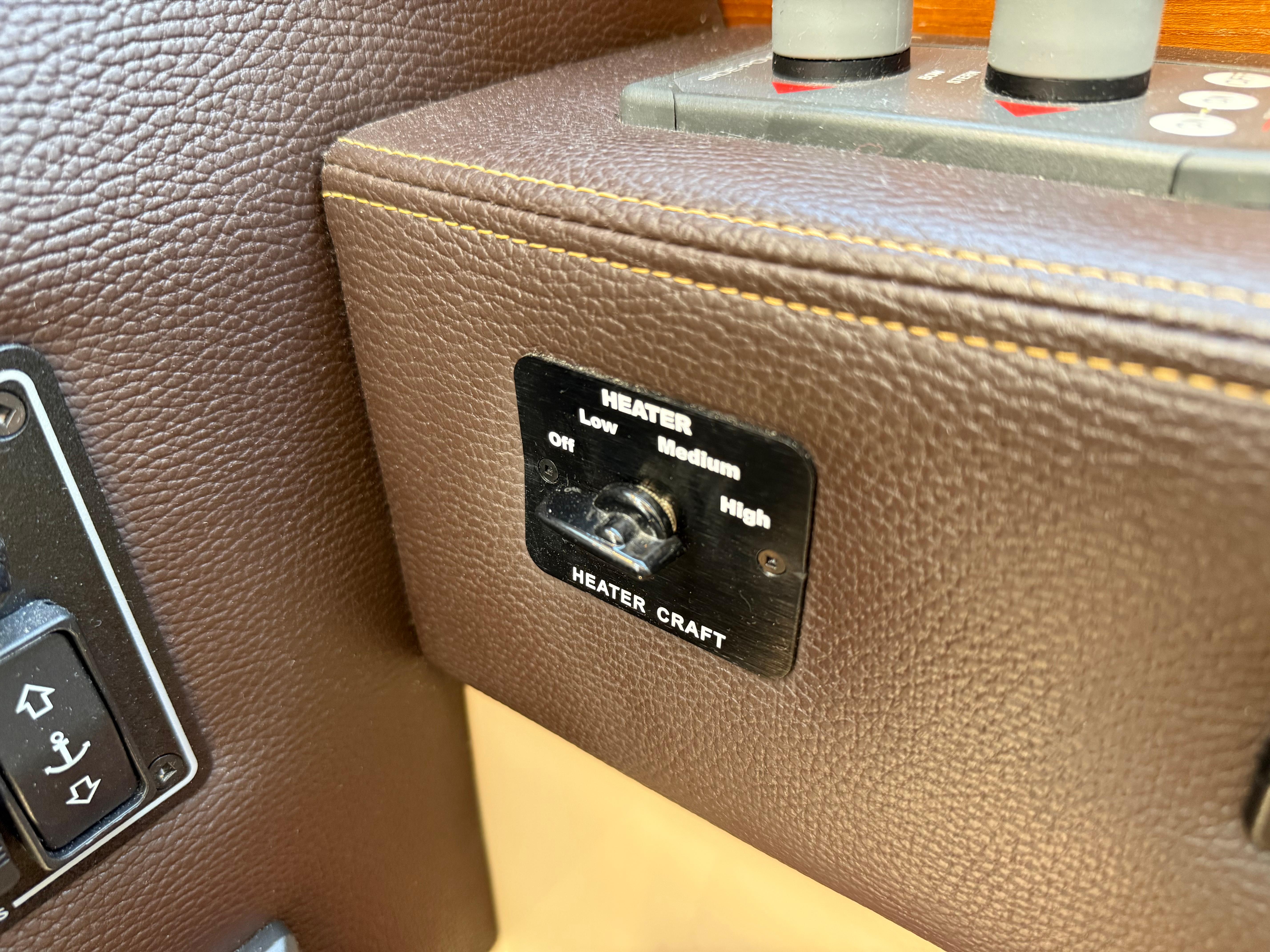 Full Garmin suite of electronics Garmin 7612 xsv Chartplotter/MFD Garmin 7612 Sonar Garmin GMR18XHD Radar Garmin AIS300  Garmin GCS20 Autopilot – integrated with the Garmin Chartplotter Garmin VHF 200 Spotlight with remote Dual trumpet electric horn Weems and Plath Clock and Barometer