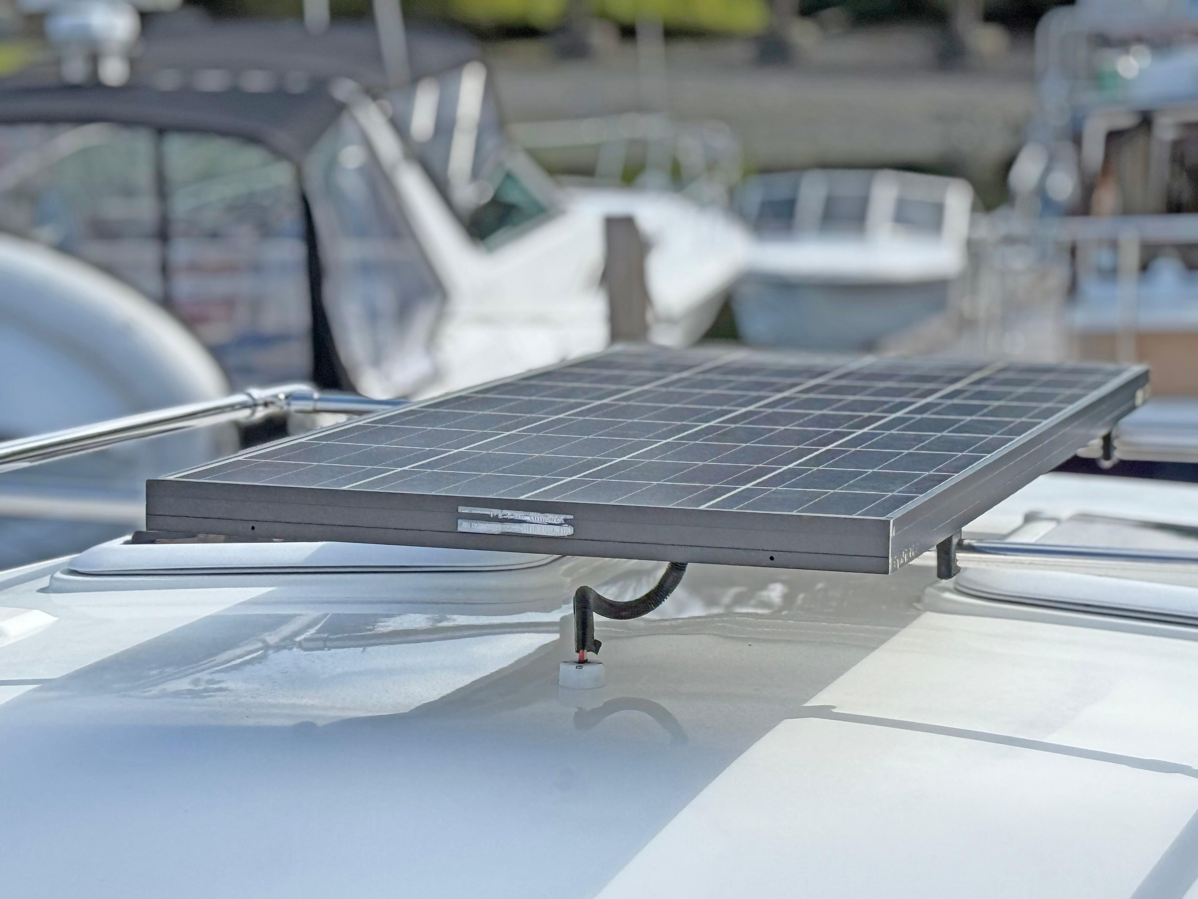 Upgraded AGM house bank – 440 Amp-hrs with positive and negative busbars (2020) Upgraded dedicated starting battery (2024) Windlass/Thruster battery replaced (2020) Upgraded bonding system Inverter: 2000W Solar: 145W with upgraded Victron MPPT Victron Battery Monitor EFOY Fuel Cell – Comfort 210 (2020) 12 Volt and 120V power plugs throughout the boat Galvanic Isolator Independent 120V circuit with two receptacles to power heater and fans during the off-season (separate from the standard AC system). Espar diesel heater to heat water when the engine is not running Upgraded plumbing includes easier winterization.