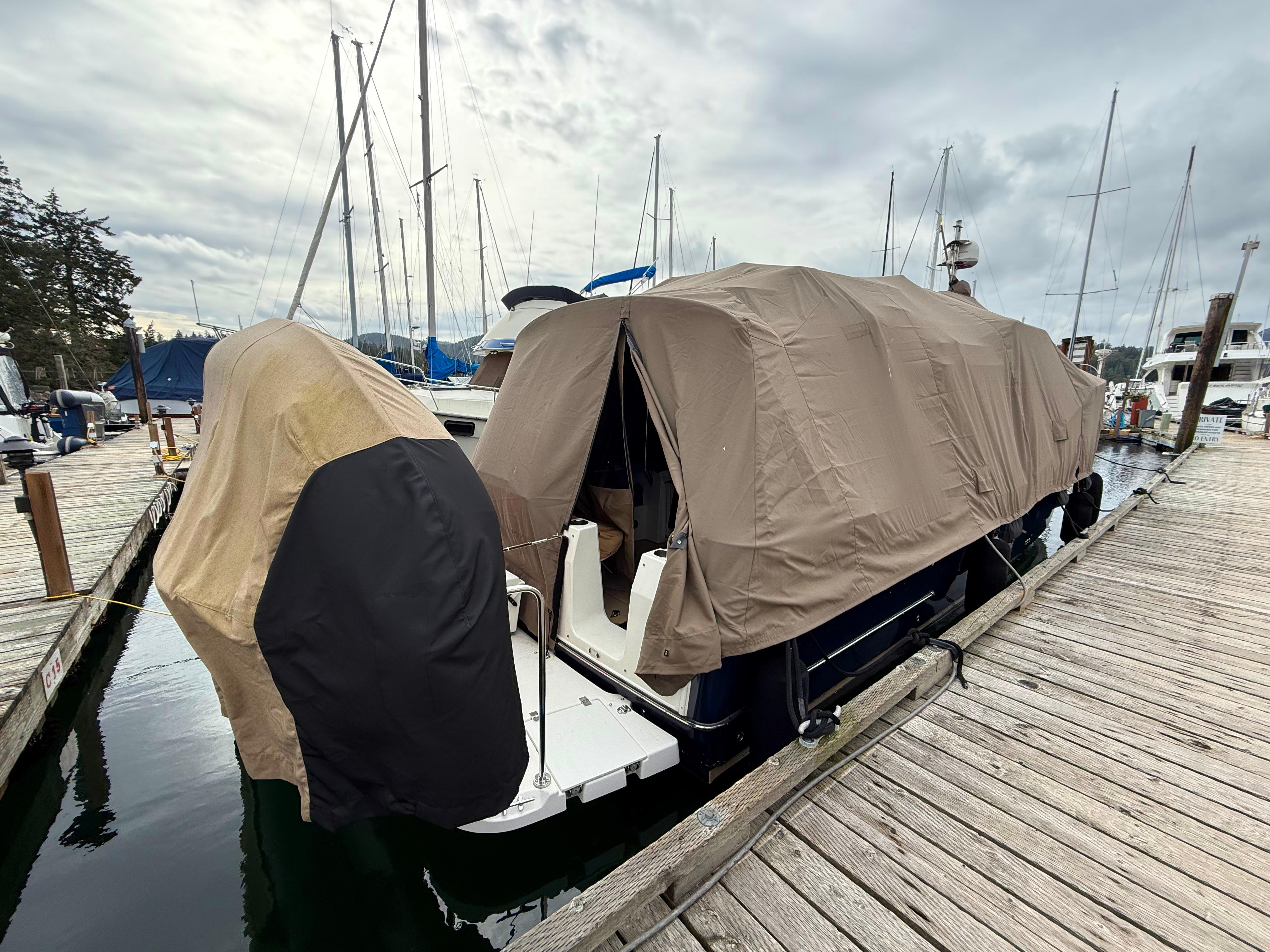 Upgraded Highfield 290 Classic RHIB with two seats and custom cover Yamaha 2.5 4 stroke with custom cover 2x Scotty Downrigger plugs and pads Custom full boat cover Covers for outside seating Dickinson BBQ and mounting system Approximately 400’ of stern-tie line with about 200’ of retriever line on custom reel Upgraded security equipment throughout: bars for the ceiling hatches, sliding windows, dingy motor, and engine bay and cockpit lazarettes. Underwater lights