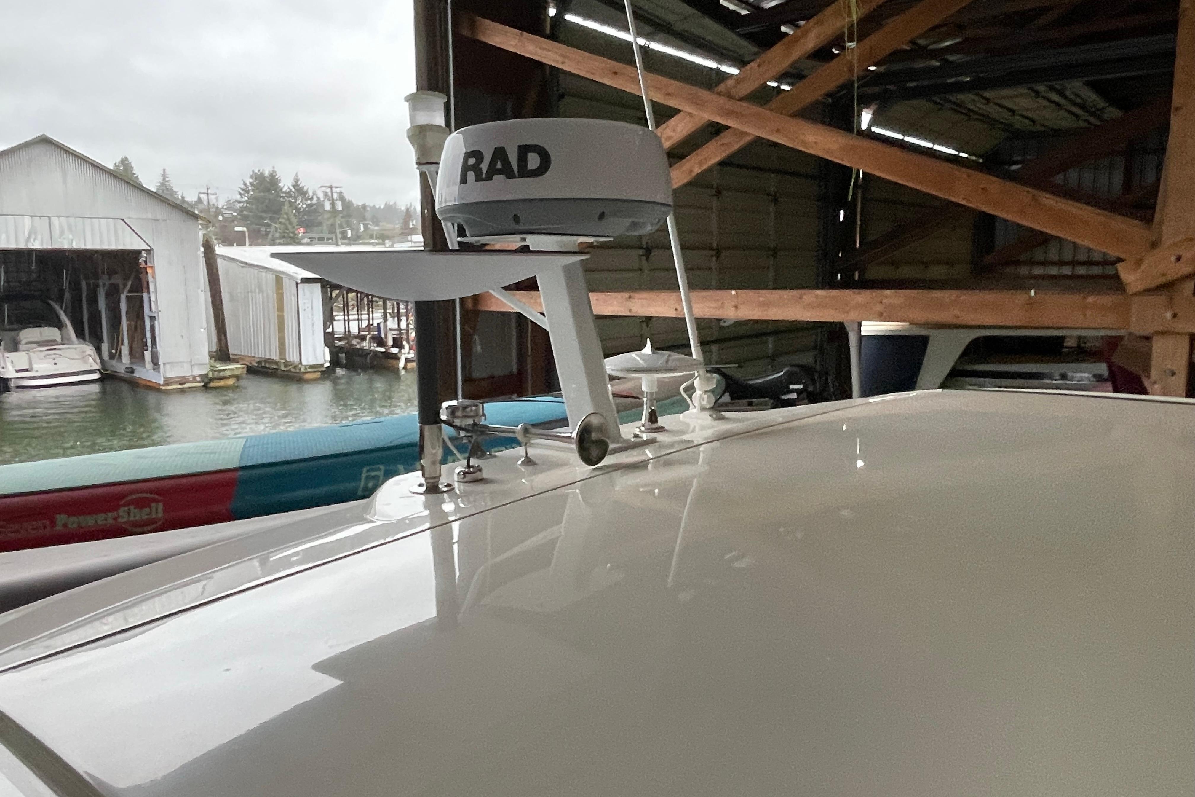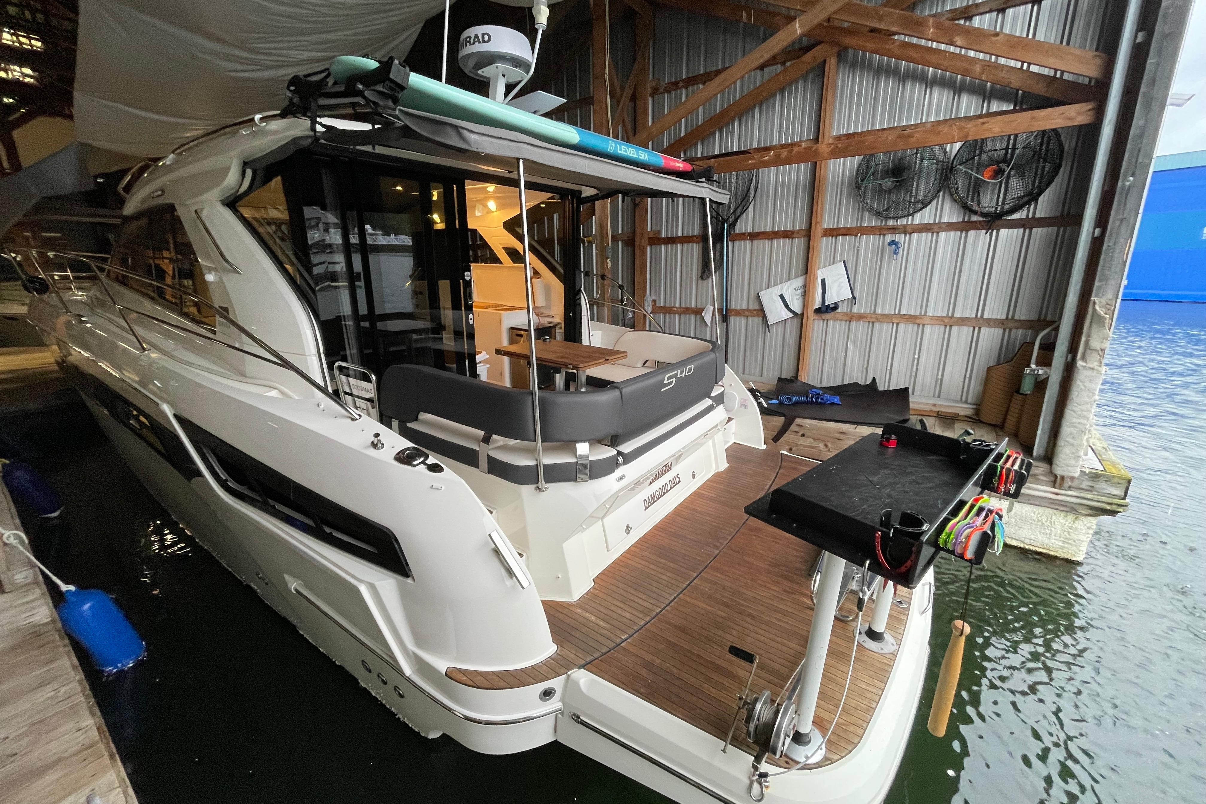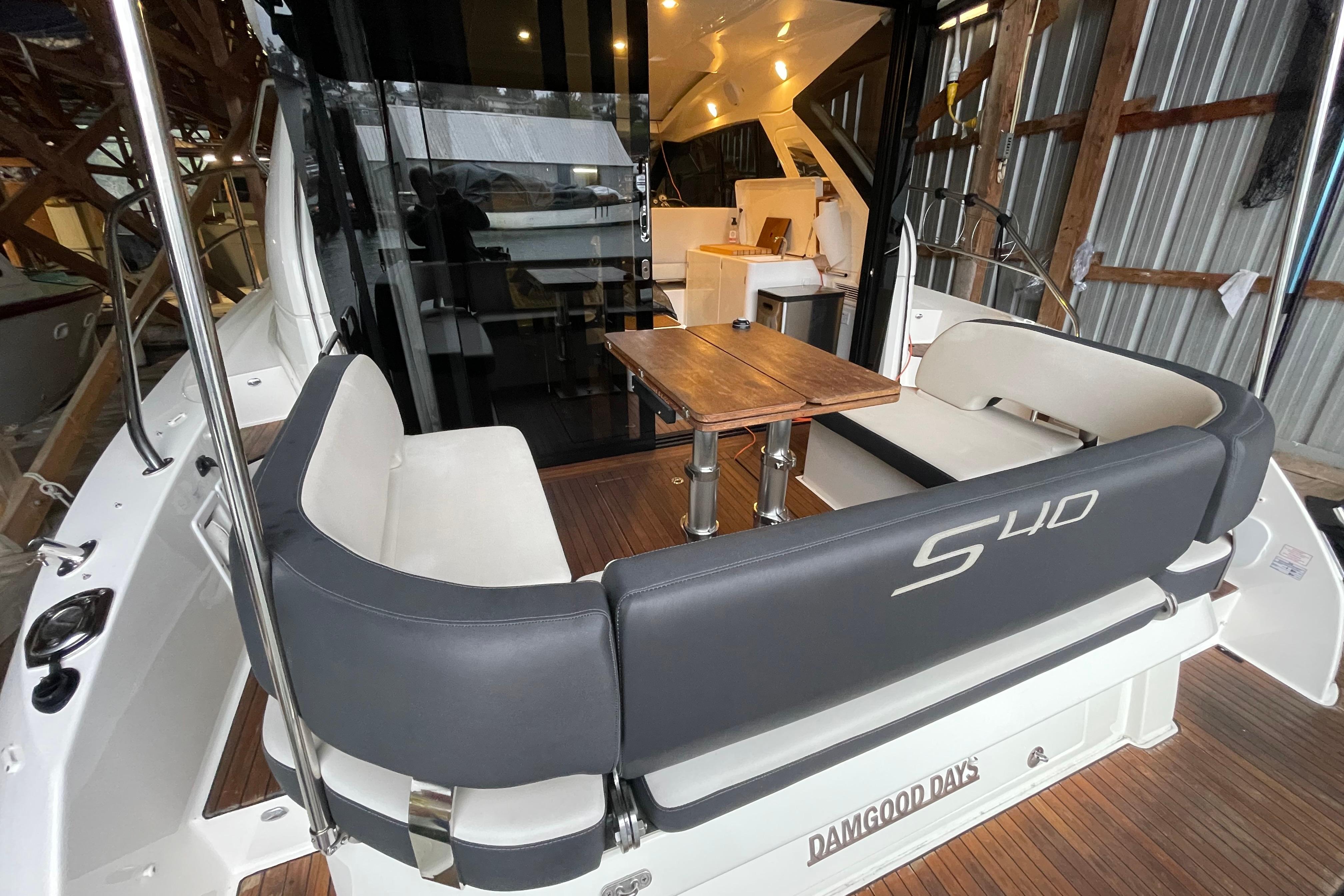 "Damgood Days" is in pristine condition and is well appointed. Boat house kept from new, this vessel exudes pride of ownership. The S40 is a perfect layout for families who enjoy a combination of outdoor deck space for fishing and sunbathing and then fully covered indoor space during inclement weather.
