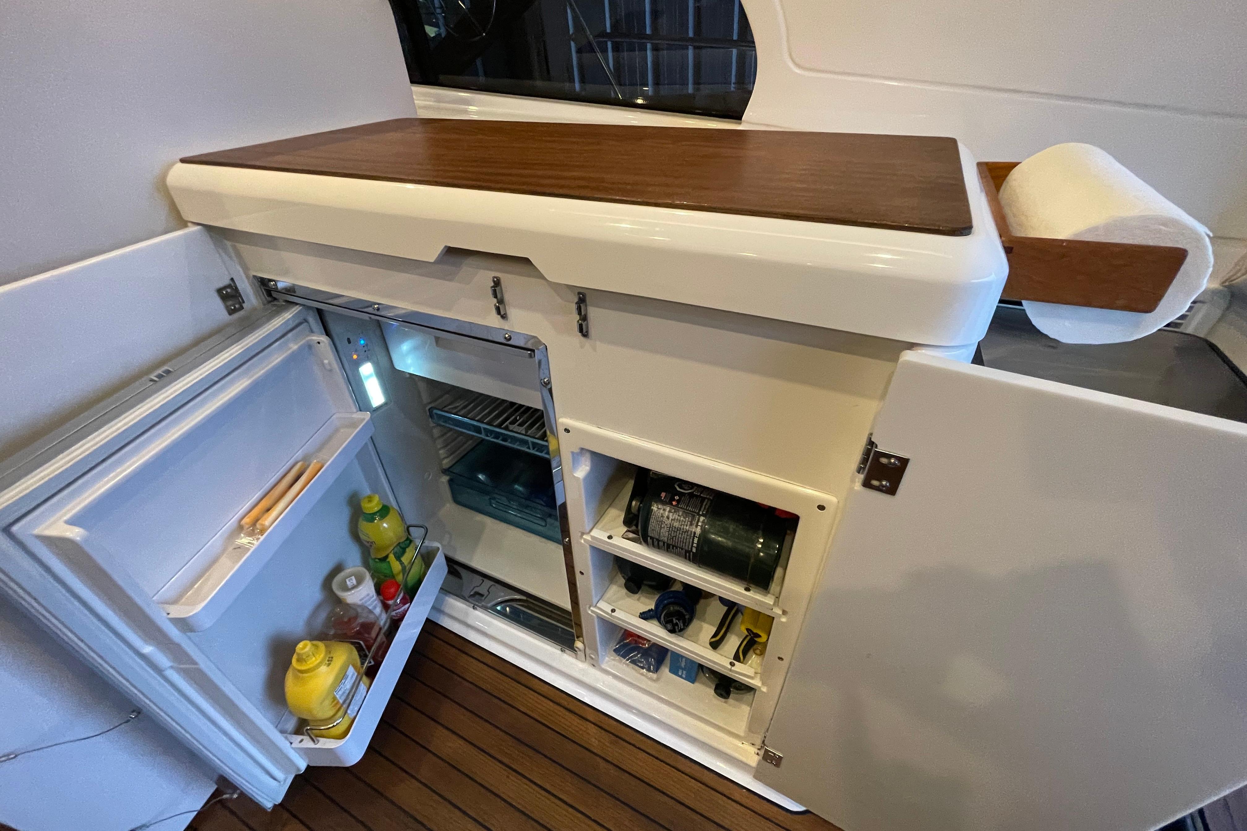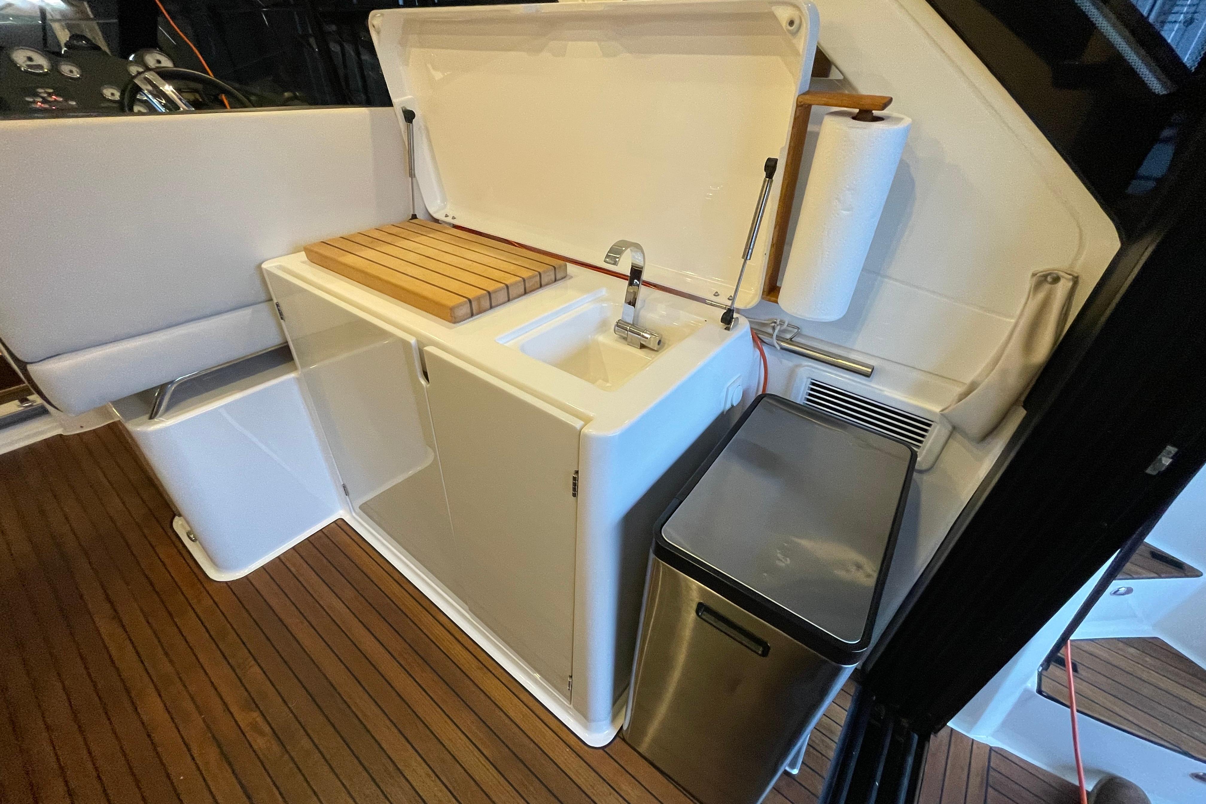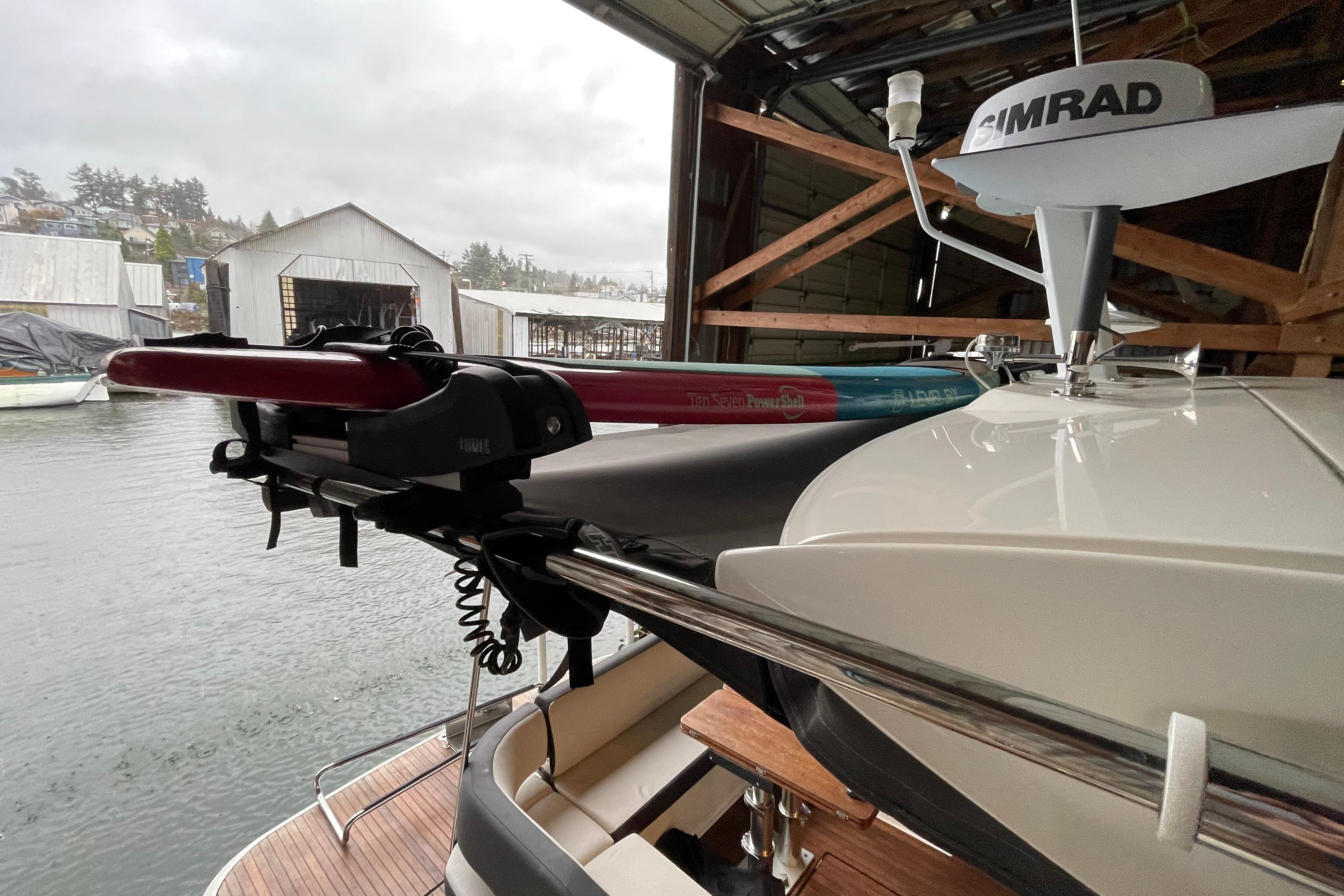 "Damgood Days" is in pristine condition and is well appointed. Boat house kept from new, this vessel exudes pride of ownership. The S40 is a perfect layout for families who enjoy a combination of outdoor deck space for fishing and sunbathing and then fully covered indoor space during inclement weather.