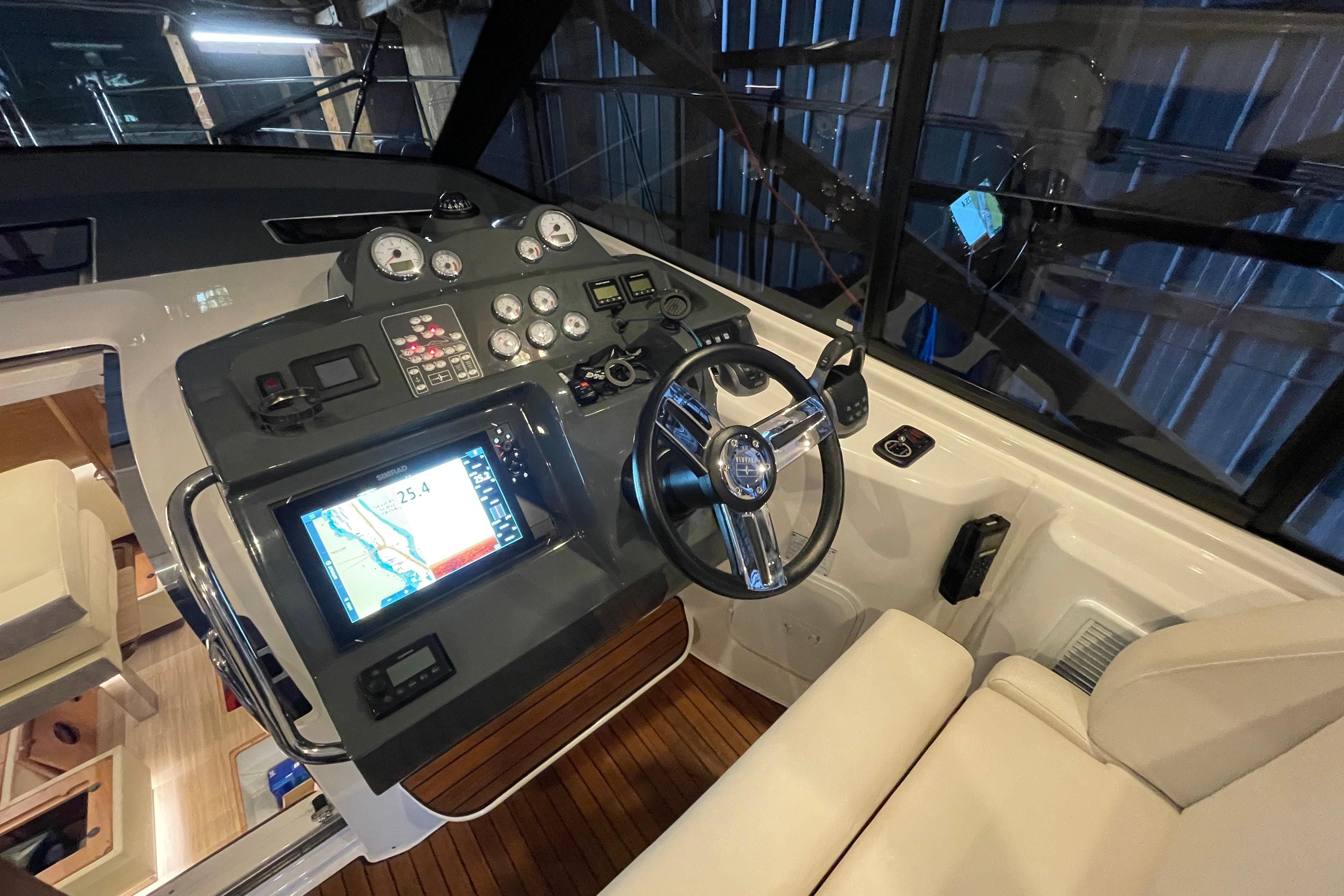 A few key features of the S40 Coupe are: two cabins one head and galley below, double helm seats and crew seat with lounger, large electric opening sunroof, glass doors opening to aft deck, hydraulic drop down transom, Twin Volvo Penta 380hp engines with only 550hours, joystick docking, full electronics suite and much more