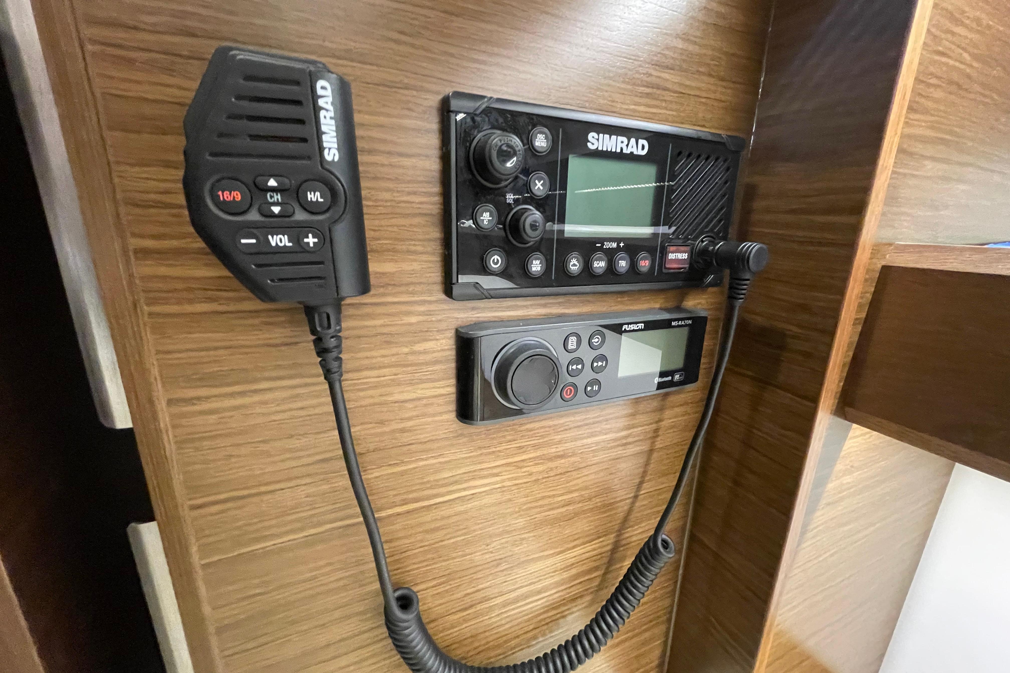 - VHF: Simrad RS48 with AIS mounted in the salon