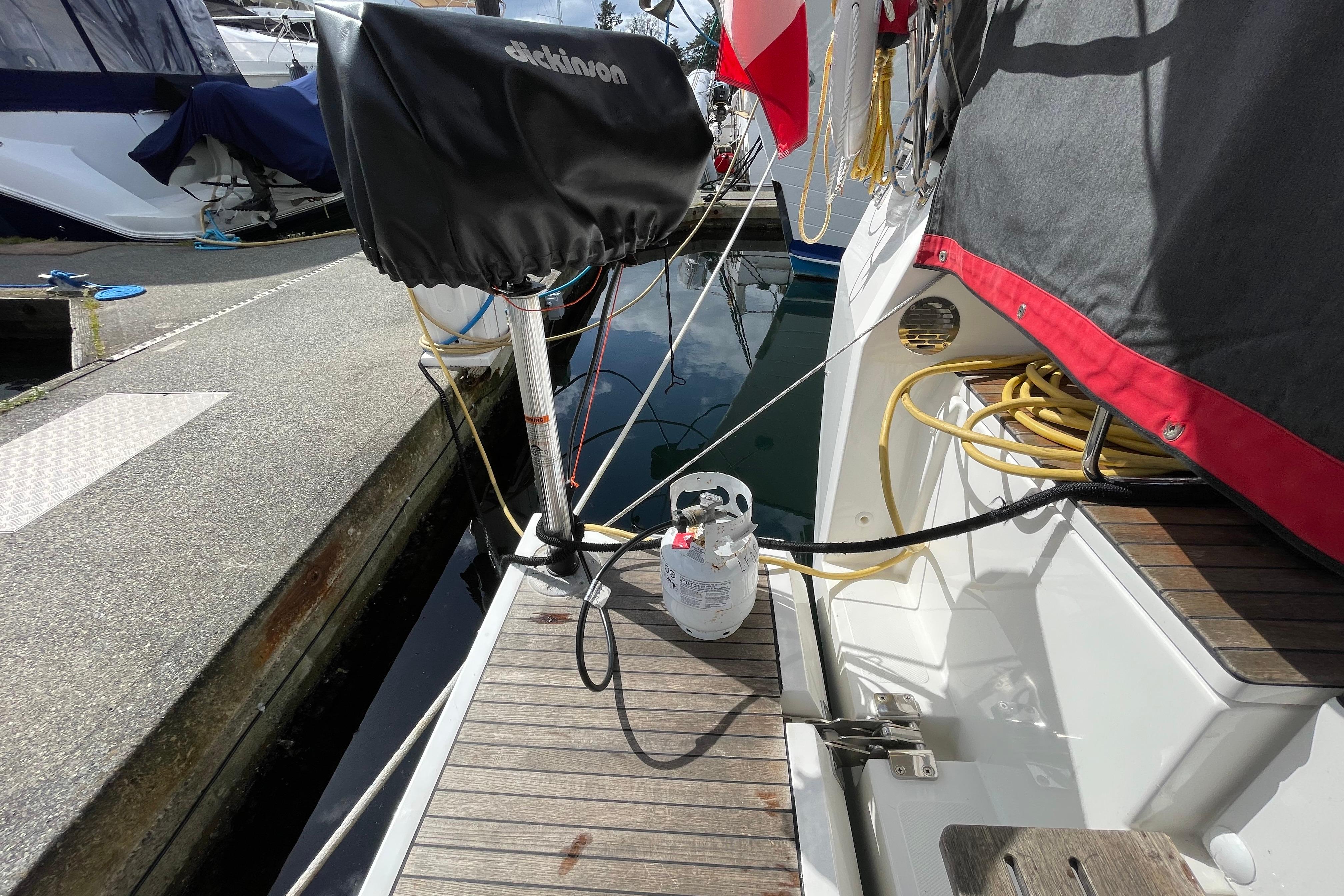 - Dickenson BBQ mounted on custom pedestal on the swim platform