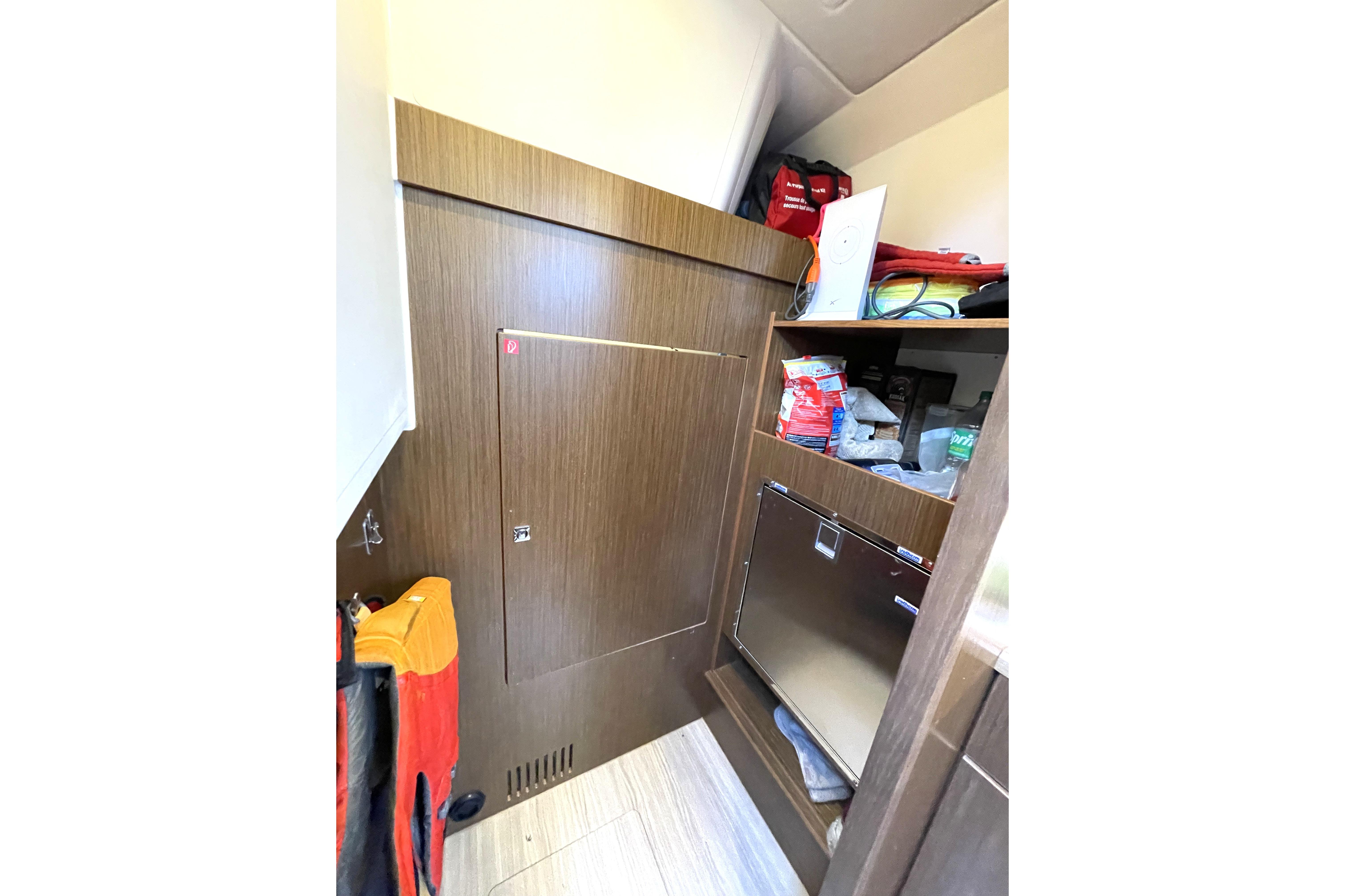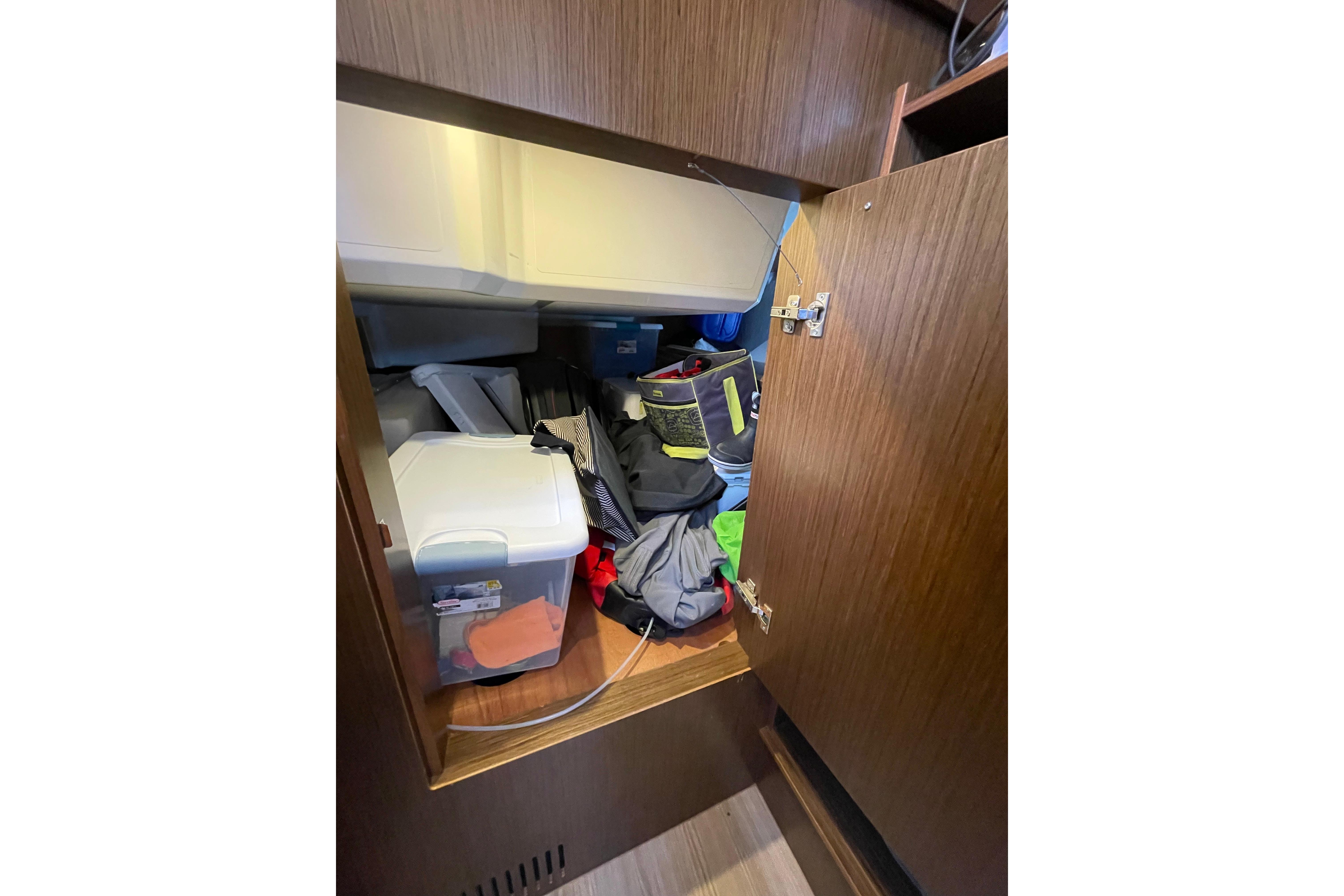 - Hanging lockers outboard of settees and storage under settees