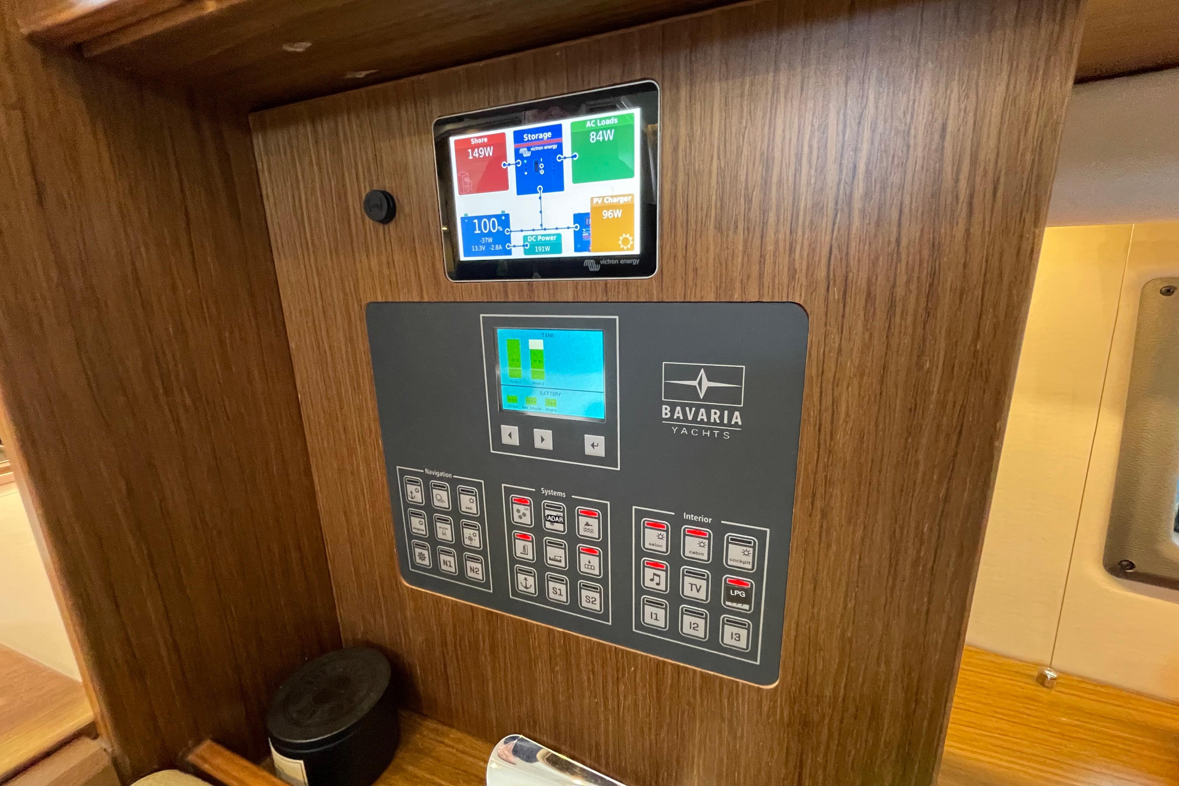 - Upgraded Fusion entertainment system at chart table with remote control in the cockpit