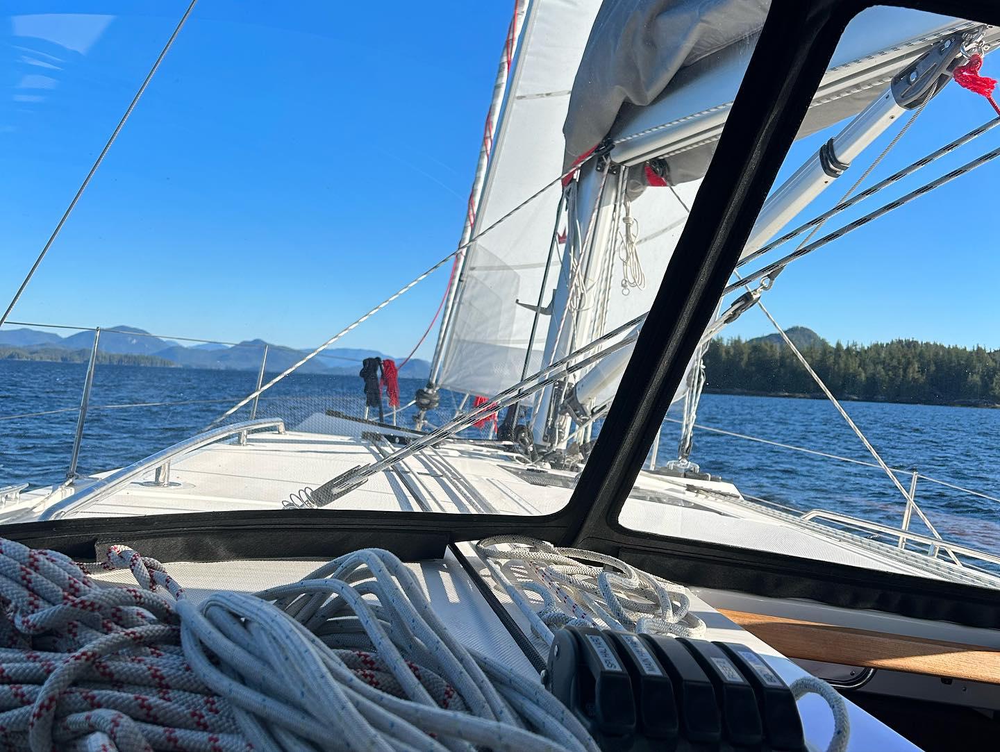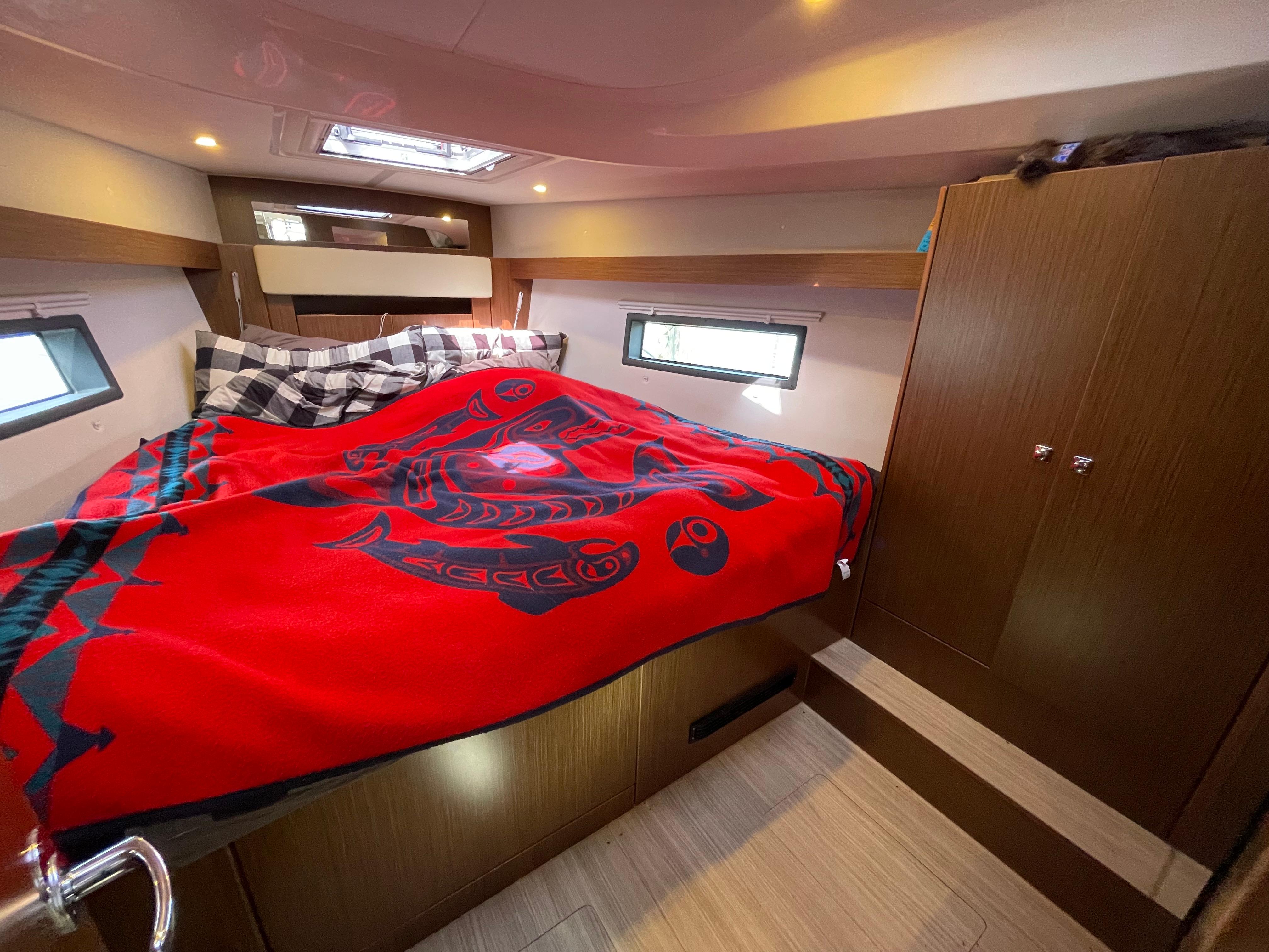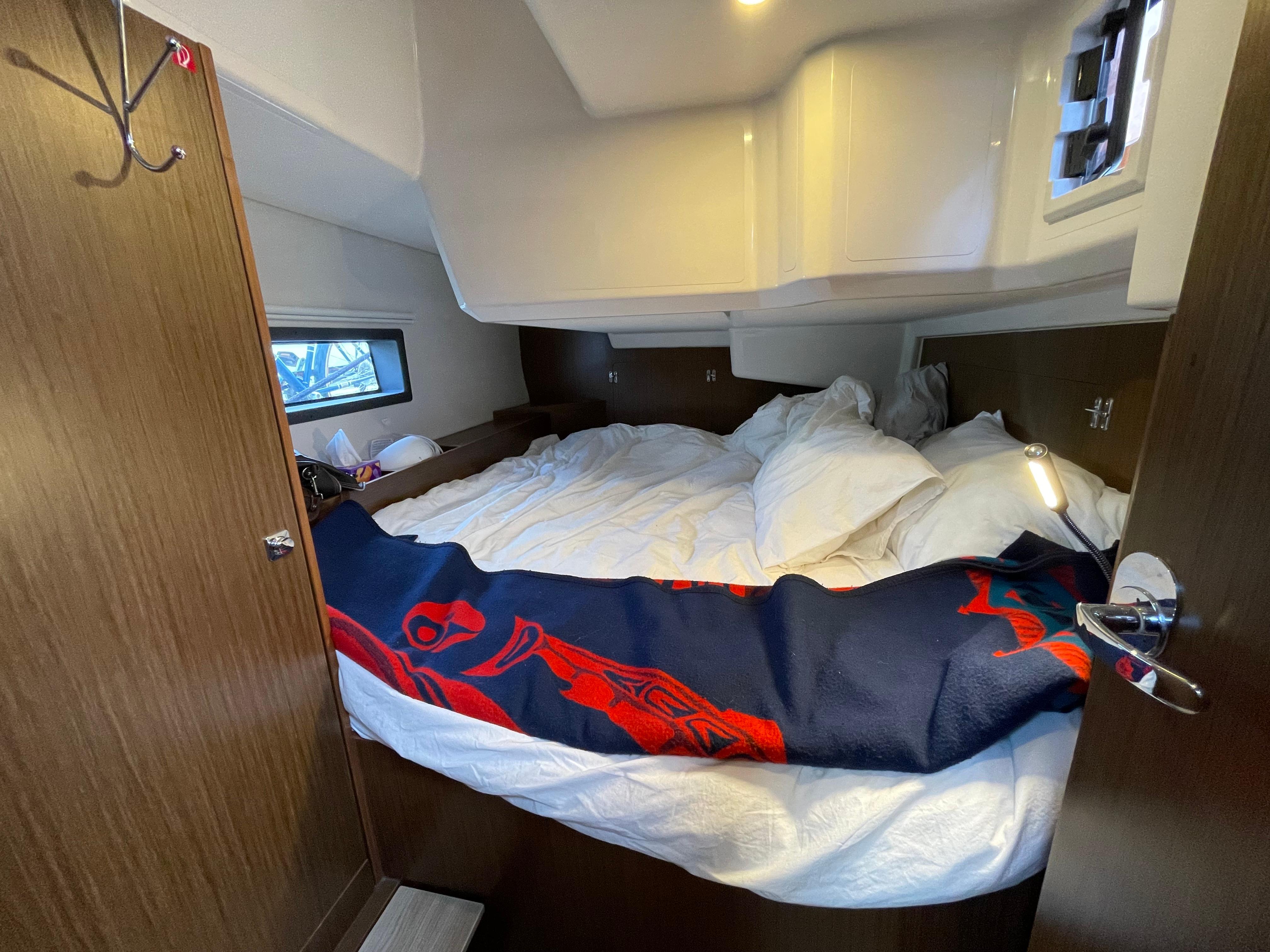 The sail plan is perfect for the PNW. The full battened main sail in a lazy bag gives the vessel the additional power and sail area required. The self tacking jib helps for short handed sailing and the code zero which is controlled from the cockpit allows for fun and easy sailing off the wind.