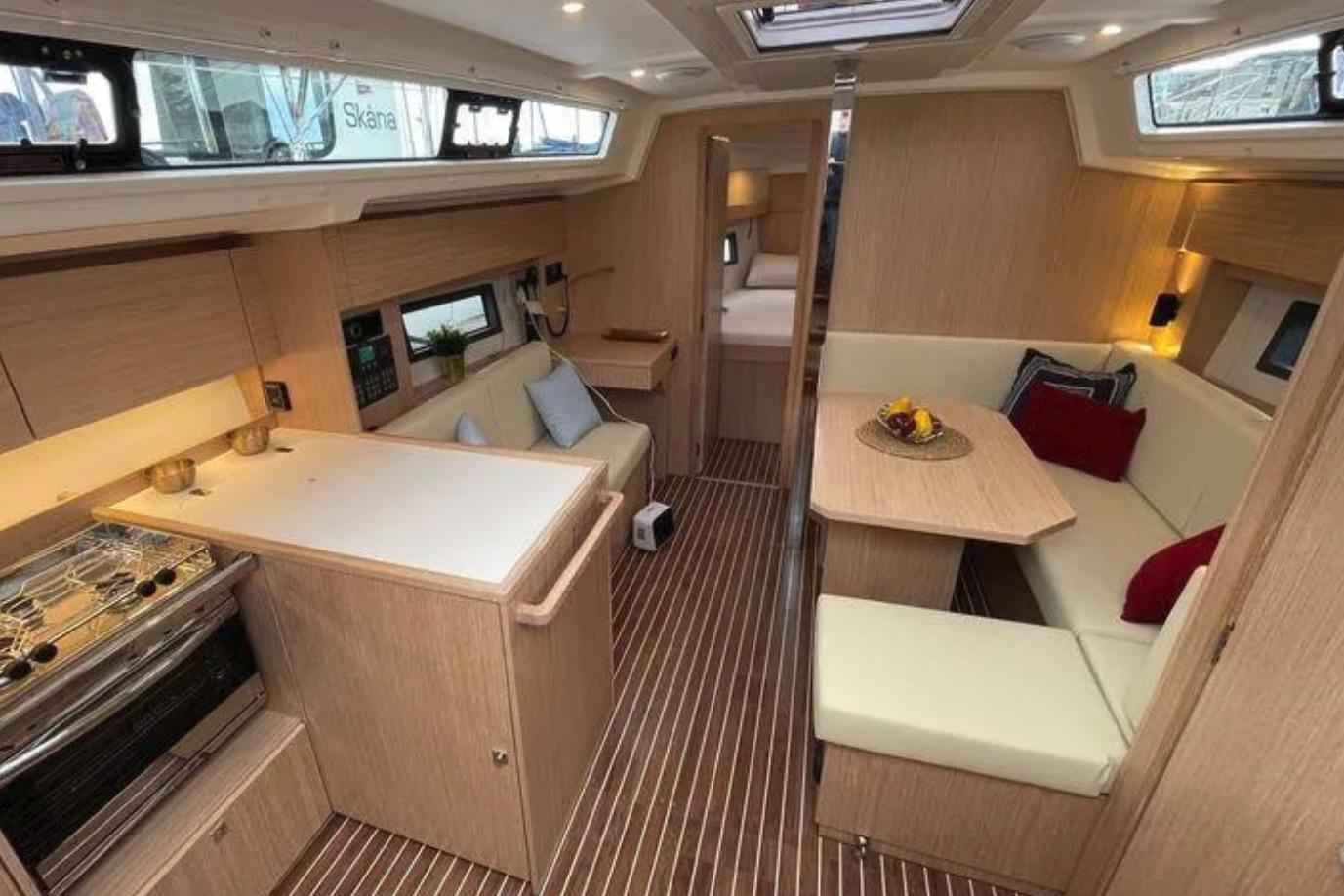 Three cabins Bowthruster Upgraded batteries Marine stereo Premium electronics package including autopilot and AIS transmitter/receiver Upgraded engine with folding propeller Upgraded sails – in-mast with laminated sails with vertical batten mainsail. Bowsprit suitable for a code zero Rigging for a code zero (but not the sail itself) Upgraded winches Upgraded interior Inverter Diesel heating Additional water capacity Electric headThe Bavaria C 38 is a roomy and quick 38 footer built the way Germans are known for building. Modern design with fuller bow section and board stern she is much bigger than than most 38 footers. Yet she sails extremely well on all points of sail. Single rudder for better performance and handling . Large drop down swim platform.