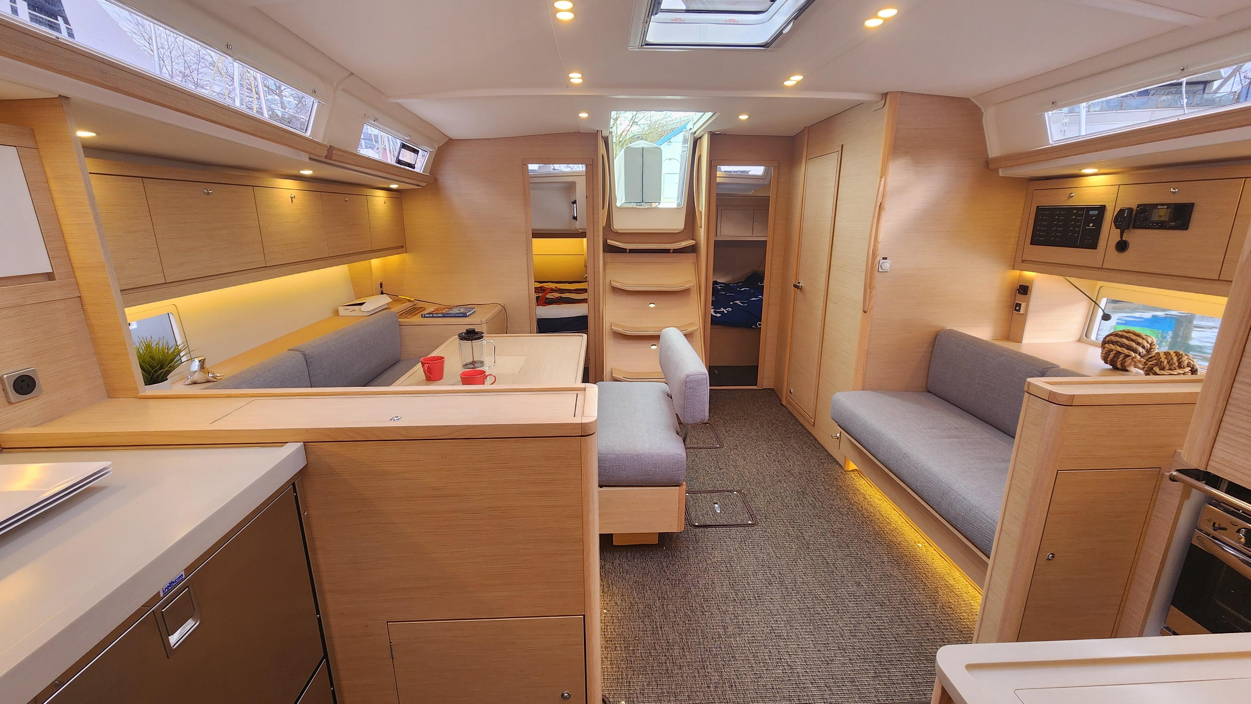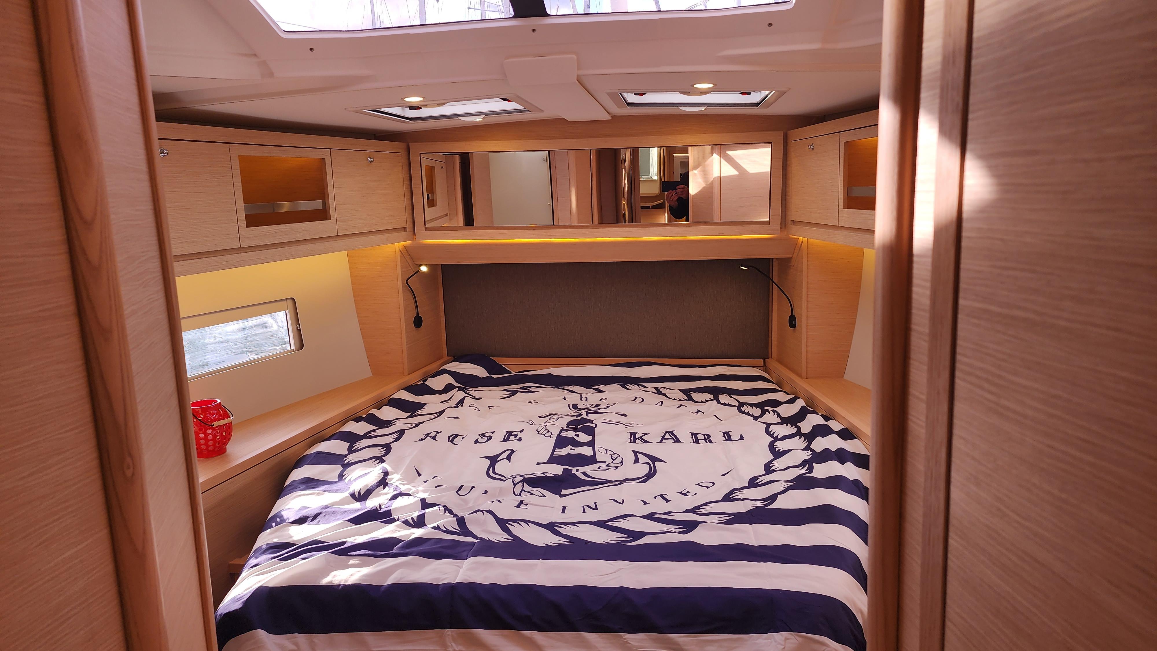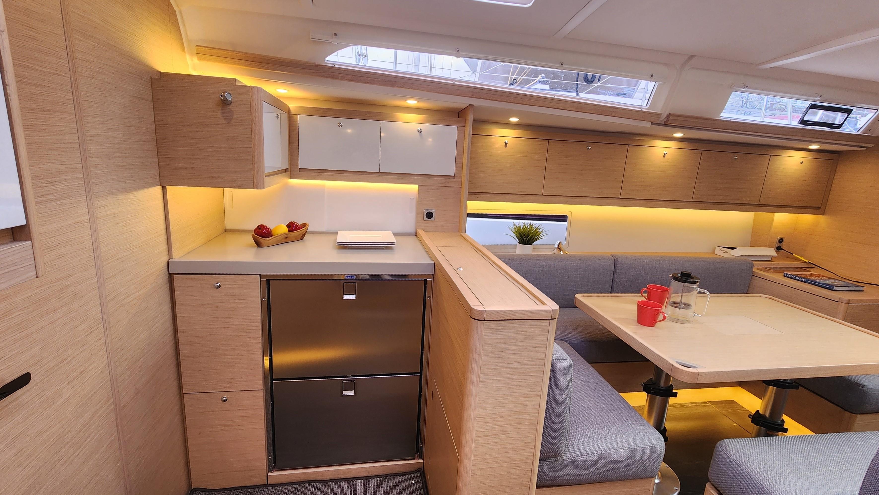 Come see why the Dufour 470 is an award winning boat. From her spacious layout to she great looks she is also a great sailing boat that is a breeze to sail. This one is very well equipped. With her galley forward under the overhead windows you get an open and bright interior. With the Felci design you get great sailing