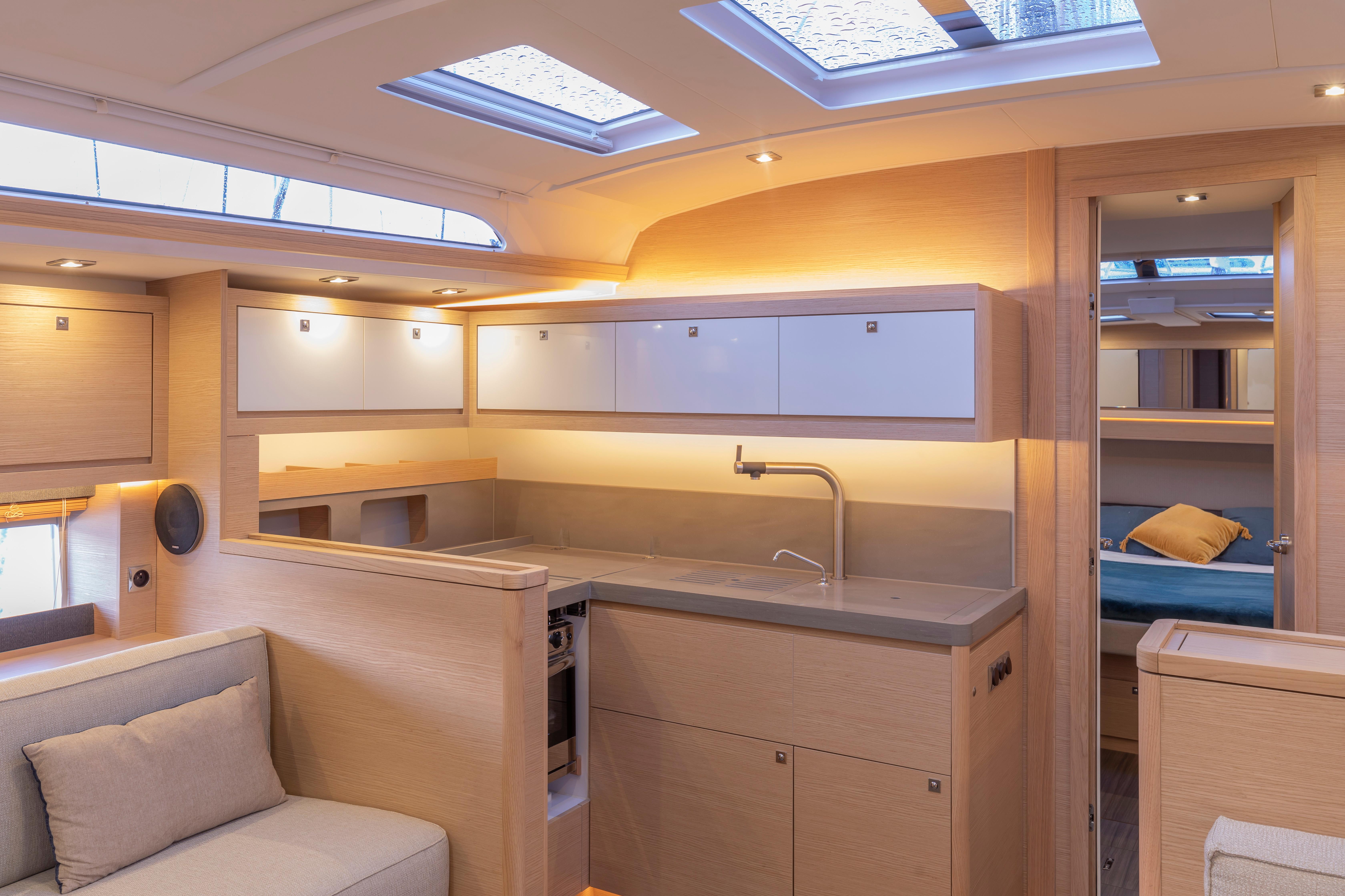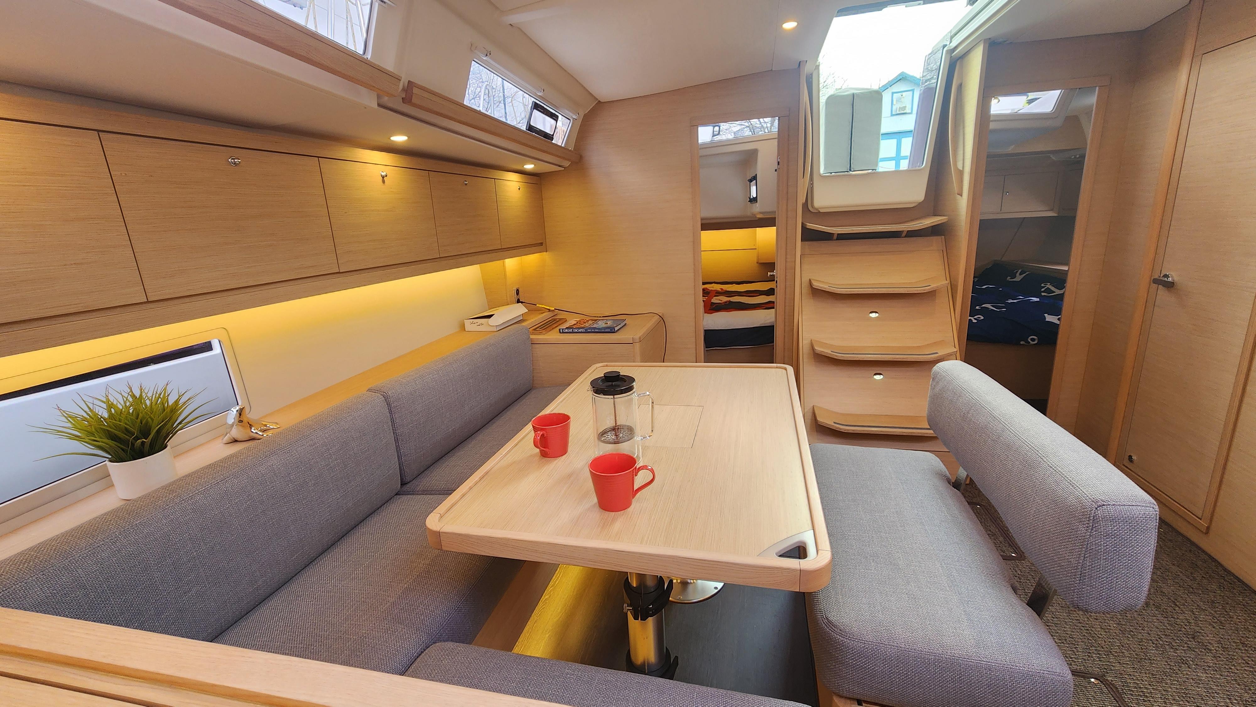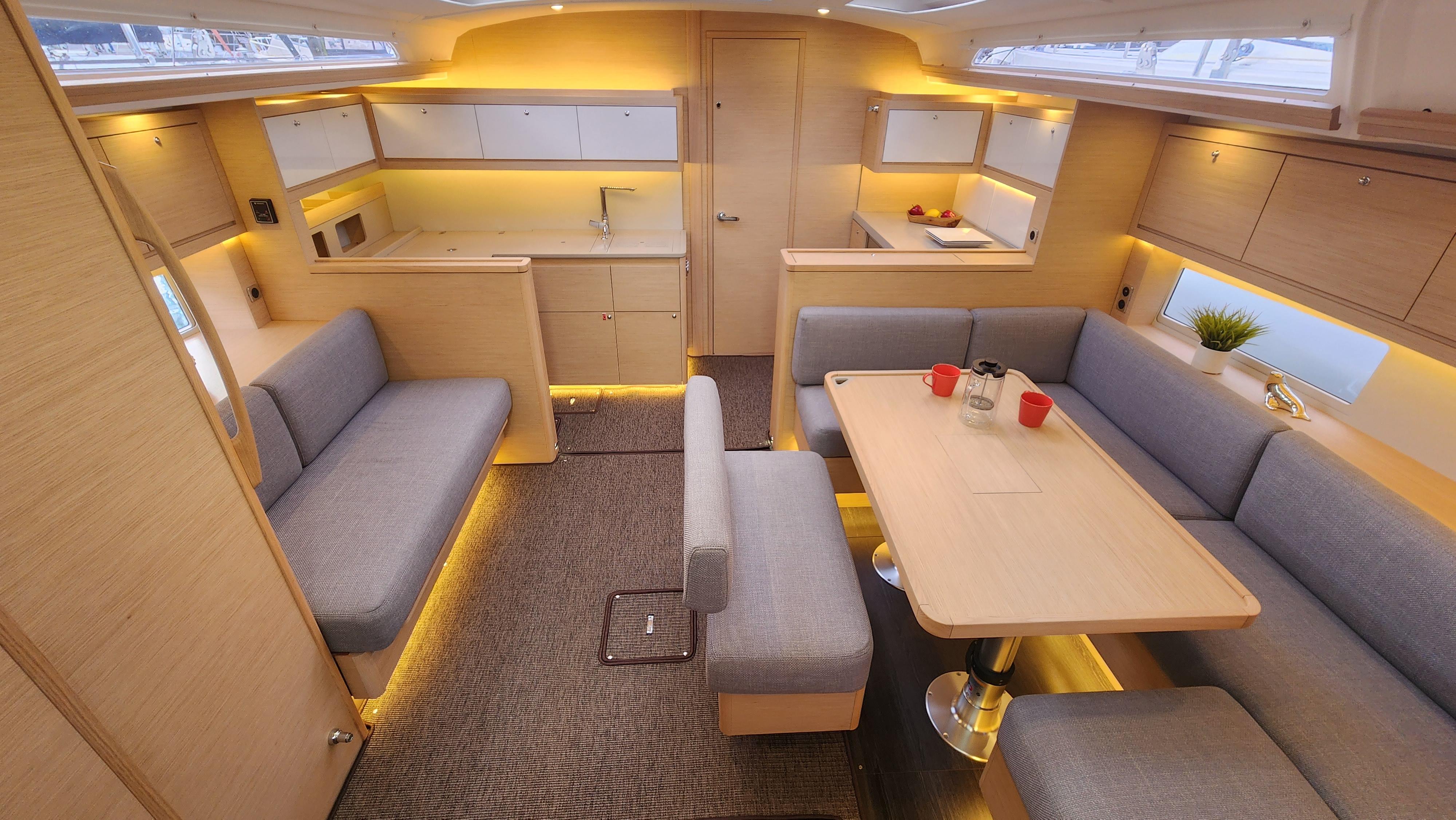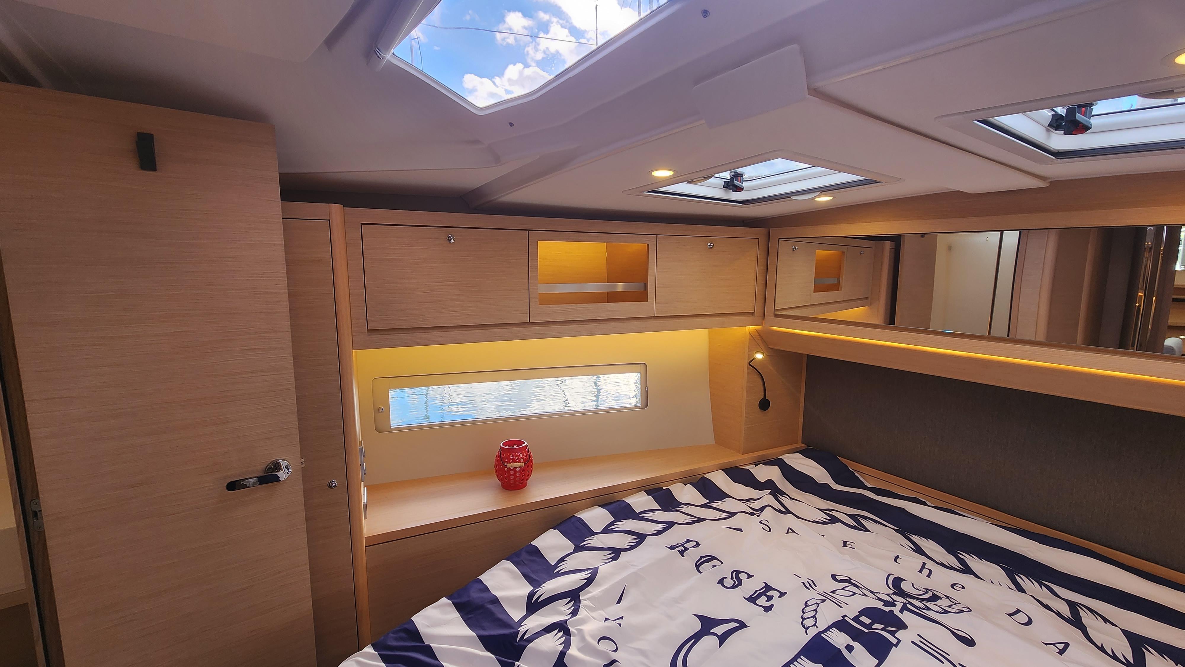 Come see why the Dufour 470 is an award winning boat. From her spacious layout to she great looks she is also a great sailing boat that is a breeze to sail. This one is very well equipped. With her galley forward under the overhead windows you get an open and bright interior. With the Felci design you get great sailing