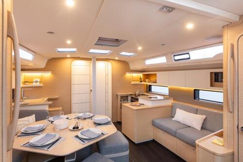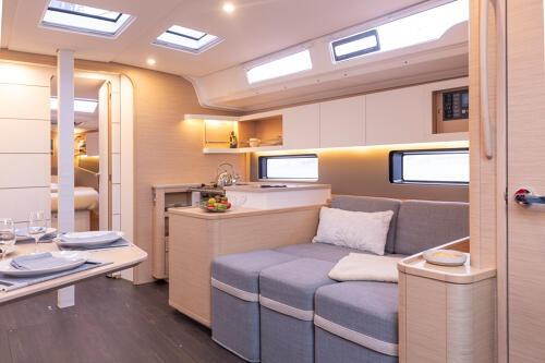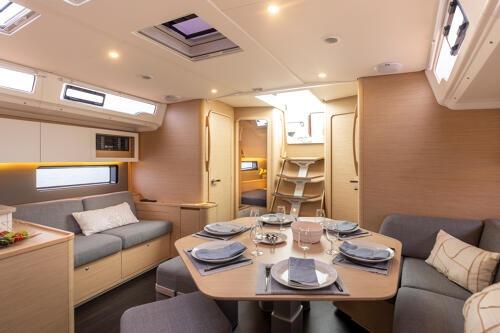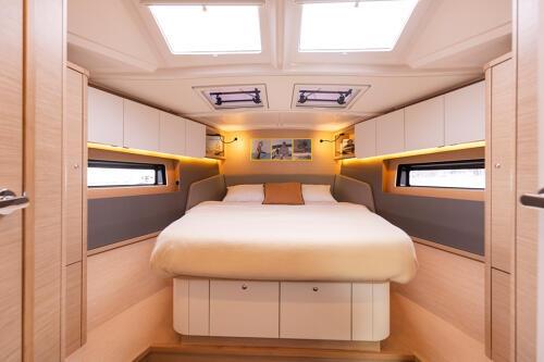 Whether for experienced sailors or adventure-seeking lovers of the sea, the Dufour 44 sailing yacht is designed to deliver an unforgettable experience. Created with the steadfast collaboration of Felci Yachts Design and the Dufour teams, the hull’s sleek design and manoeuvrability at the helm will allow you to tame the seas while enjoying precise and responsive handling. The pleasure felt at the helm will charm new owners and cruising sailors alike. The agility of the Dufour 44 sailboat in no way leads to a sacrifice in comfort. Her spacious, luxuriously appointed interior, signed by Luca Ardizio, offers everything you need for enjoying some unforgettable relaxing times at sea. From the elegant cabins to the bright, open-plan living spaces, every detail has been designed to provide you with exceptional comfort.