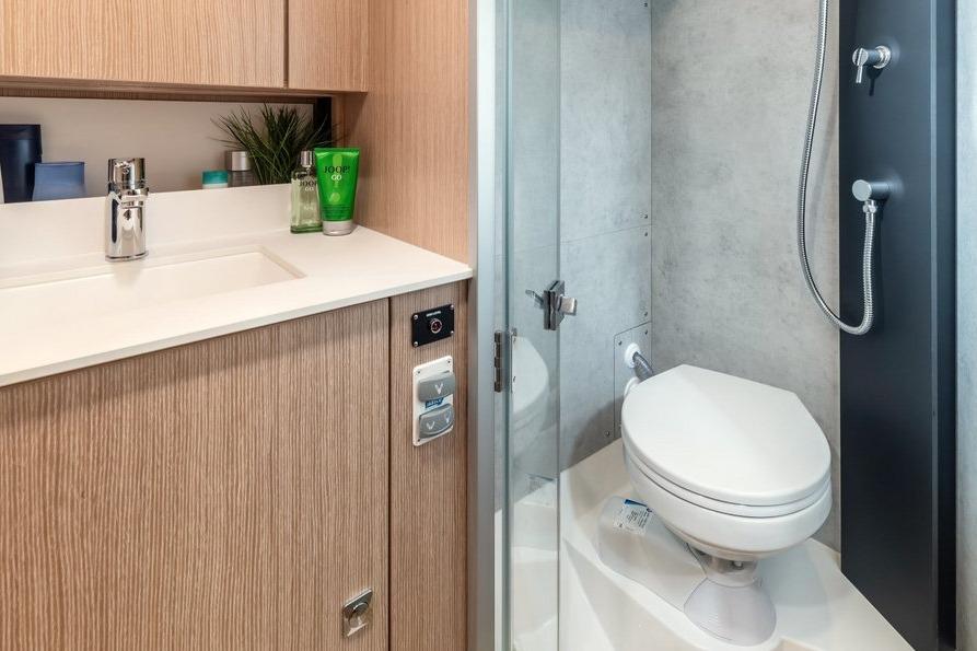 The foredeck and side decks provide generous room for a sailing yacht of this size. The innovative hull design also opens up new dimensions below deck. Select from individual cabin layouts ranging from the luxurious 2-cabin version with a spacious bathroomto the comfortable 3-cabin version with two bathrooms.