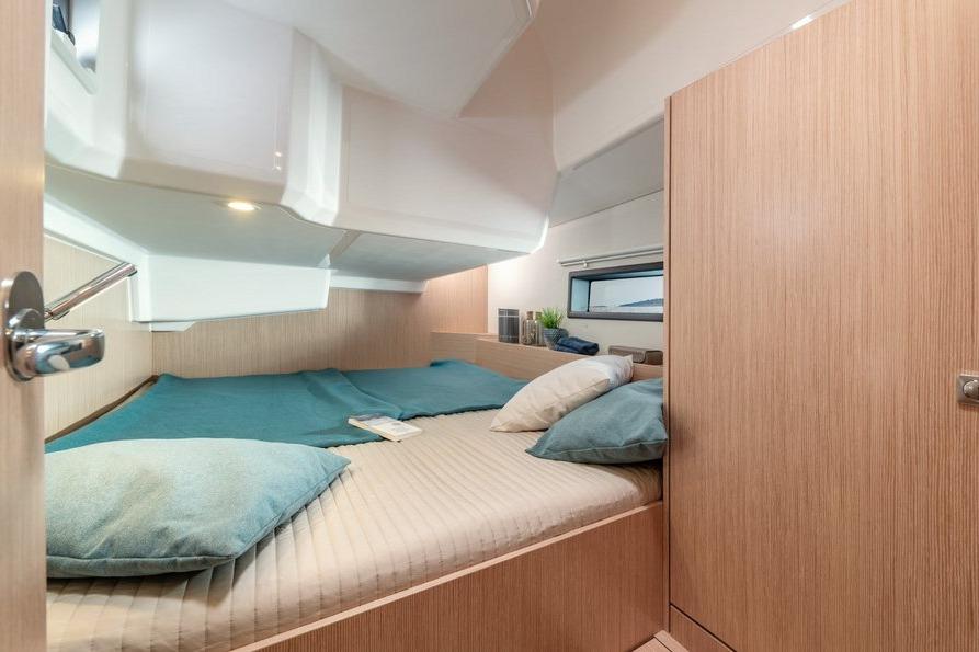 Thanks to the V-shaped bow and the large side windows, the bow cabin doesn’t simply appear spacious; when it comes to headroom and the space on offer, it’s close to unbeatable.