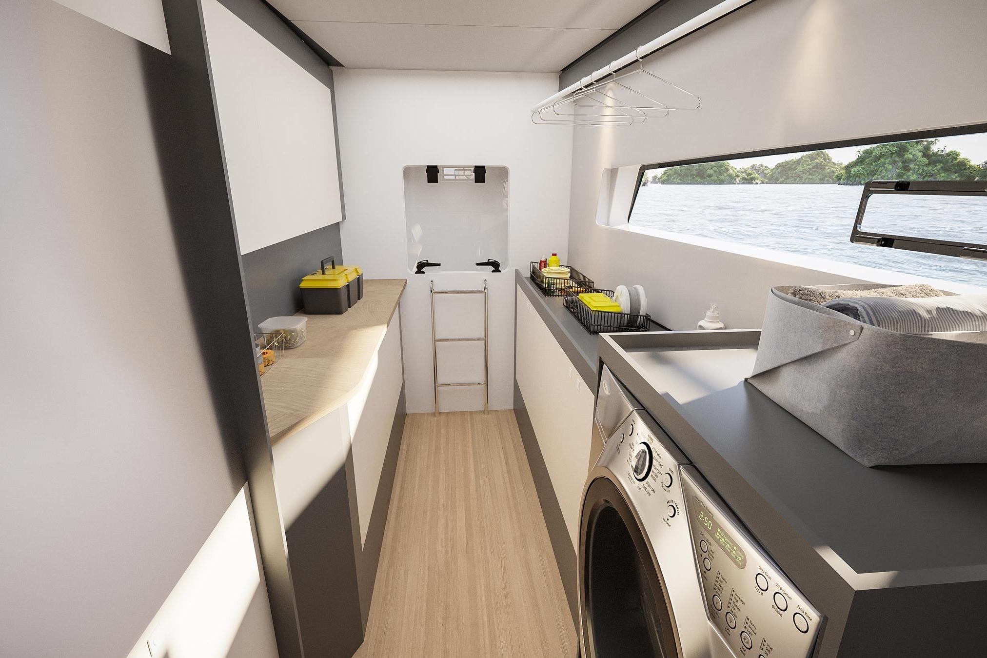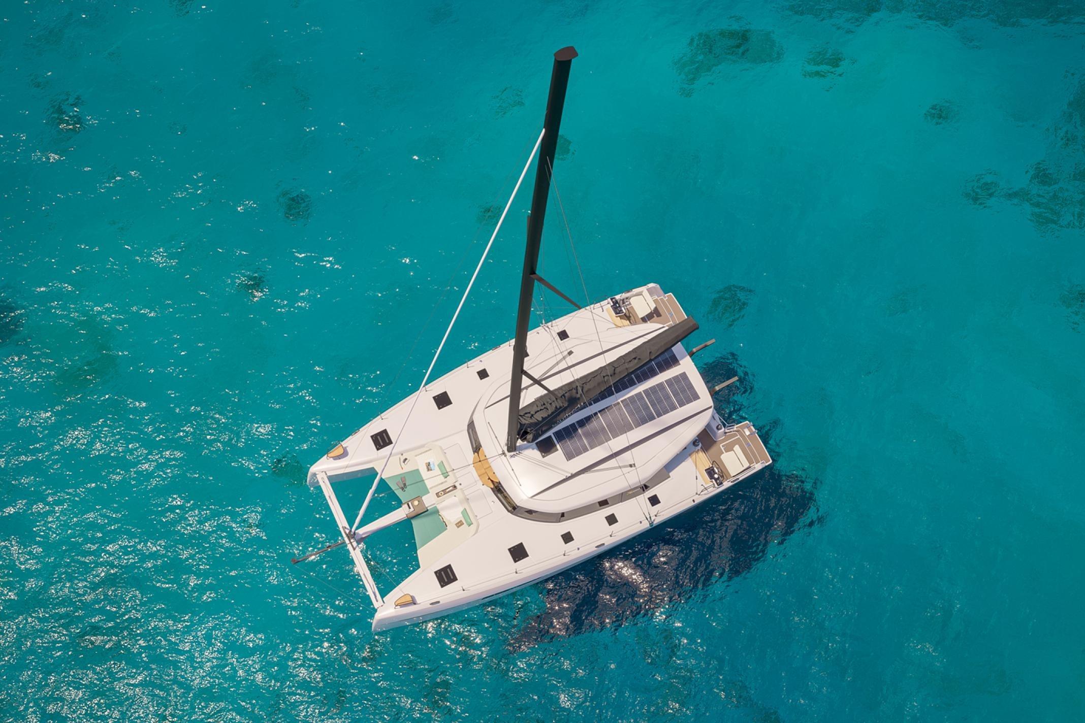 Designed by MLYDG, the 48 Open benefits from the latest advances in hydrodynamic performance to ensure the best balance between performance under sail and comfort in the hulls. Nothing has been left to chance in the design of this top-of-the-range boat to combine comfort, feeling at the helm, and ease of maneuvering whatever the conditions. The height of the bridgedeck, the slenderness of the hulls, the sail area, and the control of the displacement, all these elements contribute to a well-balanced boat.